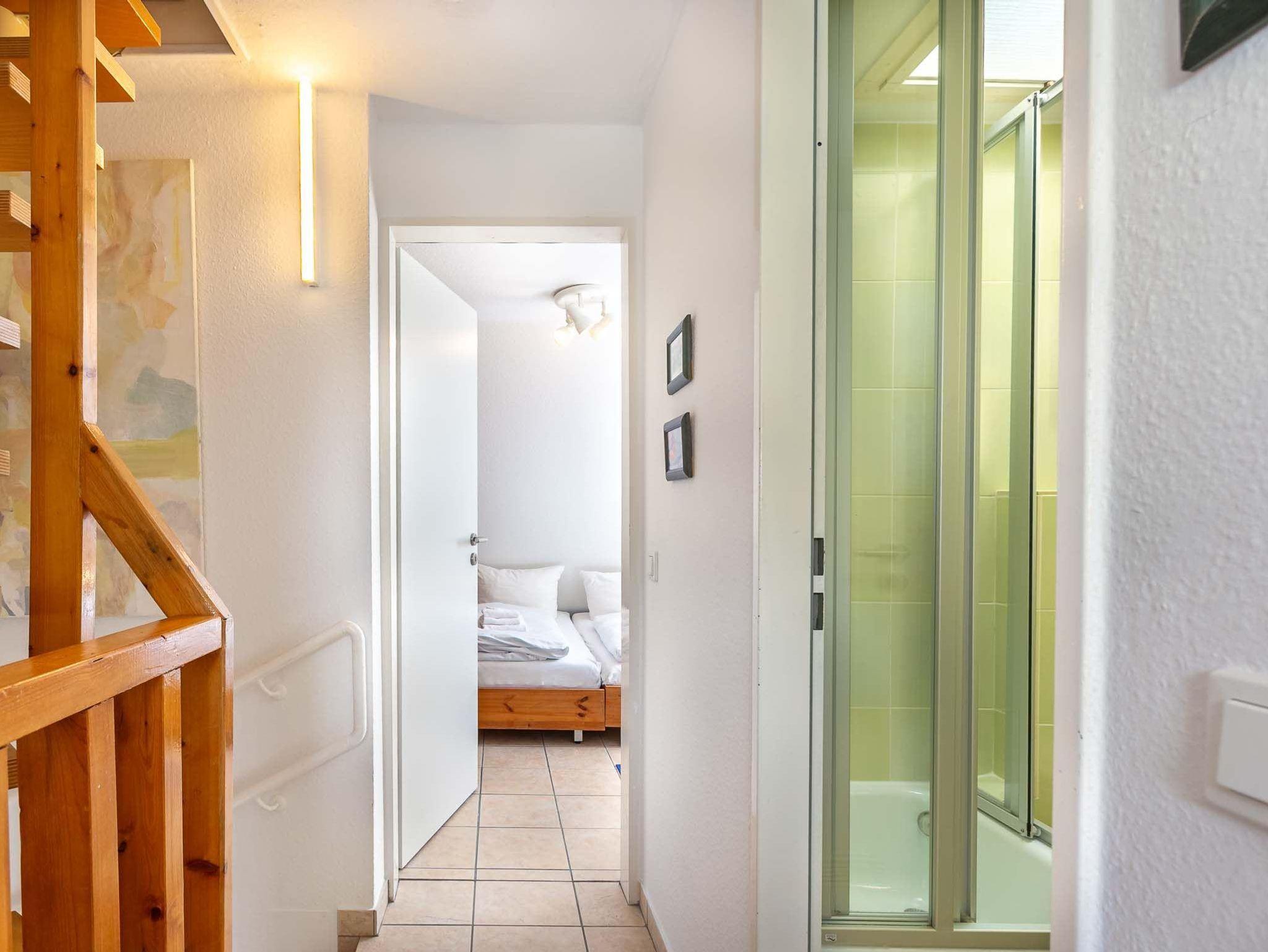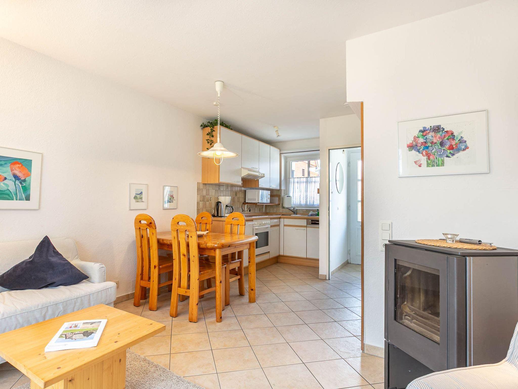 Das Reiheneckhaus MAGISTERHOF 5 bietet mit seinen 45 qm auf 2 Ebenen und Terrasse bis zu 3 Personen Platz für einen erholsamen Urlaub inmitten von St.Peter-Dorf.Kostenfreier Internetzugang (WLAN, ohne Gewähr), Fußbodenheizung, Nichtraucherobjekt, EG: Eingangsbereich, Wohn-Esszimmer mit Terrassenzugang, Kaminofen, Sitzbereich mit Sofa, Sessel und Couchtisch, TV-Empfang über Satellit, Radio / Stereoanlage, Esstisch mit 4 Stühlen im Übergang zur offenen Küche, Kinderhochstuhl zubuchbar, umfangreiche Küchenausstattung u.a. mit 4-Felder-Herd (Ceran), Backofen, Mikrowelle, Geschirrspülmaschine, Abstellkammer, OG: Schlafzimmer mit Doppelbett (180 x 190cm), Kleiderschrank, Verdunkelungsmöglichkeit, Schlafzimmer 2 (Kinderzimmer) mit Einzelbett (90 x 190cm), Babyreisebett zubuchbar, Badezimmer mit Dusche, Waschbecken, Spiegel und WC.