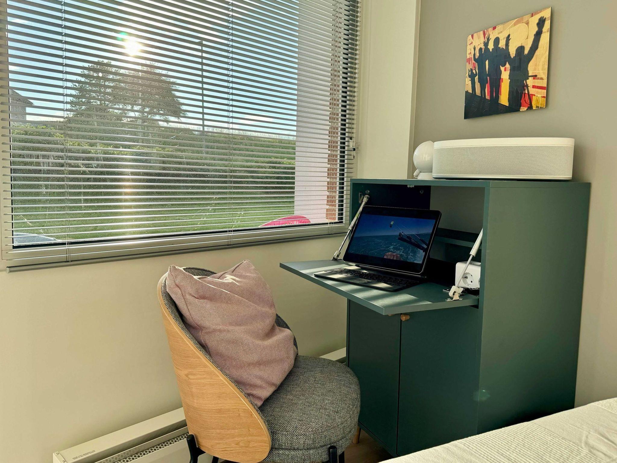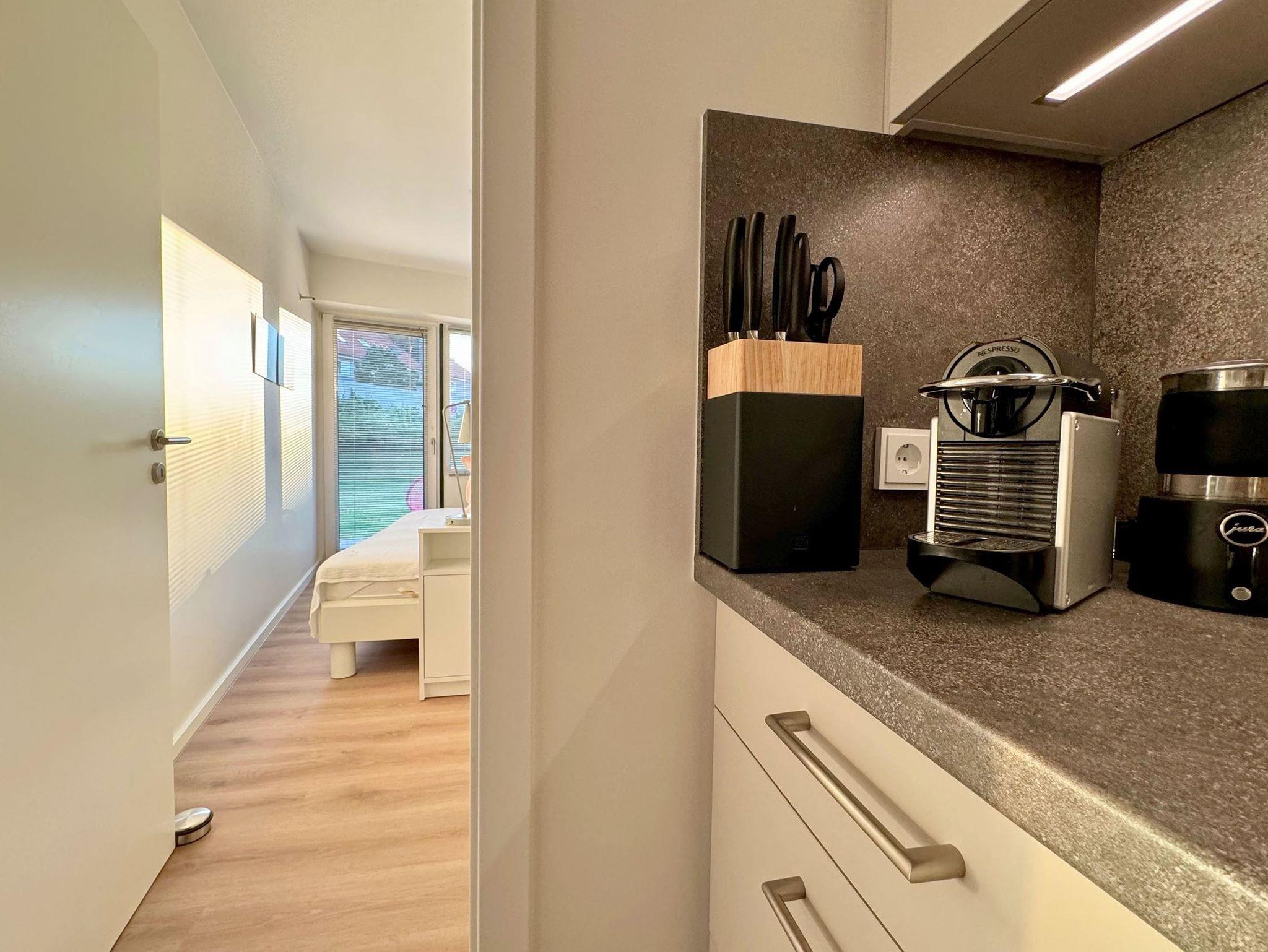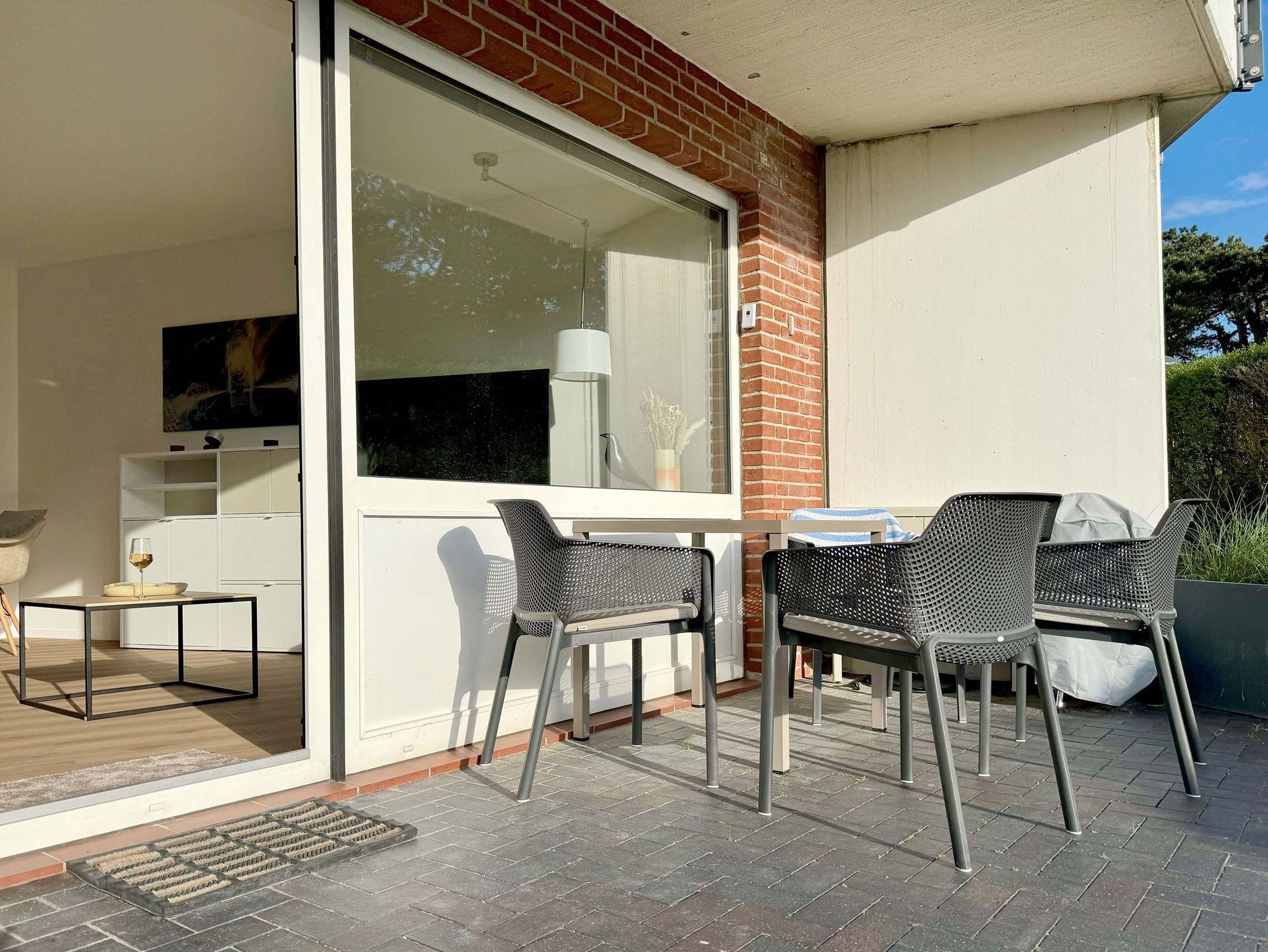 Am Deich 1 ? in Strandnähe am Dünenwaldrand gelegen ? erwartet Sie eine im Jahr 2024 komplett renovierte und im skandinavischen Design liebevoll eingerichtete 43 qm große 2-Zimmer Ferienwohnung. Genießen Sie Nordsee pur im Ortsteil Ording von St. Peter-Ording. Die Ausstattung der Wohnung lässt für entspannte Tage am Meer keine Wünsche offen: Eine hochwertige Küchenzeile mit umfangreicher Ausstattung (u.a. Geschirrspüler, Nespresso- und Filterkaffeemaschine), ein modernes Duschbad, ein gemütliches Schlafzimmer mit kleinem Arbeitsplatz und ein Wohnzimmer, in dem selbst Regentage zur Freude werden (55 Zoll Smart-TV, Soundbar, analoge und digitale Musiktechnik mit USB-C, AirPlay und Bluetooth Streaming). Auf der großen, überdachten Terrasse befinden sich Gartenmöbel, ein Grill sowie zwei Acapulco Sessel, in denen Sie den Tag beim Sonnenuntergang am Deich ausklingen lassen können.