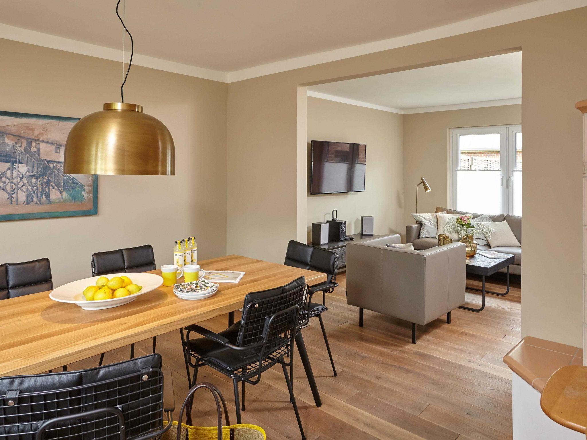 Sehr geschmackvoll eingerichtet. Mit 3 Schlafzimmern, 2 Duschbädern und einer gut ausgestatteten Küche. Das Ferienhaus wurde vom Deutschen Tourismus Verband mit 5* Sternen ausgezeichnet. Es liegt am Dünenrand 300m vom Deich am Südstarnd entfernt.