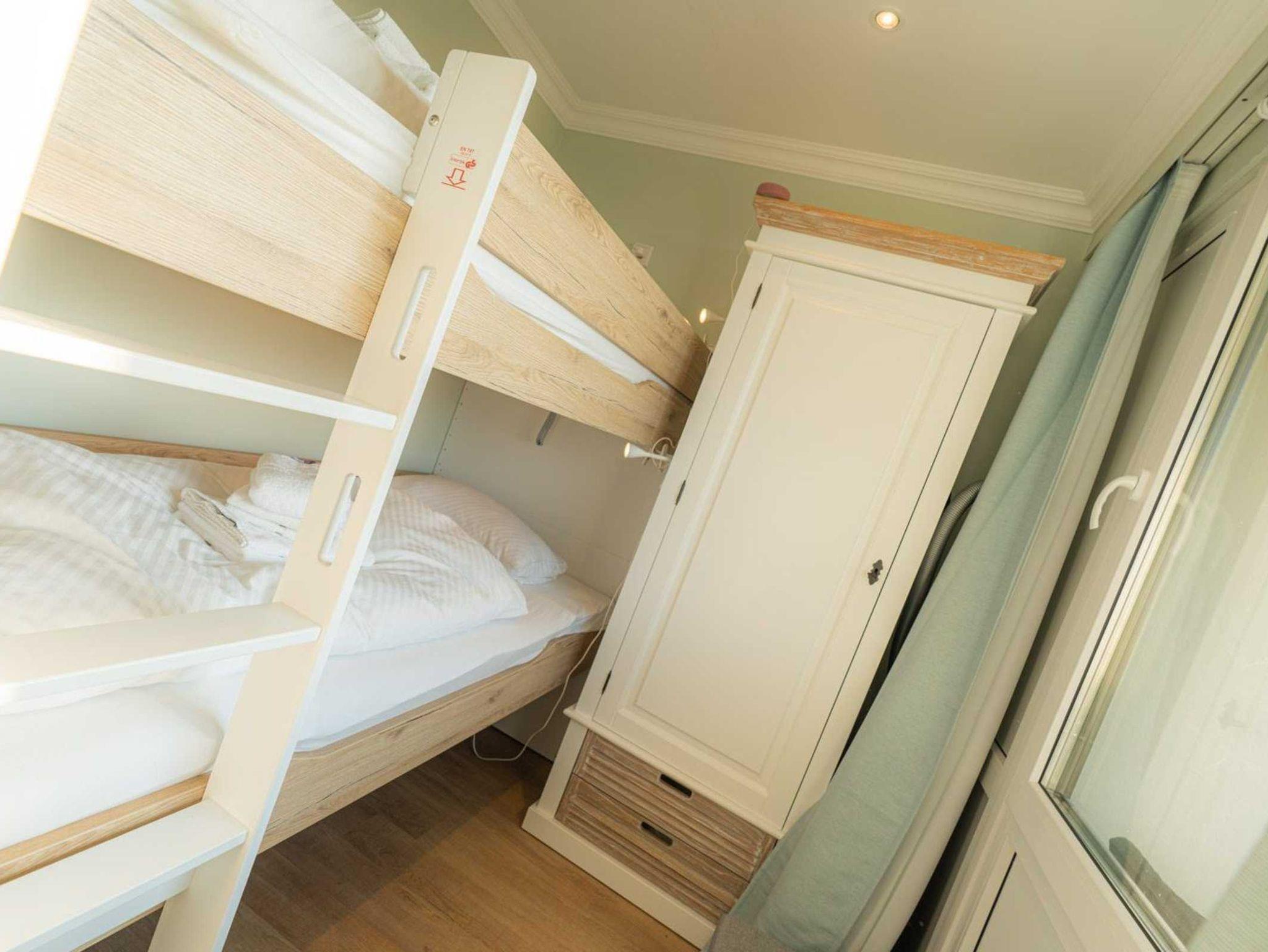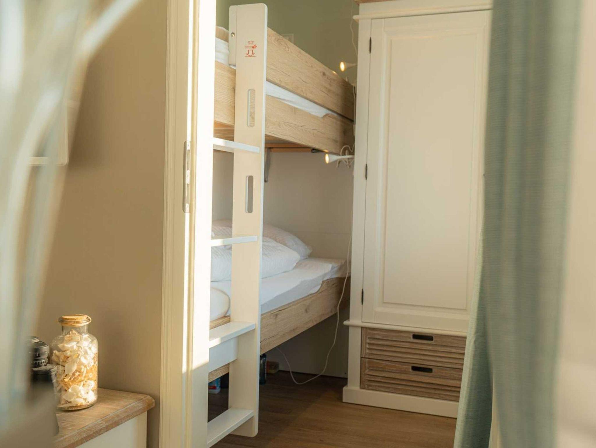 Kinder-Schlafzimmer mit 2 Etagen-Einzelbetten (je 90x200cm), Kleiderschrank, Alexa Echo und herrlichem Ausblick.