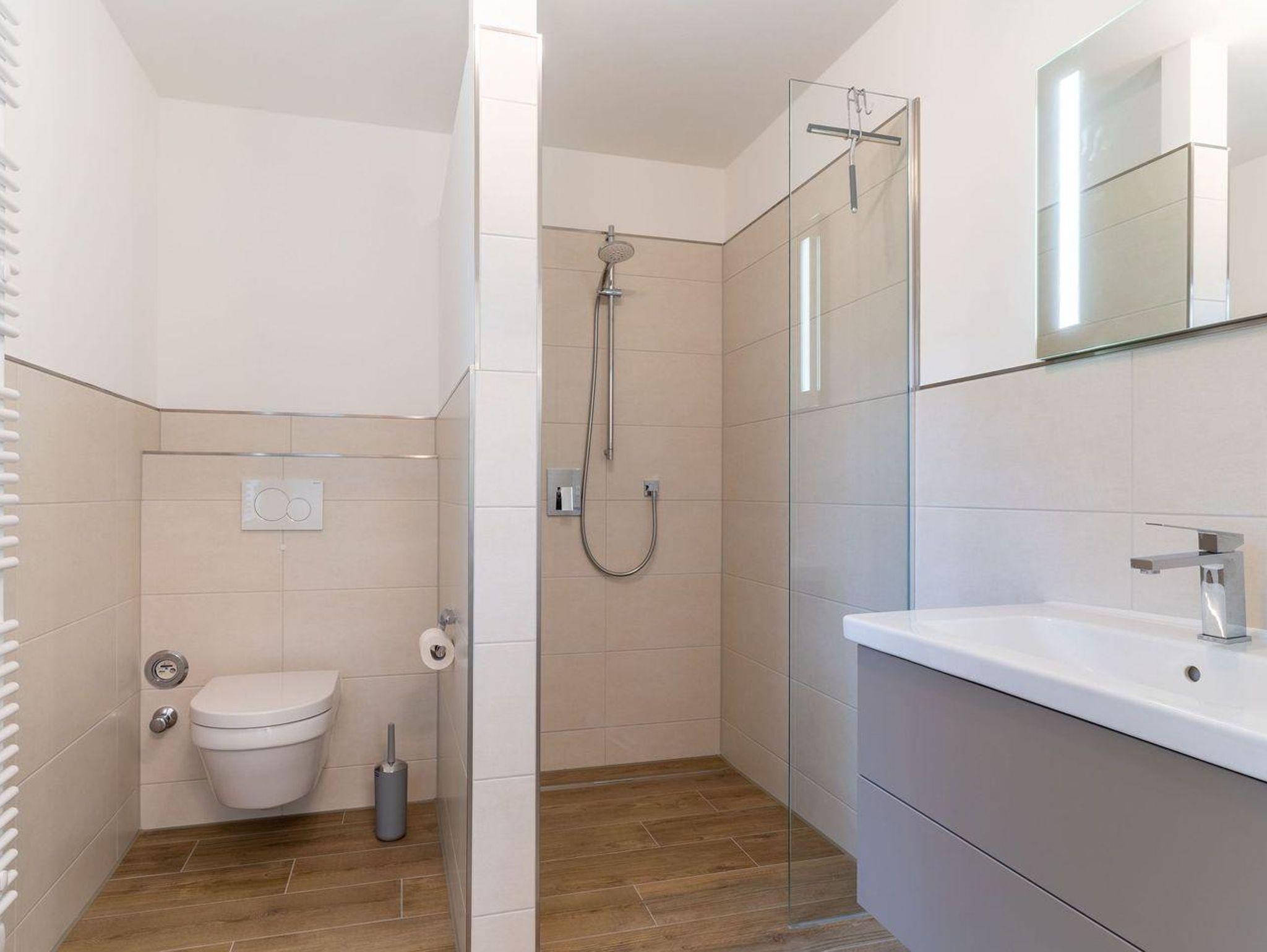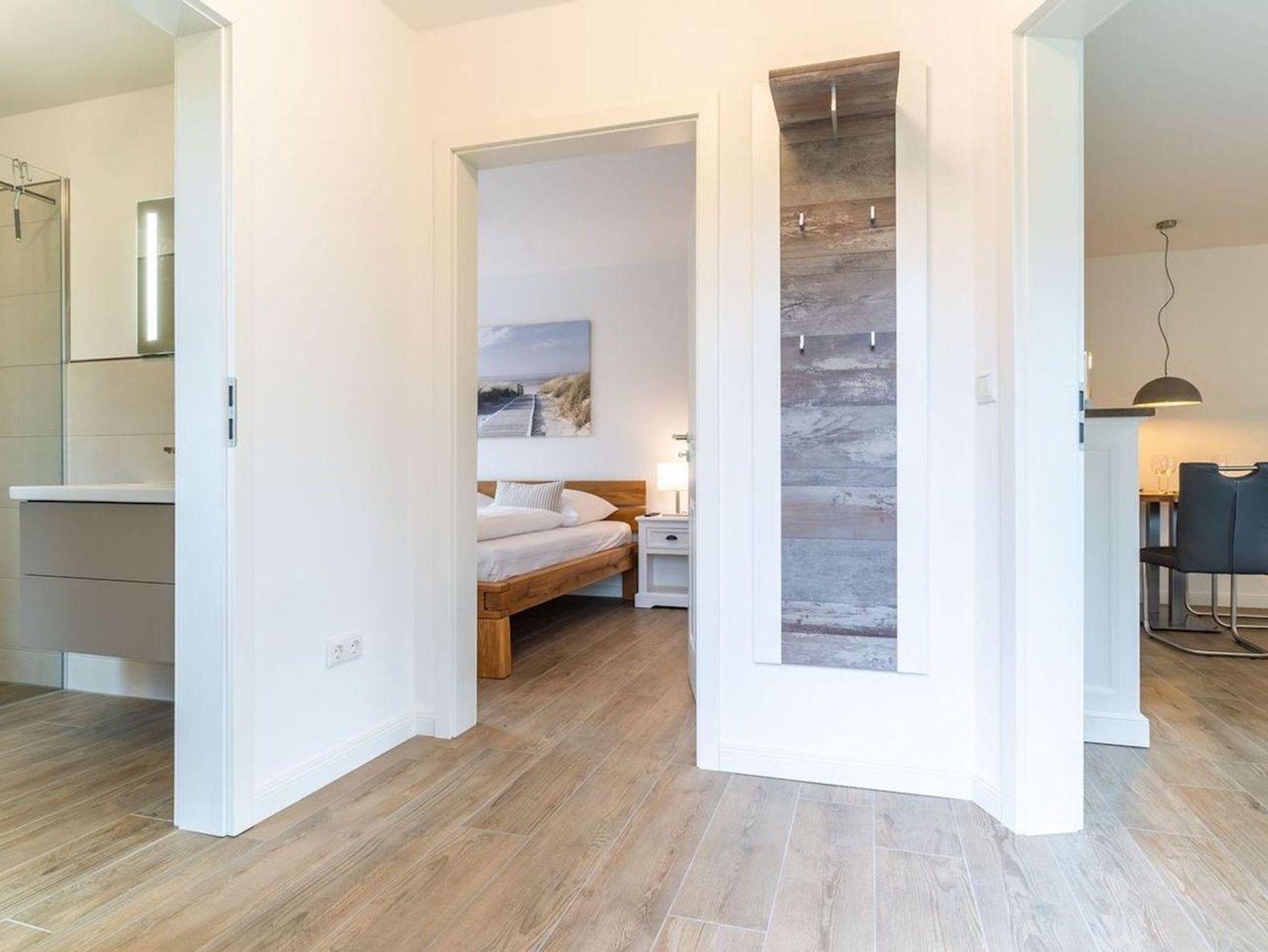 Vom Flur gelangen Sie ins Doppelschlafzimmer mit TV. Zusätzlich gibt es im Wohnzimmer ein gemütliches Schlafsofa für eine Personen. Das Duschbad bietet genügend Platz für Ihre Utensilien.