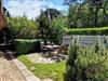 • Terrasse mit Gartenmöbeln und Strandkorb