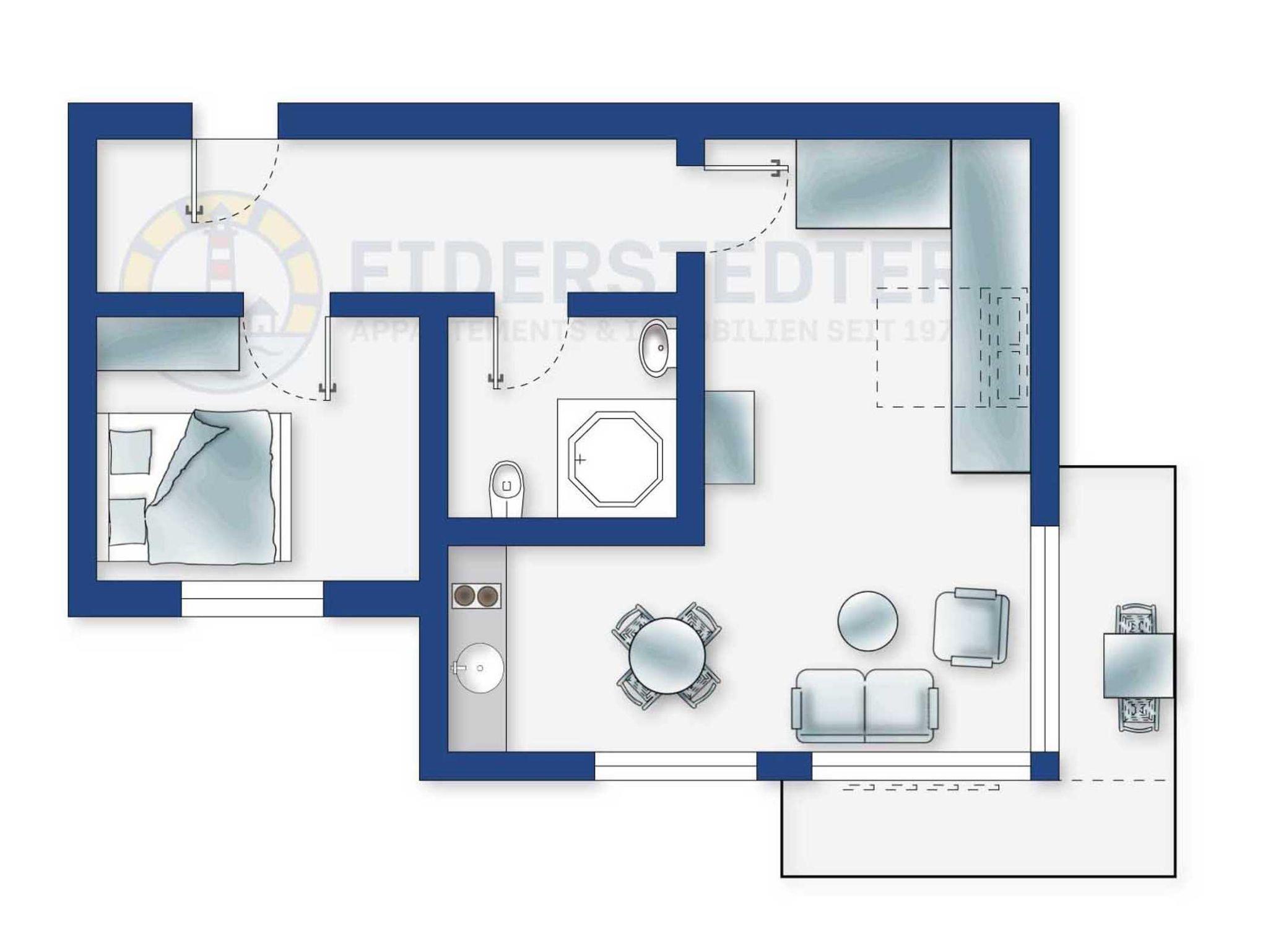Sonnige 2-Zimmer-Ferienwohnung mit ca. 45 m² auf 1 Ebene (2. OG) in zentraler und strandnaher Lage im Herzen von Sankt Peter (Bad). Genießen Sie den herrlichen Ausblick vom Wohnzimmer und Balkon bis ans Meer. Gleich um die Ecke vom Haus befinden sich alle Geschäfte und Restaurants des pulsierenden Kurzentrums. Auch zur Dünentherme sind es nur 5 Gehminuten.