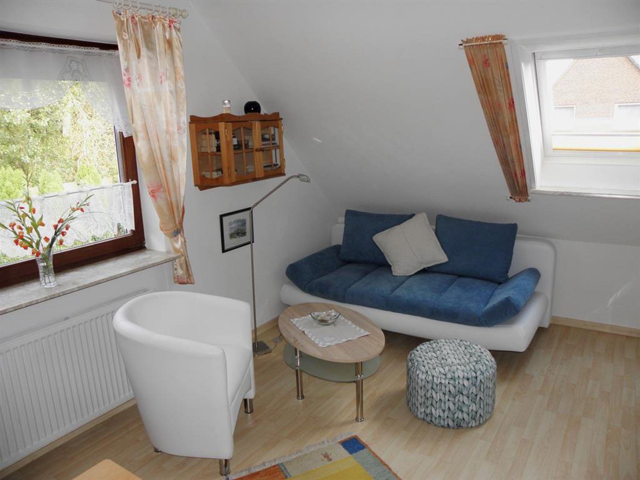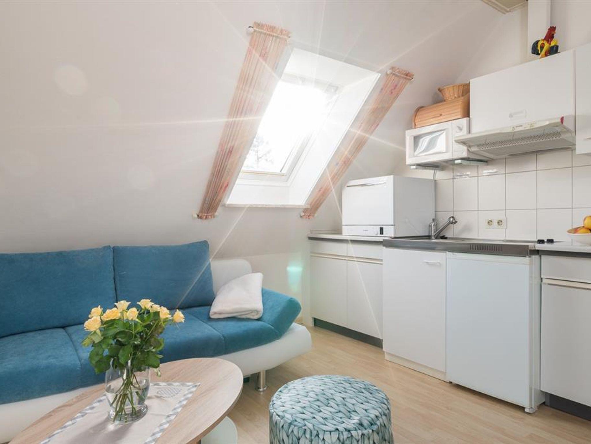 Die Wohnung für 2 Personen besteht aus einem Wohnzimmer mit Schlafcouch,