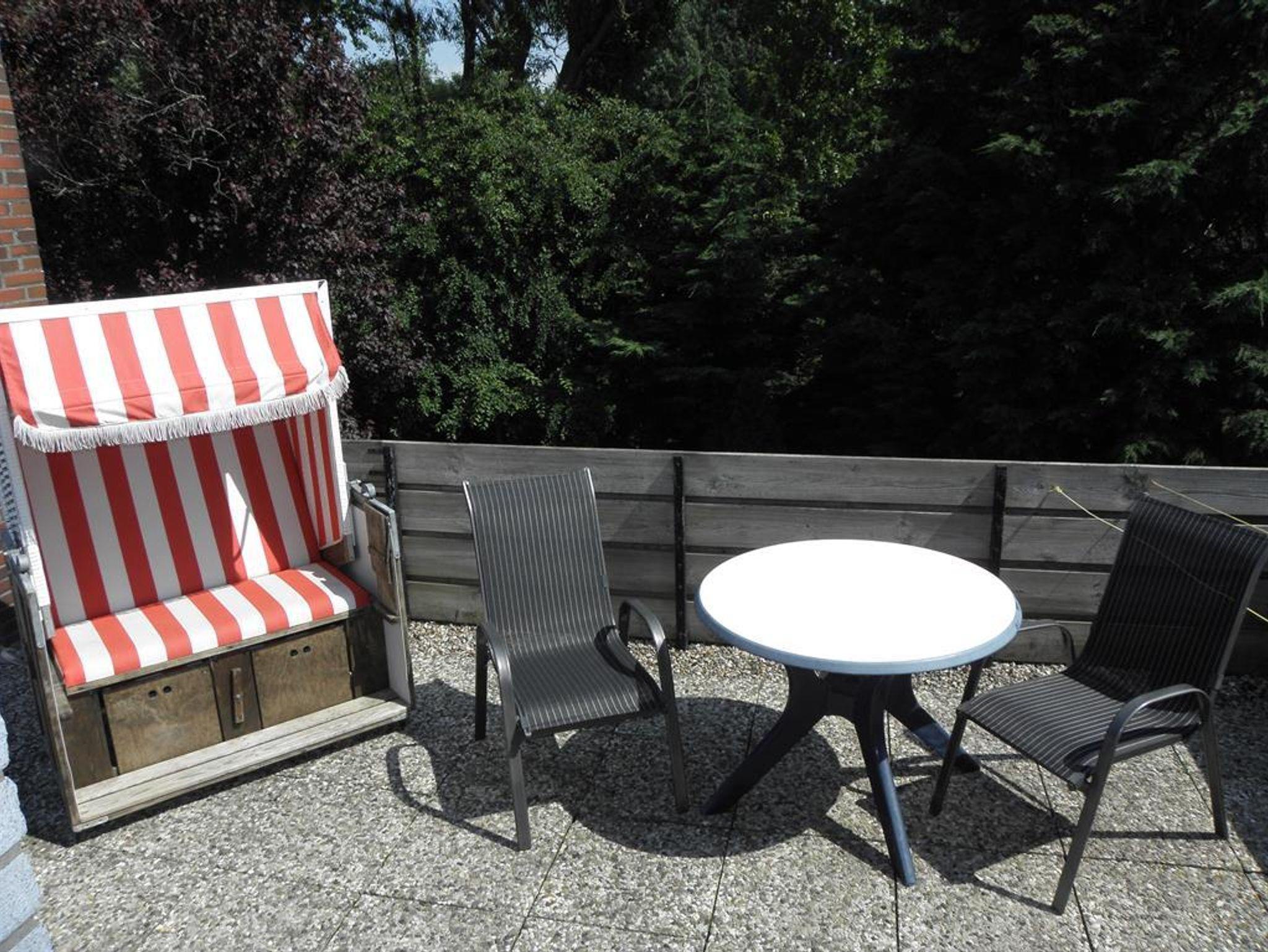 Zu dieser Wohnung gehört schließlich noch eine grosse Dachterasse mit Gartenmöbeln und Strandkorb,