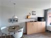 Sie teilt sich wie folgt auf: Eingangsdiele mit Garderobe, Schlafzimmer mit Doppelbett, Duschbad mit WC. Der großzügige Wohnraum mit direktem Zugang zur Loggia überzeugt mit seiner gemütlichen Sitzecke, der modernen, weißen Küche, der Essecke und als weitere Schlafmöglichkeit 1 Schrankbett,