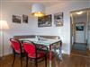 Die Wohnung hat einen Schlafraum mit einem Doppelbett, einem weiteren Schlafraum mit einem Einzelbett und einem großzügigen Wohnraum mit einem Schlafsofa und einer Sitzecke.