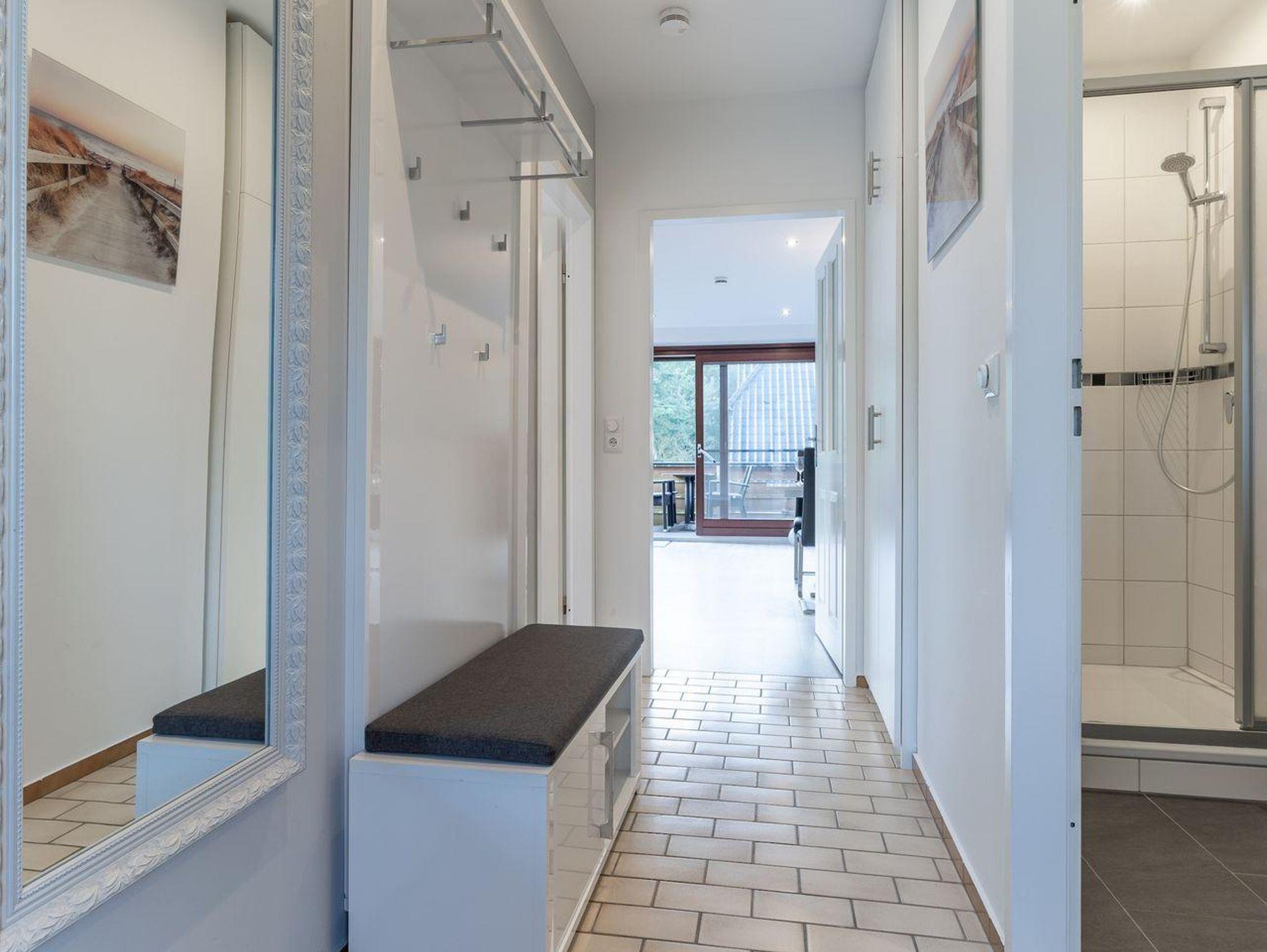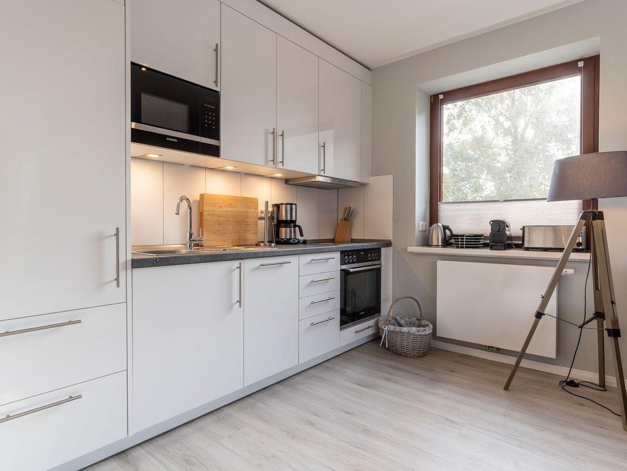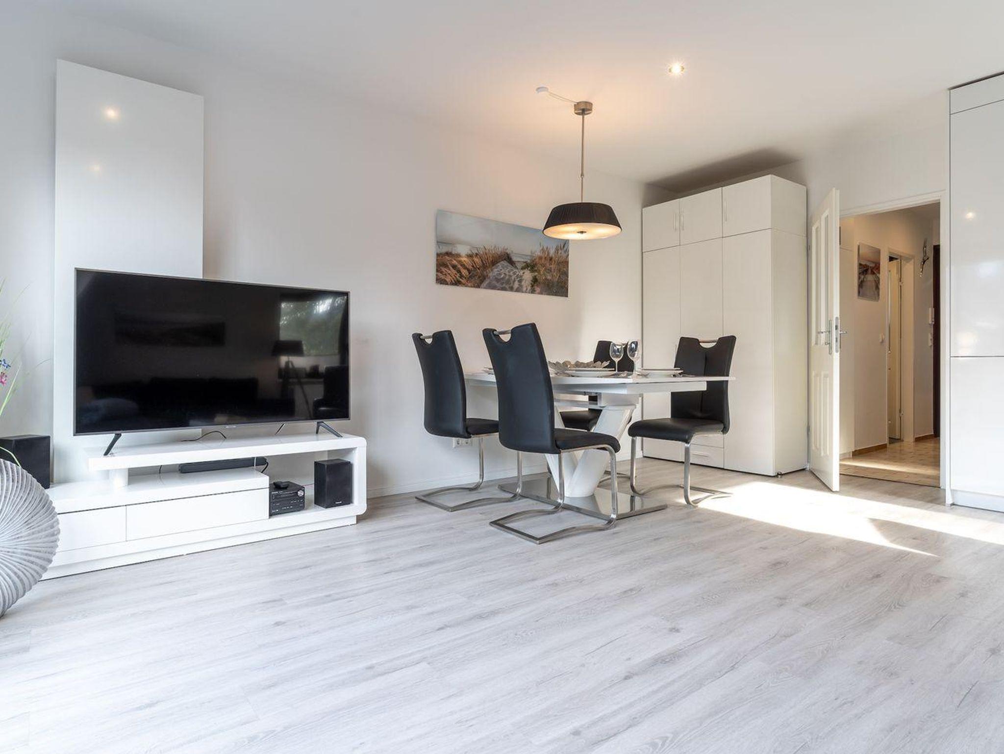 Die 55m² große Ferienwohnung, welche im Jahr 2020 vollständig saniert wurde, liegt im Obergeschoss und bietet bis zu 4 Personen Platz für einen unvergesslichen Urlaub in St. Peter-Ording. Durch die Lage und Ausstattung ist die Ferienwohnung besonders familienfreundlich, Kinder sind hier herzlich willkommen. Die Ferienwohnung verfügt über einen nach Südwesten hin ausgerichteten, vollständig möblierten Balkon, der Abendsonne für ein herrliches Beisammensein bietet. Auch der Urlaub mit Hund ist hier möglich, ein Hund begleitet die Familie nach St. Peter Ording. Das moderne Wohnzimmer wirkt durch die große Fensterfront und den Übergang zum Balkon hell und freundlich. Zur Ausstattung dort gehören eine komfortable Couch und der große Esstisch, an dem die ganze Familie Platz findet. Die Couch lässt sich zum komfortablen Schlafplatz für 2 Personen umfunktionieren. Für die multimediale Unterhaltung sorgen ein großer Flachbild-TV, Radio mit Bluetooth und kostenfreies W-LAN. Für die Versorgung im Urlaub sorgt die vollumfassend ausgestattete, angrenzende Küche. Hier stehen unter anderem Cerankochfeld und Backofen sowie Kühlschrank, Mikrowelle und Nespresso-Maschine bereit. Orangenpresse und Milchaufschäumer gehören ebenfalls zum Inventar. Im hellen, einladenden Schlafzimmer steht ein komfortables 180x200cm Doppelbett zur Verfügung. Zur edlen Ferienwohnung gehören weiterhin Duschbad mit WC und Haartrockner. Alle Fenster der Ferienwohnung sind mit Fliegenschutzgitter und Verdunklungsplissees ausgestattet. Die große Fensterfront ist mit elektrischem Außenrollo ausgestattet, um Licht und Sichtschutz nach Belieben regulieren zu können.
