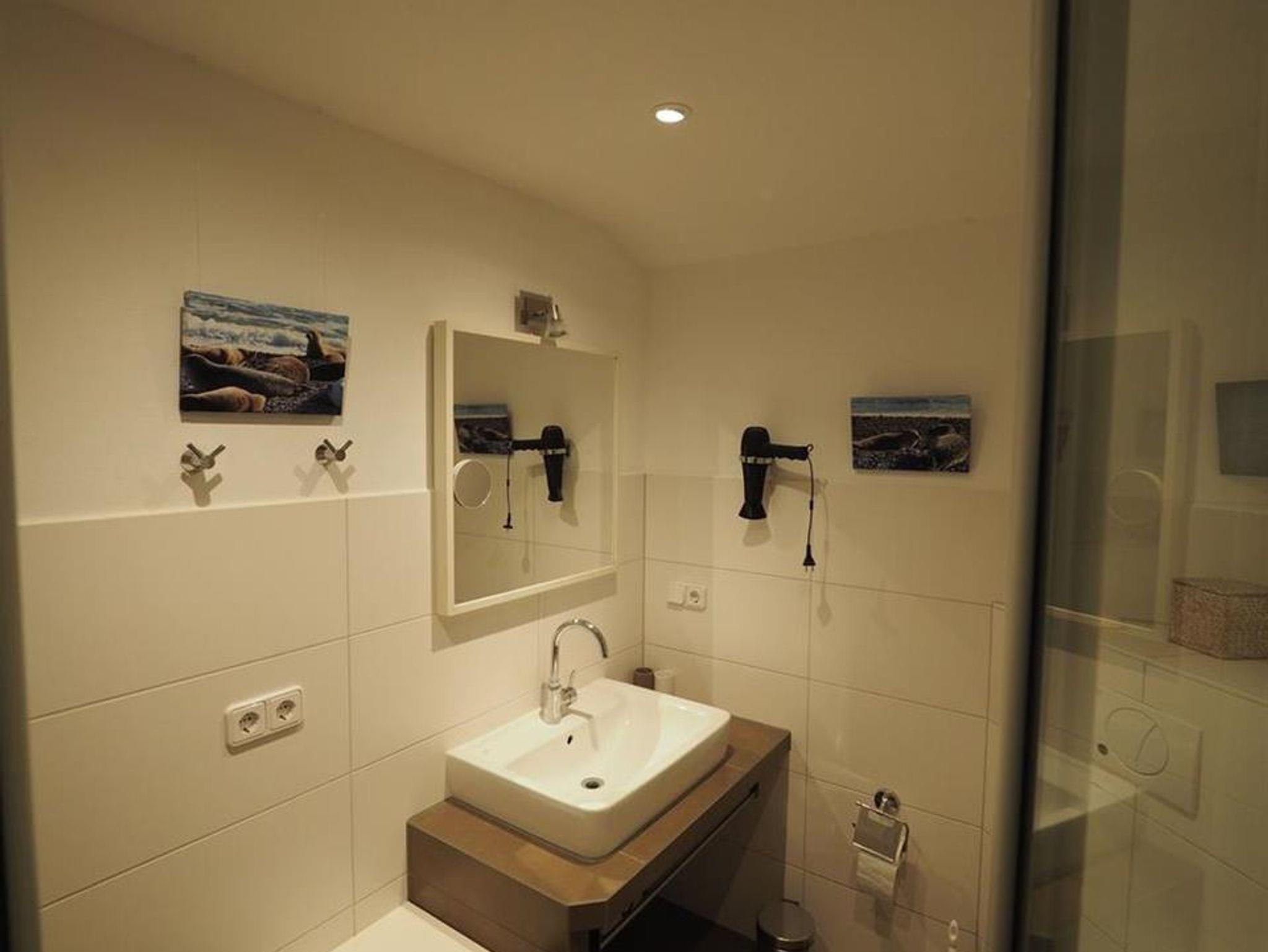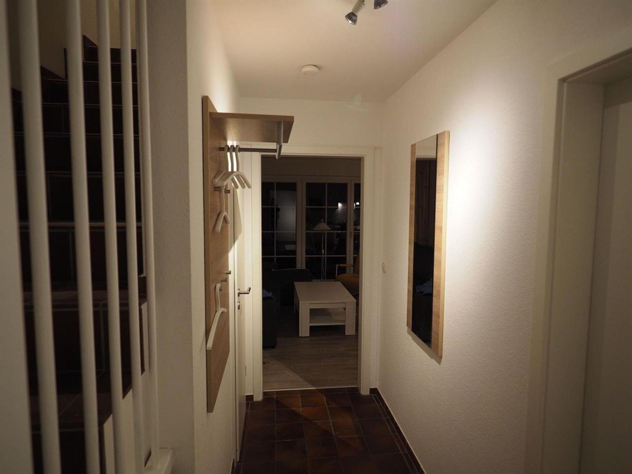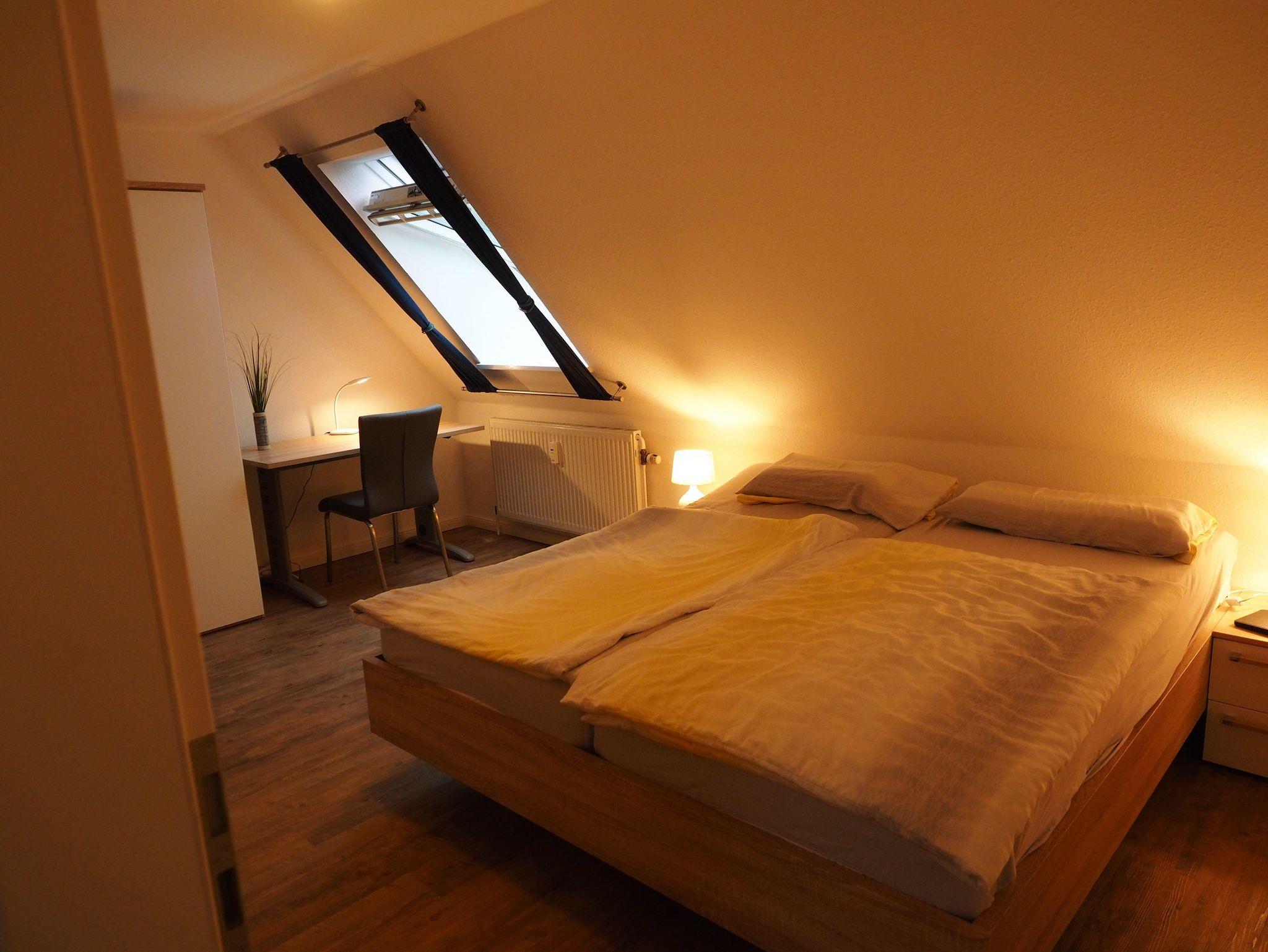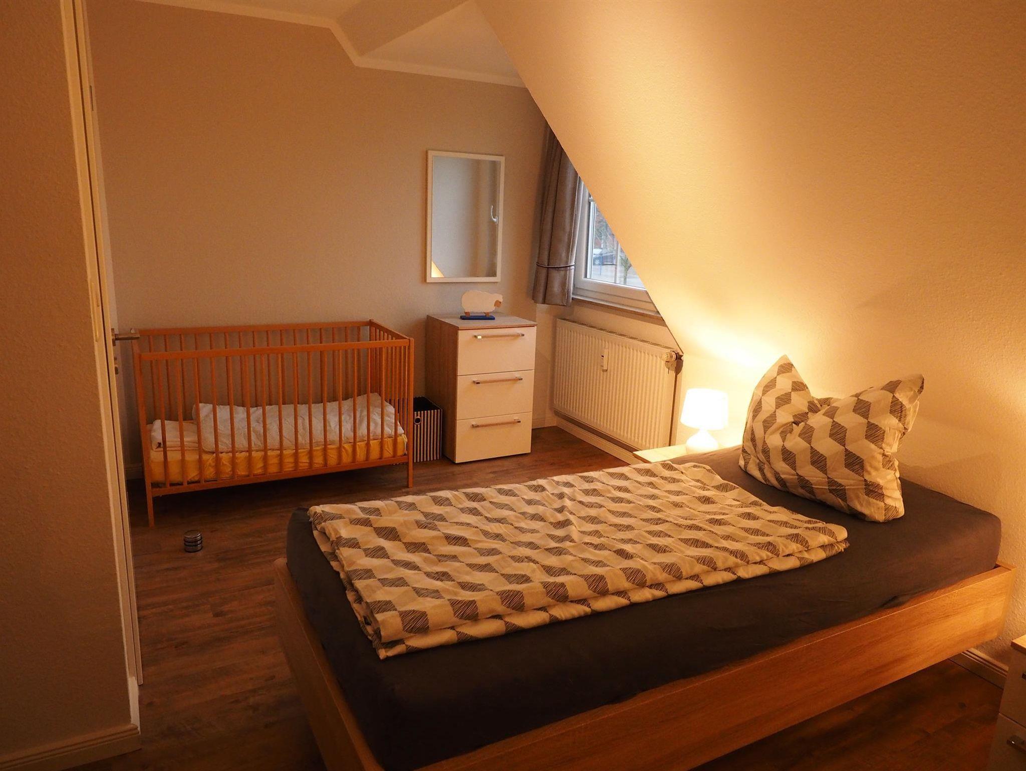 Der Wohn- und die Schlafräume im Obergeschoss sind mit allergikergerechten, hygienischen und fußwarmen CV-Boden in Holzoptik ausgelegt. Die beiden Schlafräume wurden Ende 2020 renoviert und komplett neu möbliert. In einem Schlafzimmer steht ein Doppelbett, im zweiten stehen jetzt zwei Einzelbetten und ein Baby-Gitterbettchen, so dass nach der Neumöblierung nur noch max 4 Personen + 1 Baby in der Wohnung übernachten können. Kinderbücher, Kinderhochstuhl und Spiele sind vorhanden. WLAN ist kostenfrei. Im Badezimmer gibt es Handtuchtrockner sowie Fußbodenheizung. Kleiner Einbau-Safe in einem der Schlafzimmer.