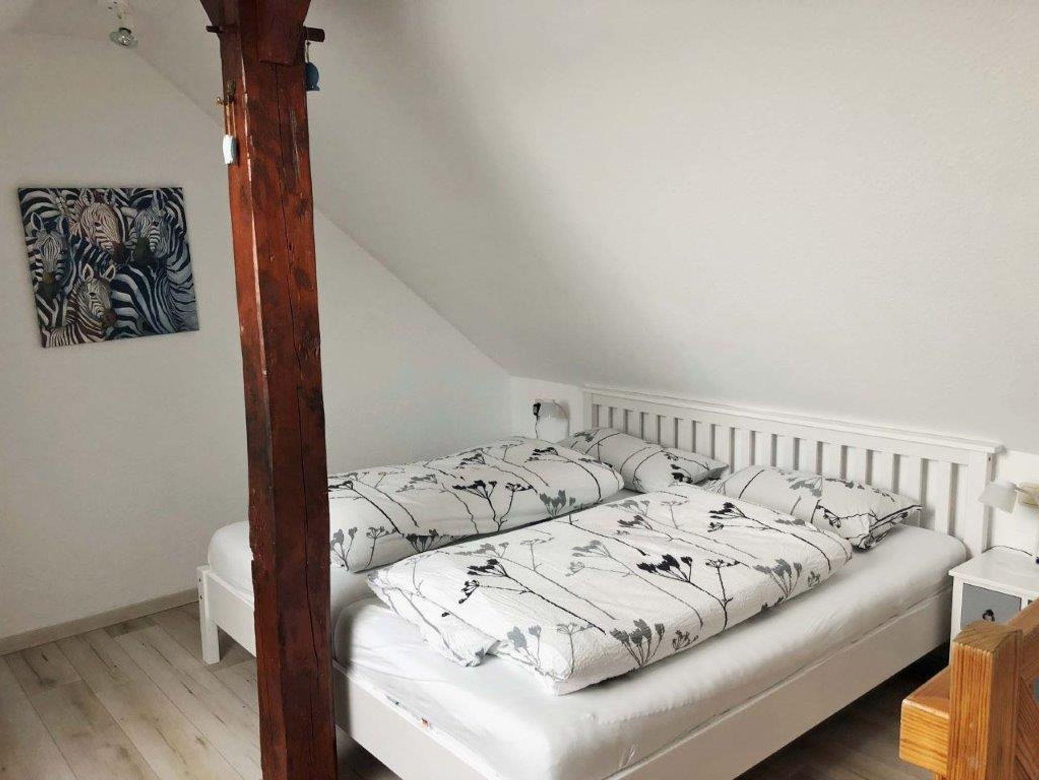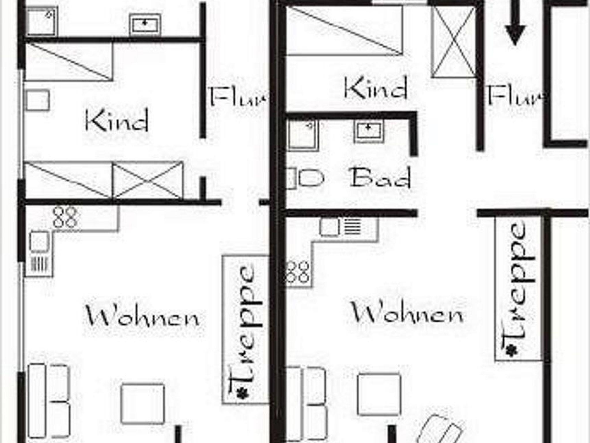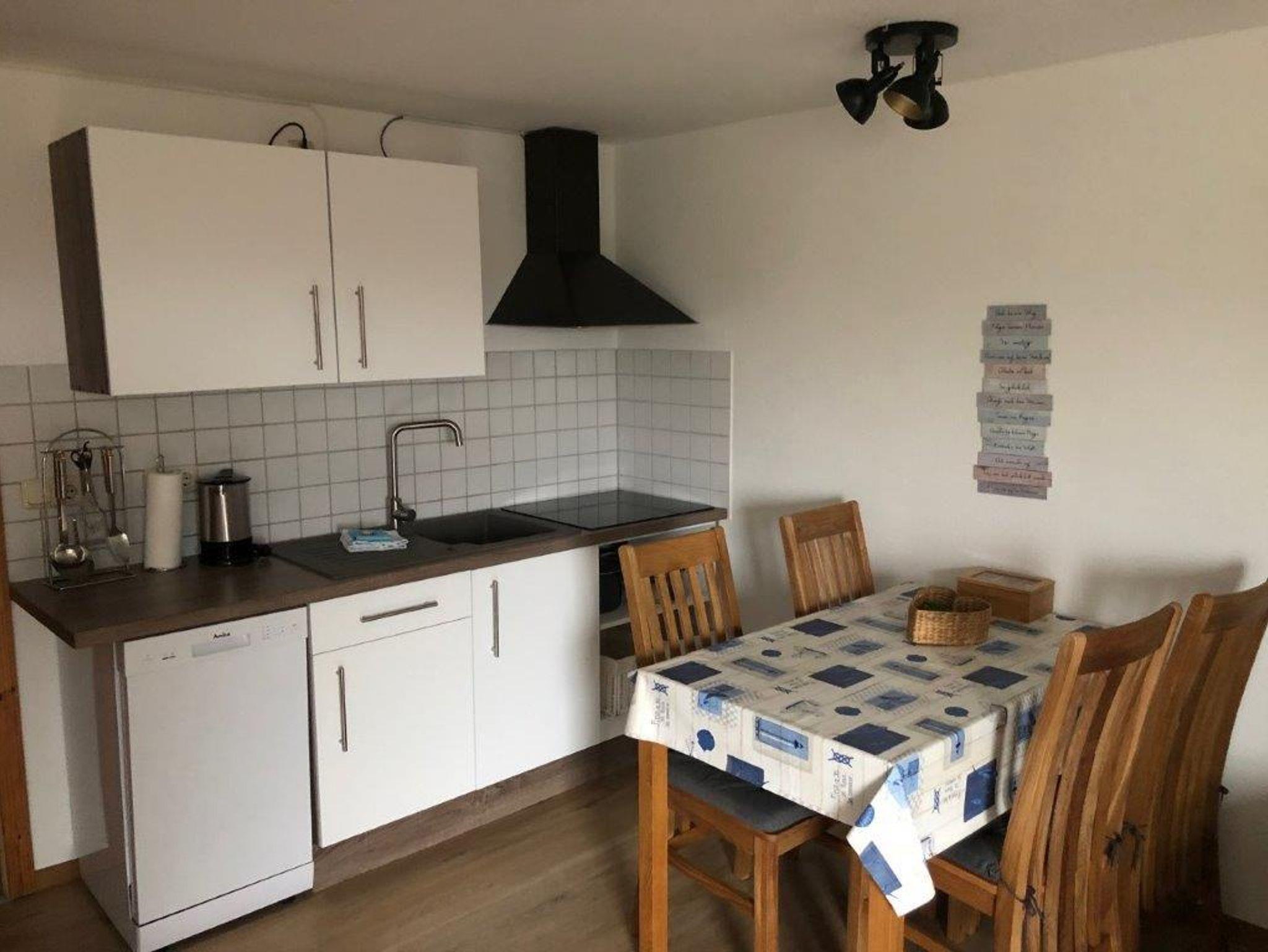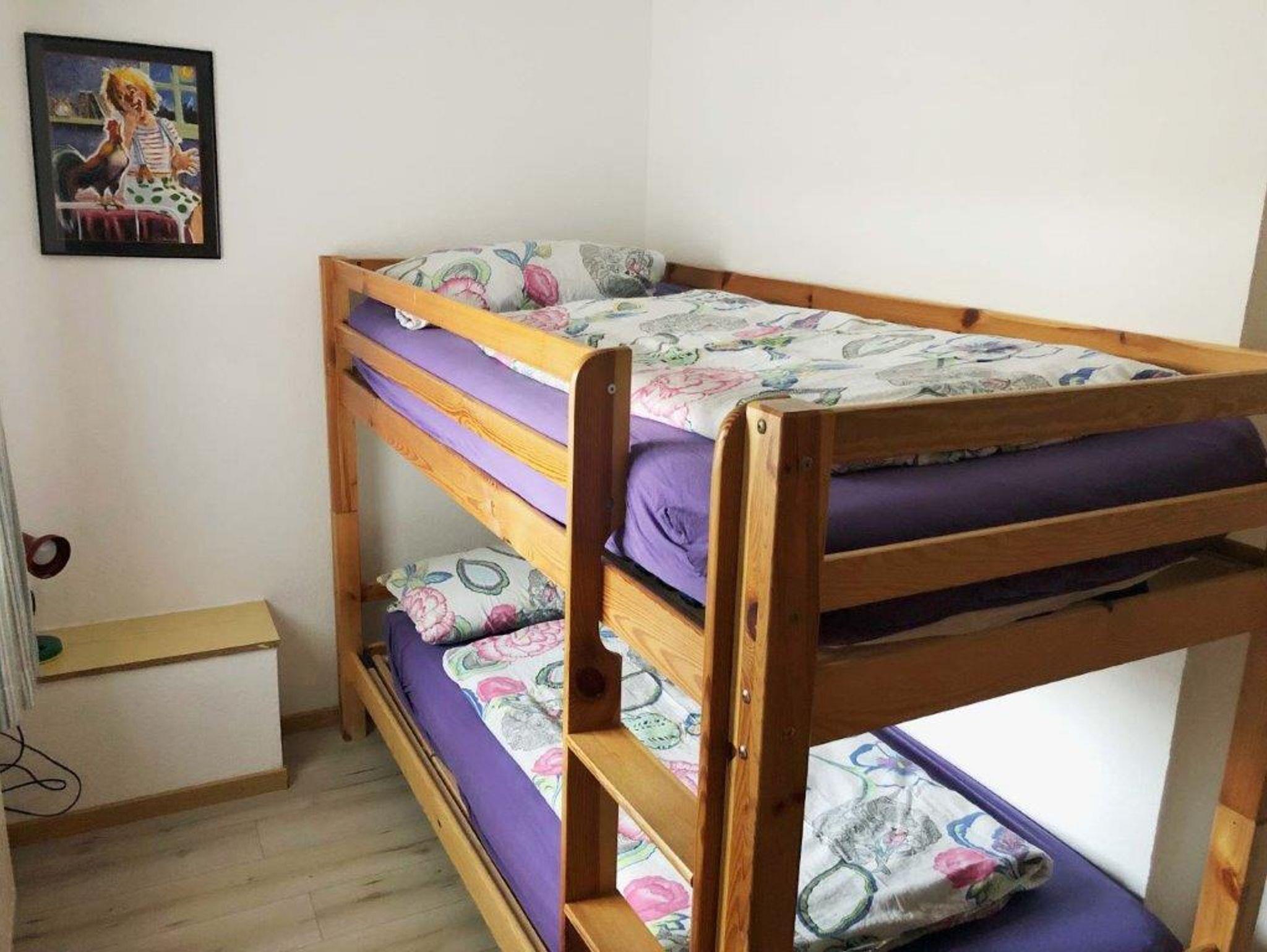 1 Wohnraum mit Schlafcouch für eine Person, Sat-Farb-TV, Radio und Telefon. Kochnische mit Backofen und kleiner Geschirrspülmaschine. 1 Schlafraum mit Doppelbett. 1 Kinderzimmer mit Etagenbett. Dusche/WC. Auf Anfrage mietbar: Bettwäsche (8,00 EUR pro Person) Handtücher (0,70 EUR pro Stück) Badelaken (1,30 EUR pro Stück)