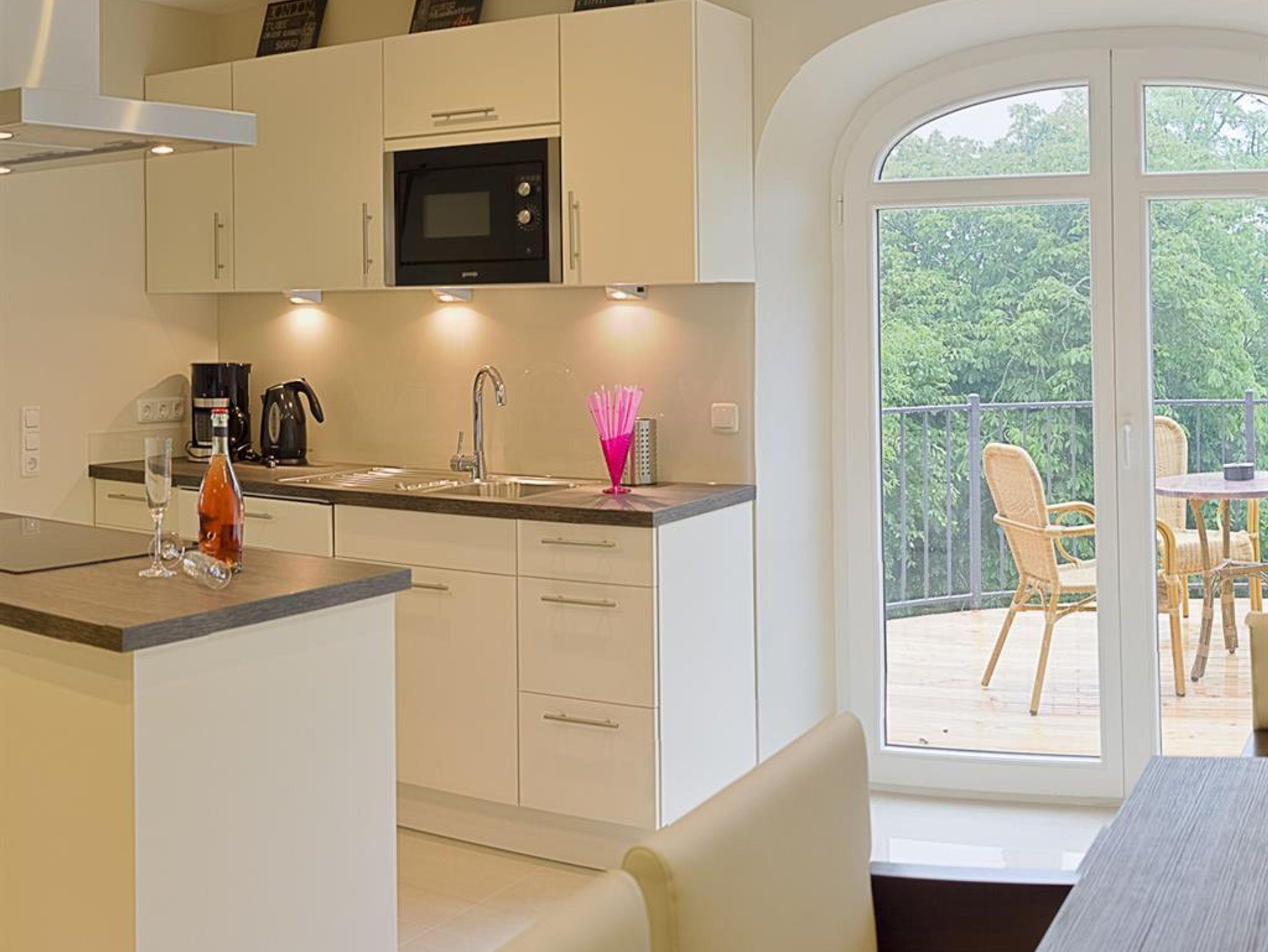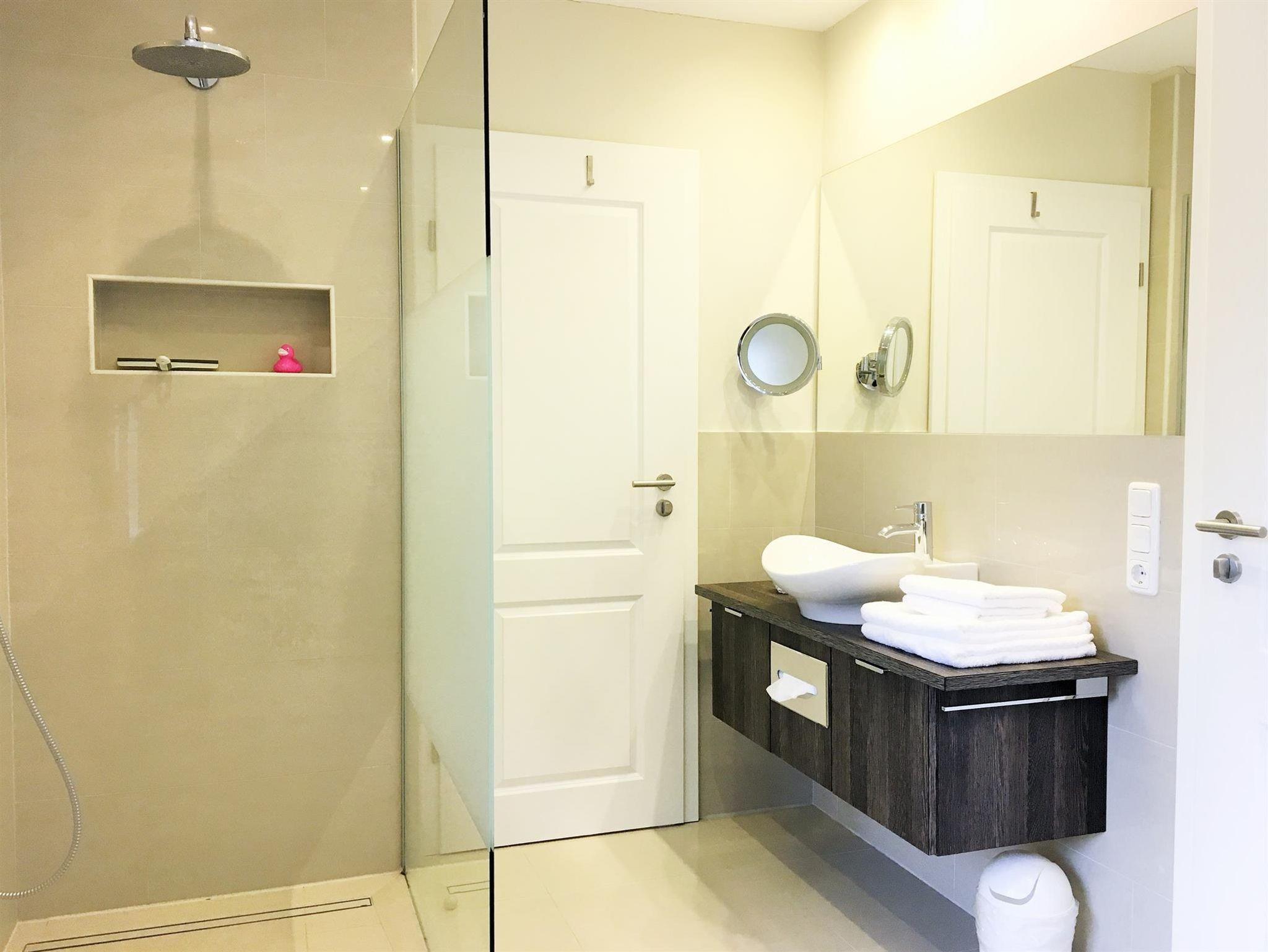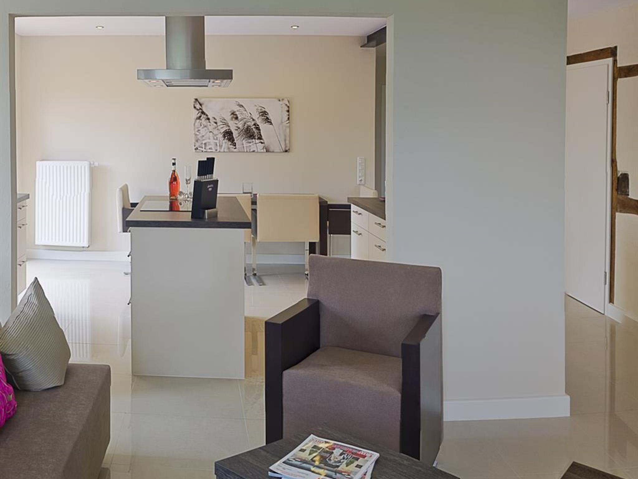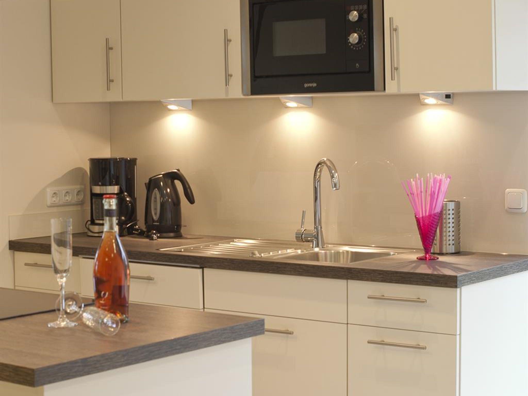 3-Zimmer Nichtraucher-Ferienwohnung für bis zu 4 Personen. Wohnzimmer mit SAT-TV und Blu-Ray/DVD-Player, Musikanlage mit CD-Player, Radio und Dockingstation für iPod, iPad oder iPhone. Badezimmer mit Regendusche, 2 Waschtische, Fön und beleuchtetem Schminkspiegel. Gäste-WC mit Waschmaschine und Trockner. Offene Küche mit Kochinsel, Carenfeld mit Backofen, komplette Küchenausstattung (Kaffeemaschine, Wasserkocher, Toaster, Geschirrspüler, Mikrowelle, Kühlschrank mit Gefrierfach). 1 Schlafzimmer mit Doppelbett, 1 Schlafzimmer mit 2 Einzelbetten und Schreibtisch, Bügelstation und Laptop-Safe. Möblierter Balkon. Baby-Bett und Hochstuhl auf Anfrage. PKW-Stellplatz vorhanden. W-LAN kostenfrei verfügbar