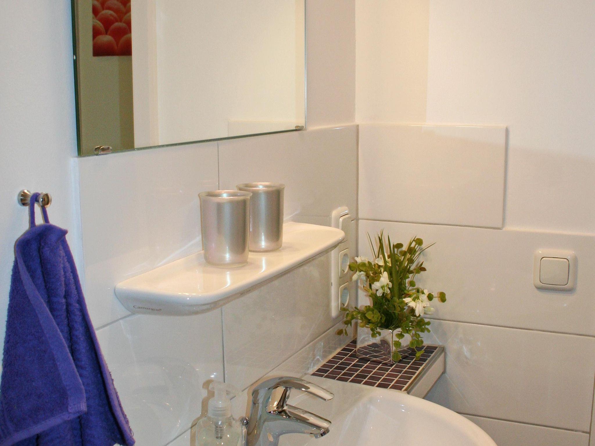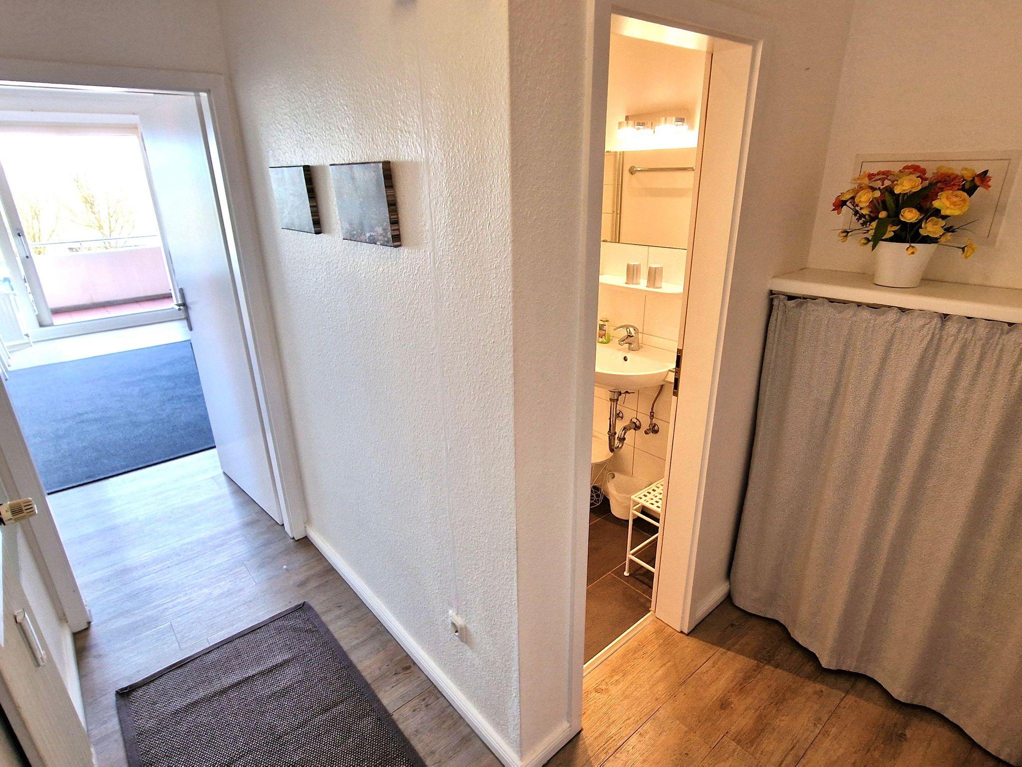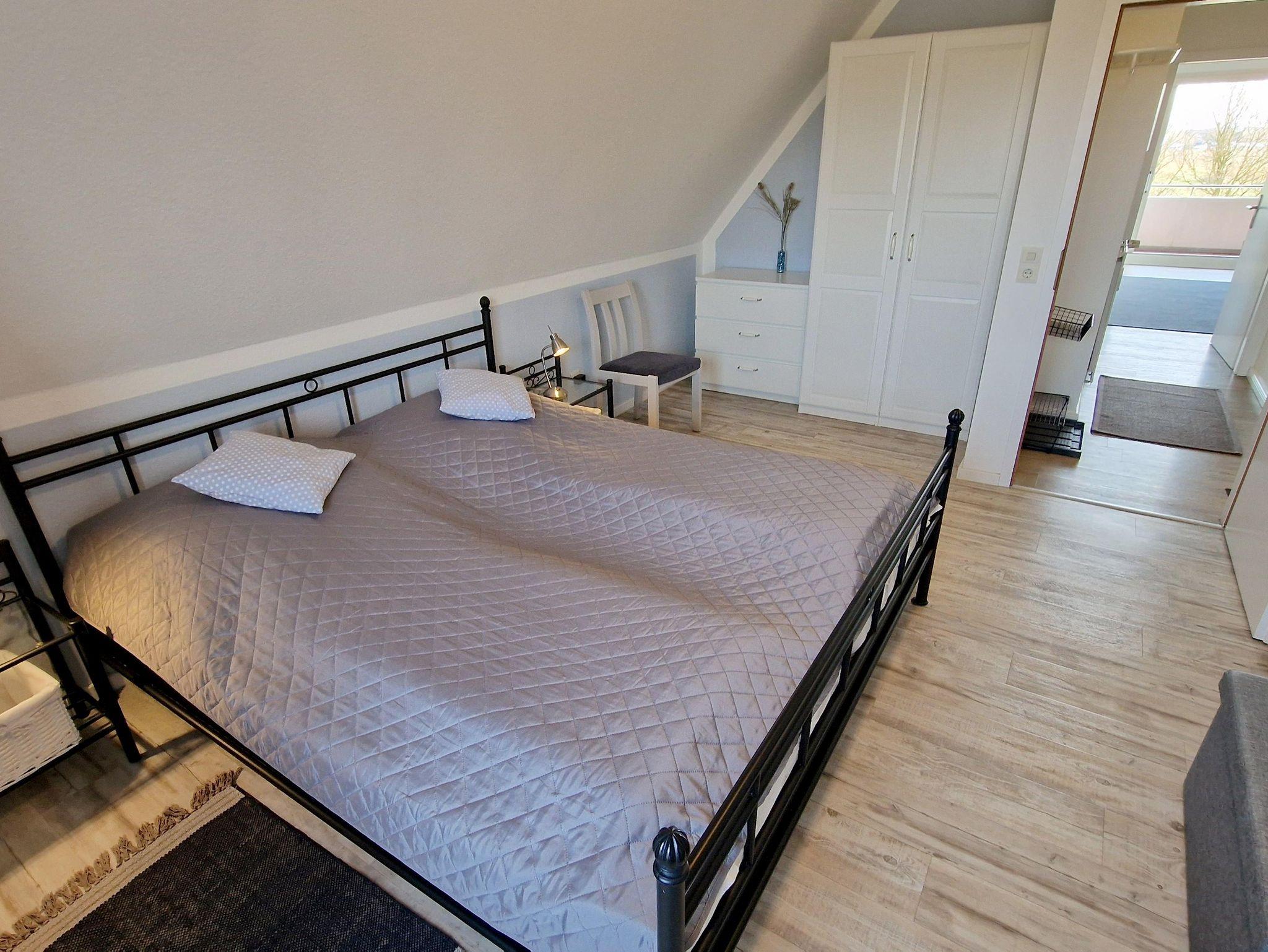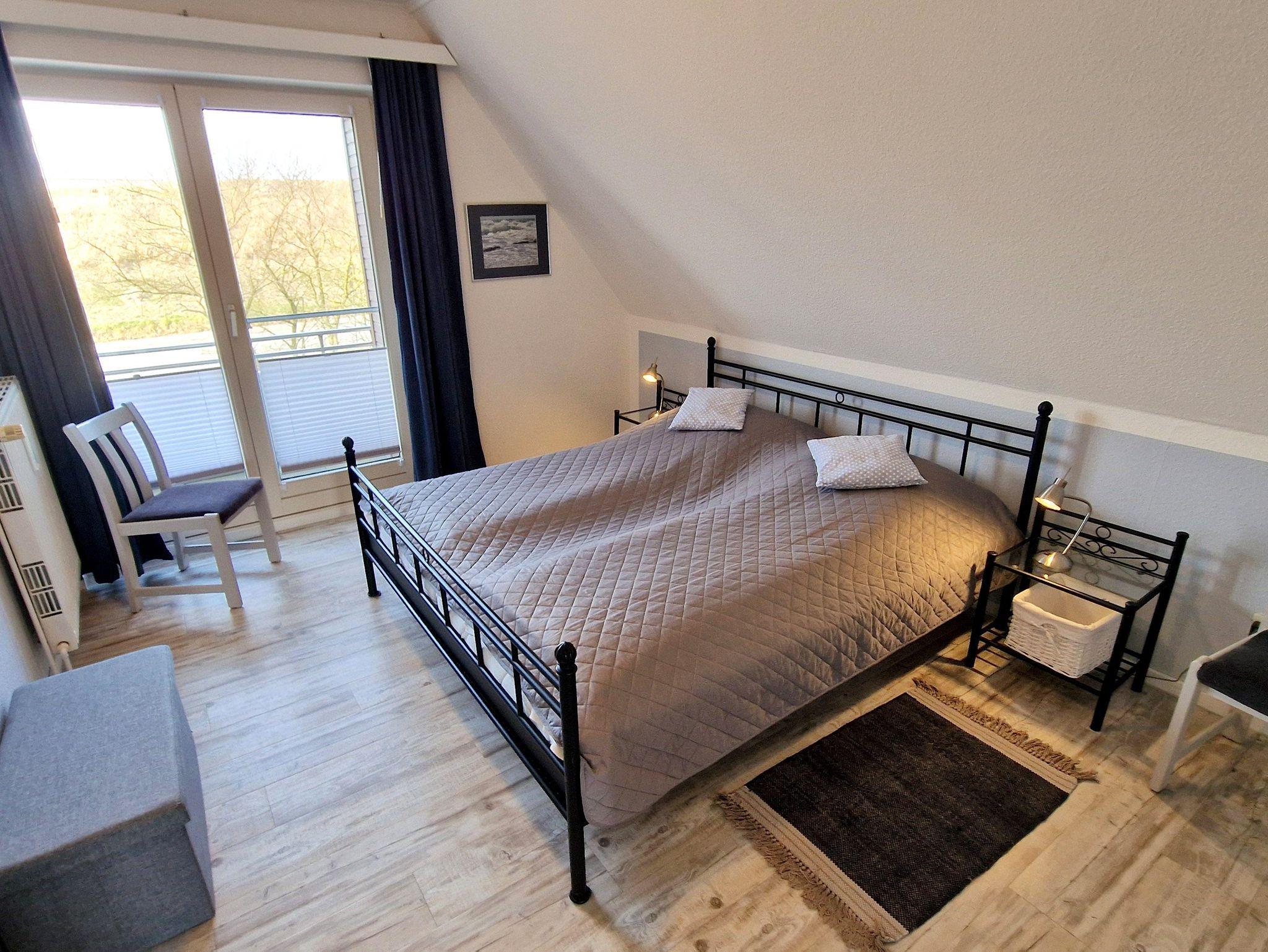 In der 2-Zimmer Nichtraucherwohnung haben bis zu 3 Gäste Platz. Von dem großen Südbalkon hat man einen weiten Blick über die Wiesen und direkt vor der Haustür ist der Deich mit den Dünen und dem Strand.