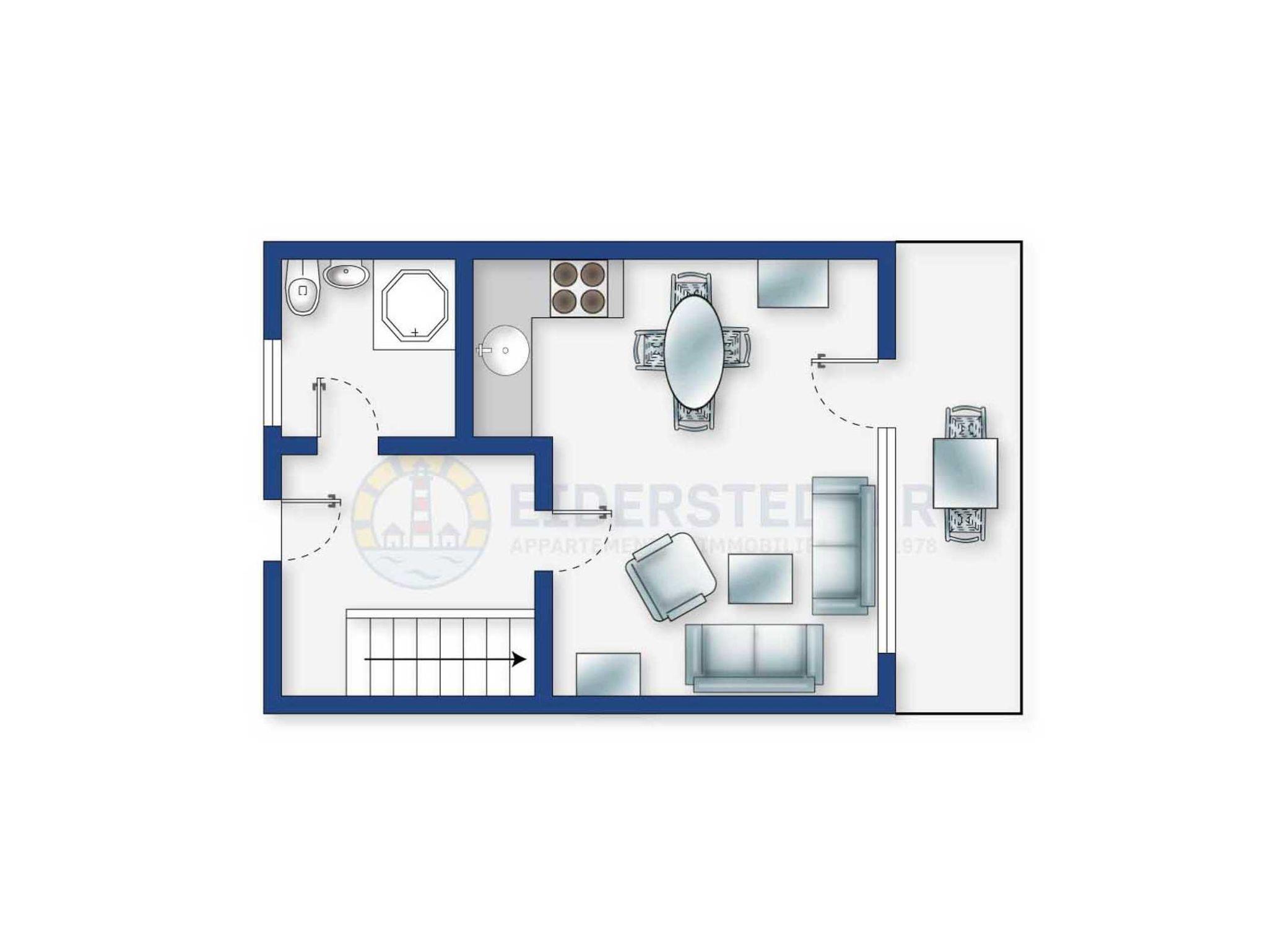 Gut ausgestatteter Mittelhausteil im Haus Böhler Eck mit 3 Zimmern und ca. 48 qm auf 2 Ebenen (EG, OG) für bis zu 4 Personen. In ruhiger Lage im Ortsteil Böhl in St. Peter-Ording. Seedeich in wenigen Gehminuten erreichbar. Restaurants, ein Bäcker mit Minimarkt und weitere Einkaufsmöglichkeiten sind in der Nachbarschaft.