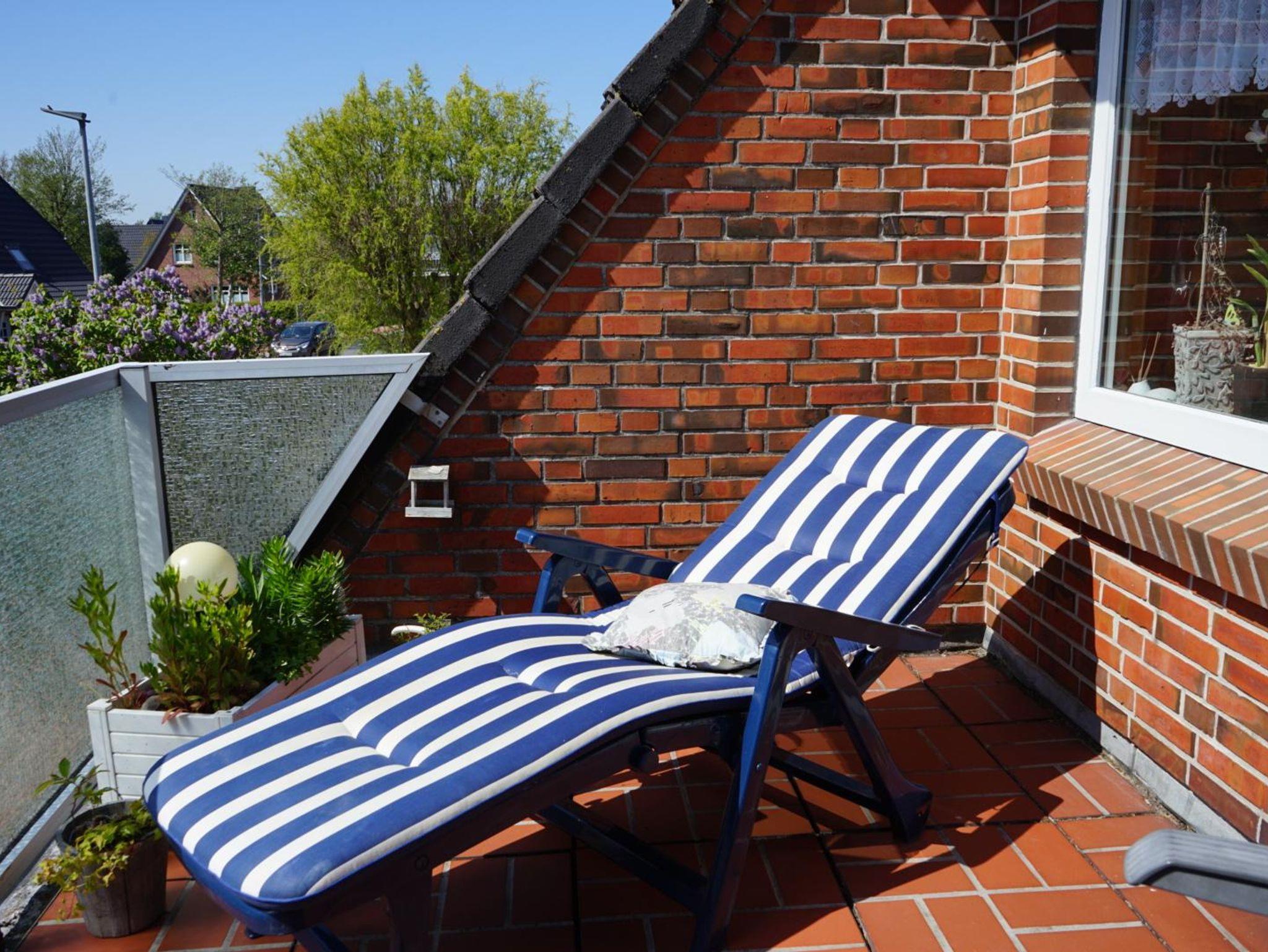 Zur Mitbenutzung und zum Verweilen steht Ihnen ein mit Gartenmöbeln ausgestatteter Sonnen-Balkon (nach Westen ausgerichtet) zur Verfügung.