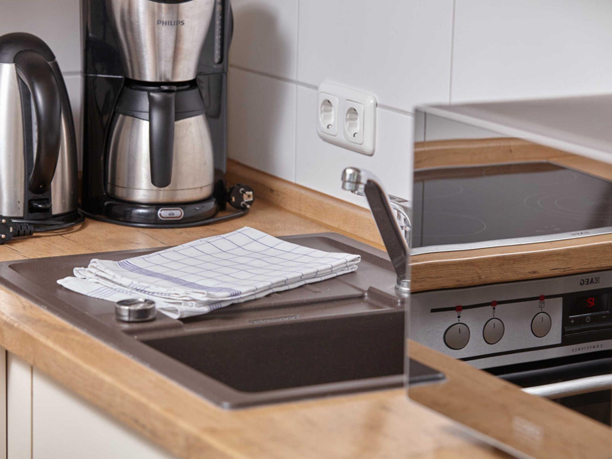Helle mit Eichendielen versehene Räume heißen Sie hier herzlich willkommen. Ein grosszügiges ebenerdige Duschbad mit Wellness Faktor & Waschtrockenautmat ist vorhanden. Die komplett ausgestatte Küche in Hochglanzoptik verfügt über Geschirrspüler,Ceranherd, Heißluftofen, Kühlgefrierkombination, Dunstabzugshaube, Mikrowelle. Das Schlafzimmer bietet ein Doppelbett mit verstellbaren Lattenrosten und 7 ZonenKaltschaummatratzen. Im Wohnbereich finden Sie Loungemöbel aus Leder, Flat-TV,DVD Player & eine Stereoanlage. Sehr helle Räume sorgen für ein Urlaubsambiente der besonderen Art. Ölbilder einer norddeutschen Malerin sorgen für die künstlerische Gestaltung in den Räume.