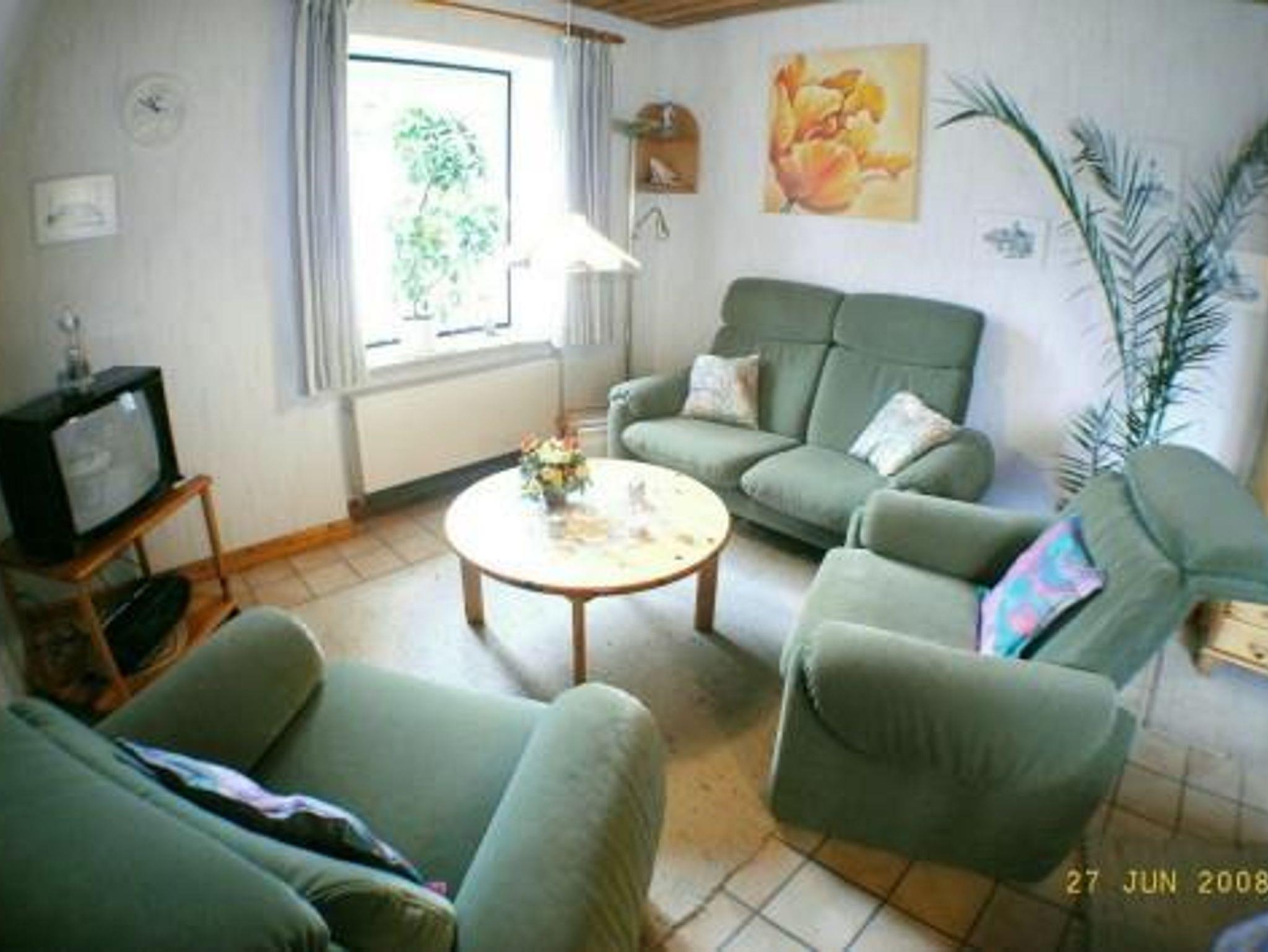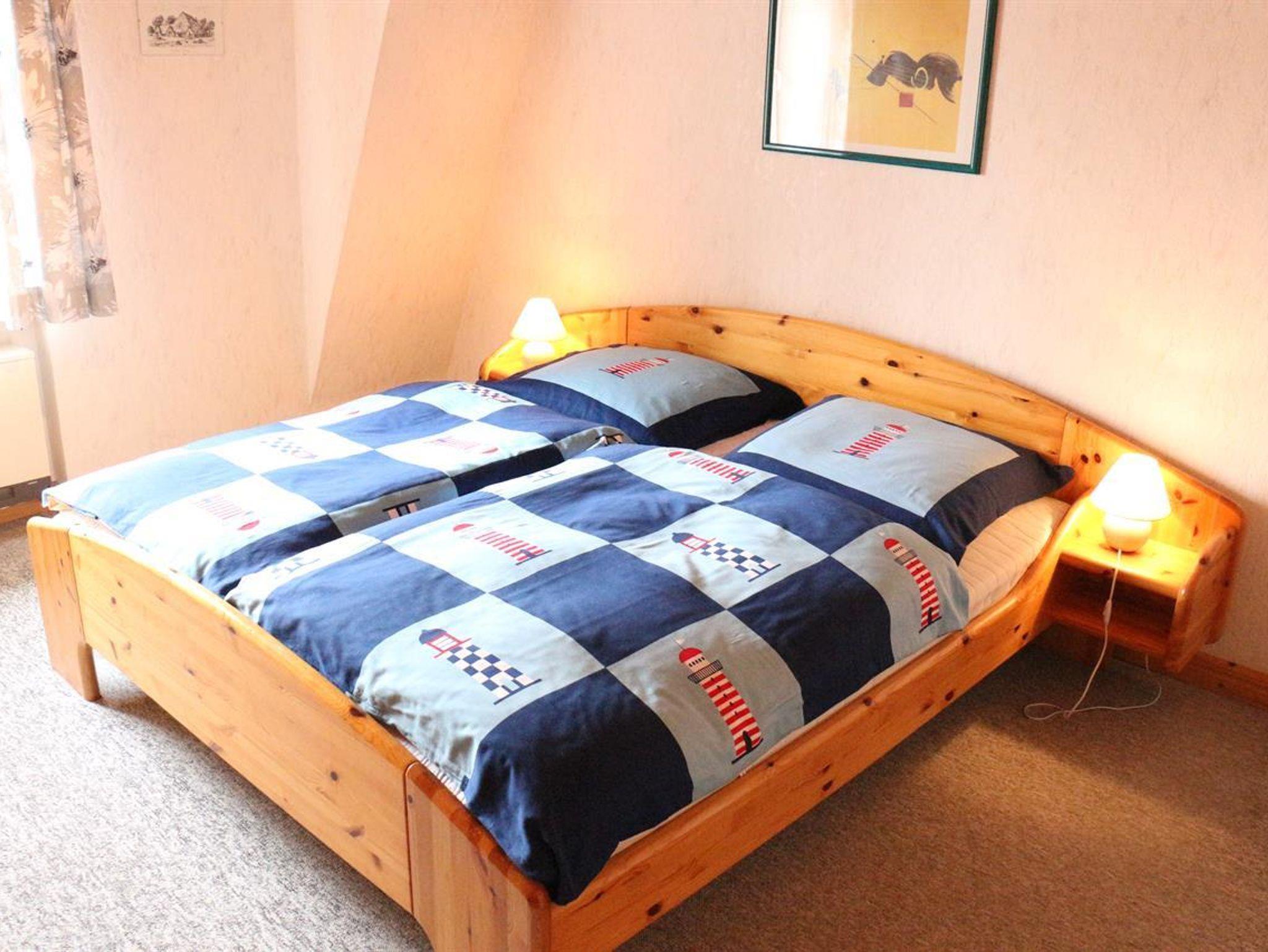 1 Wohn-Eßraum mit Küchenzeile (u.a. mit Mikrowelle) , Kabel-Farb-TV, Radio (mit CD-Player). 1 Schlafraum mit Doppelbett. 1 Schlafraum mit 2 Einzelbetten. Bad mit Dusche und WC. Abstellraum. Tresor. Deckenholzvertäfelung. Die Wohnung ist liebevoll im nordischen Stil eingerichtet. Bettwäsche und Handtücher müssen mitgebracht werden. Kinderhochstuhl und Kinderbett auf Wunsch nach Verfügbarkeit möglich. Neue Designbelagböden in den Schlafzimmern.