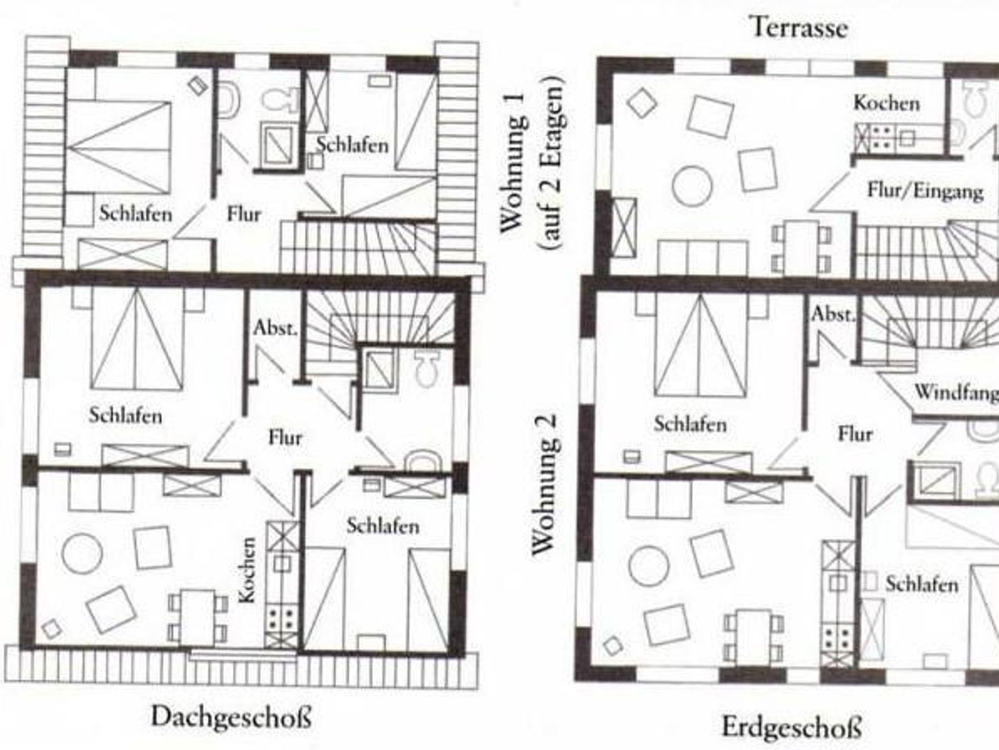 Das freistehende Haus, mit drei Ferienwohnungen, ist umgeben von einer 700 qm großen, gepflegten Gartenanlage und befindet sich in direkter Dorfzentrumslage in einer ruhigen Sackgasse am kleinen Wäldchen.