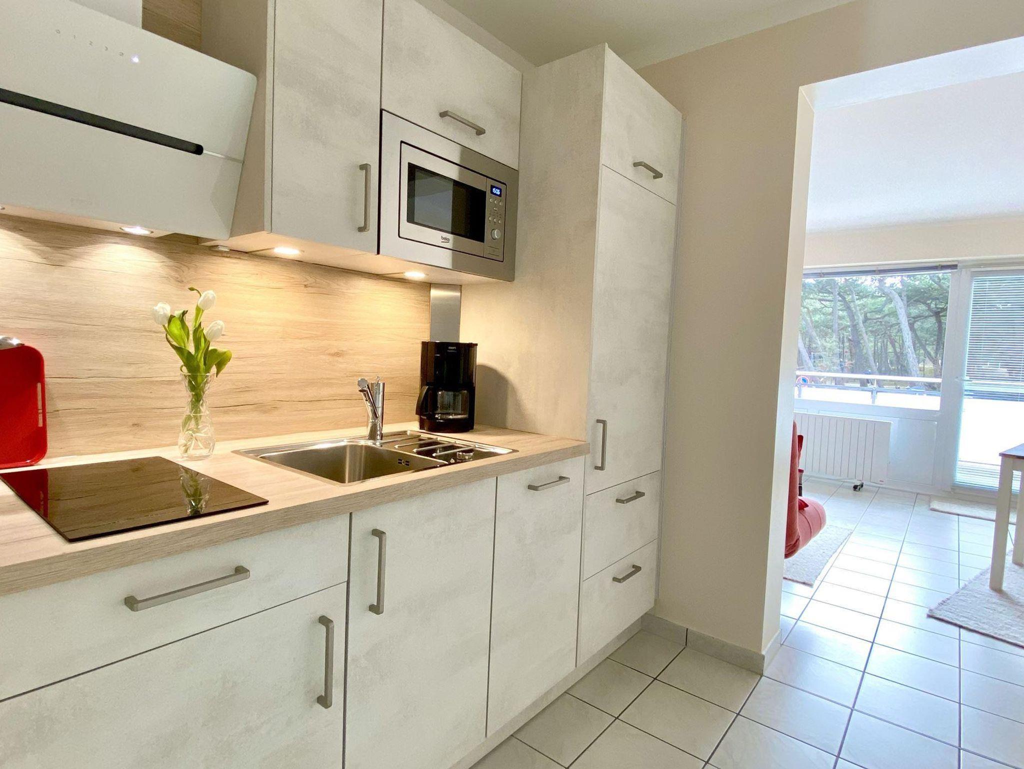 Die 2-Raum-Wohnung Utlande Nr. 34 bietet Ihnen eine farbliche schön gestaltete Unterkunft für bis zu 2 Personen im 1. OG. Der Fußboden ist in der gesamten Wohnung mit schönen Fliesen verlegt. Die Küchenecke lädt mit 4-Plattenherd und Backofen zum Kochen und Backen ein. Die Spülmaschine hilft Ihnen danach weiter. Es erwartet Sie ein renoviertes, modernes Bad. Auf dem großzügigen Süd-Balkon können Sie etwas Nordseeluft schnuppern.