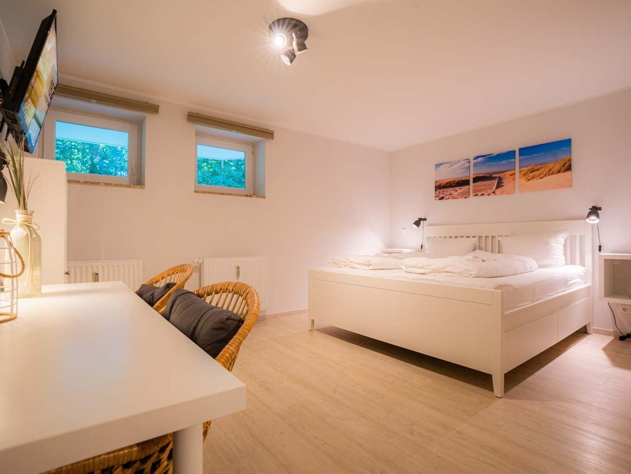 Pkw-Stellplatz vor und überdachte Fahrradständer hinter dem Haus. Kostenlose gemeinschaftliche Waschmaschine und Trockner im Keller des Hauses (siehe Gästeinfomappe). Kostenloses WLAN. Kinderreisebett und Hochstuhl kostenlos vorhanden.
