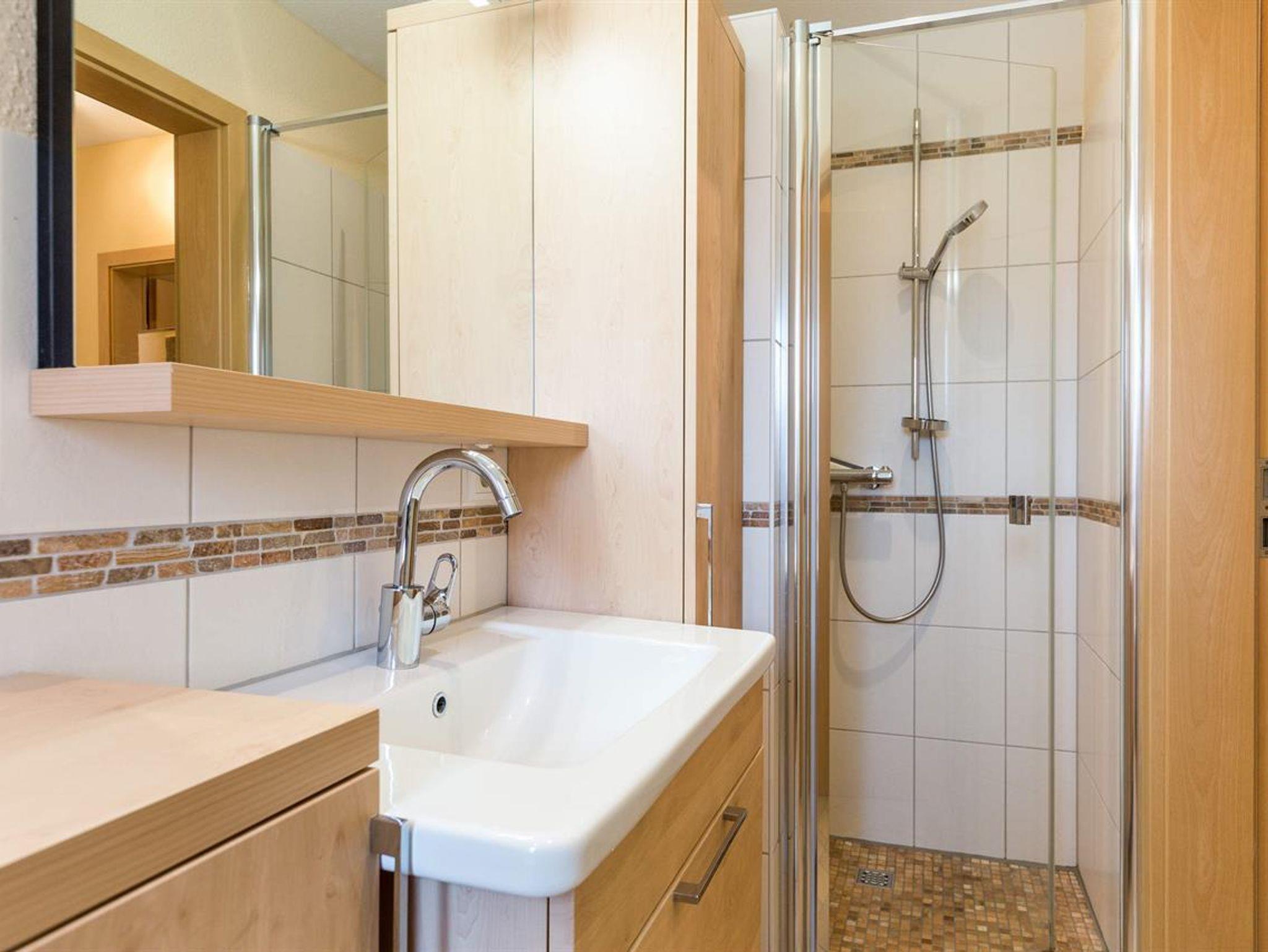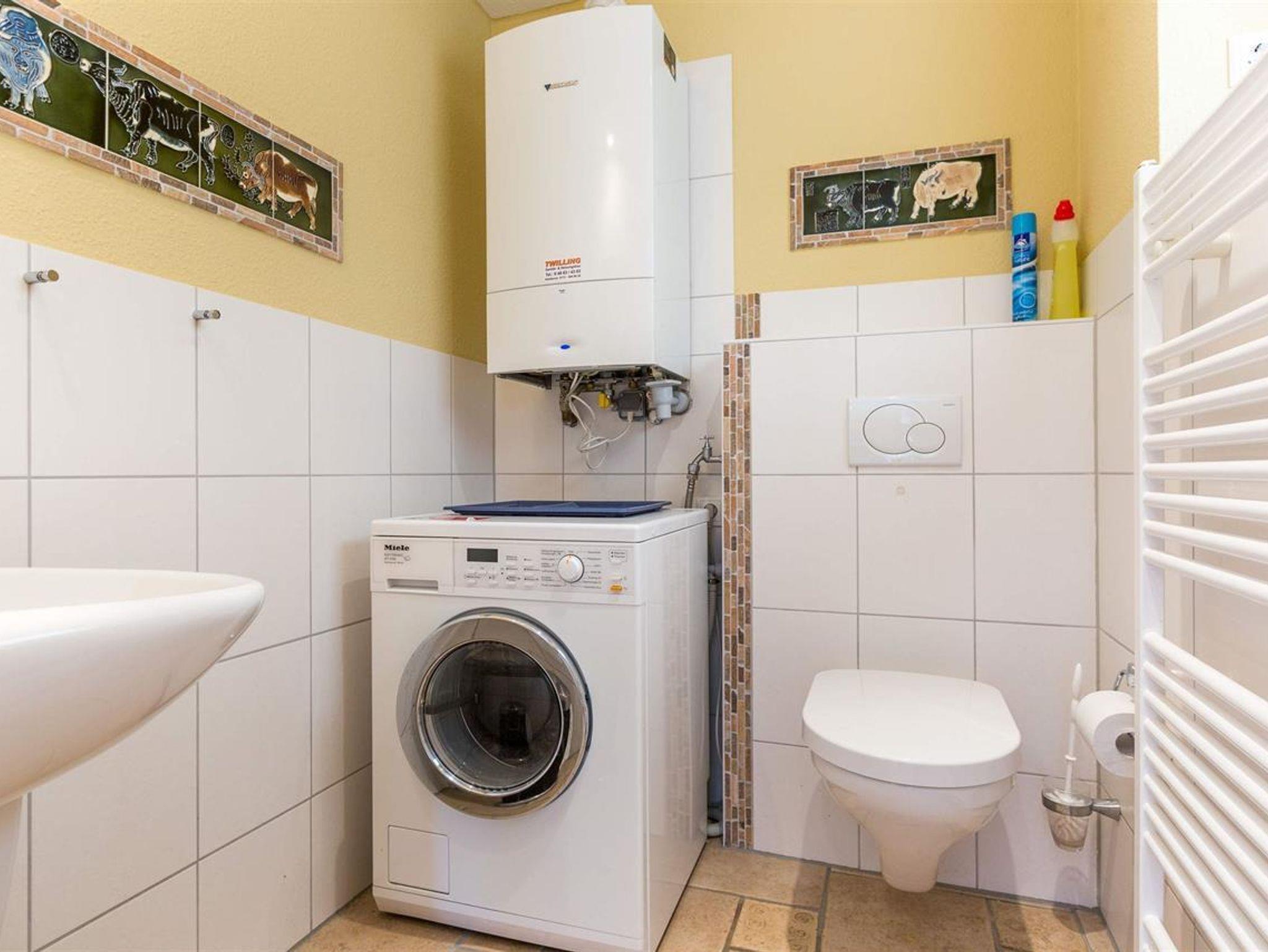 • Separates Gäste-WC mit Waschmaschine (inkl. Trockner) Handtuchwärmer und Tageslicht.