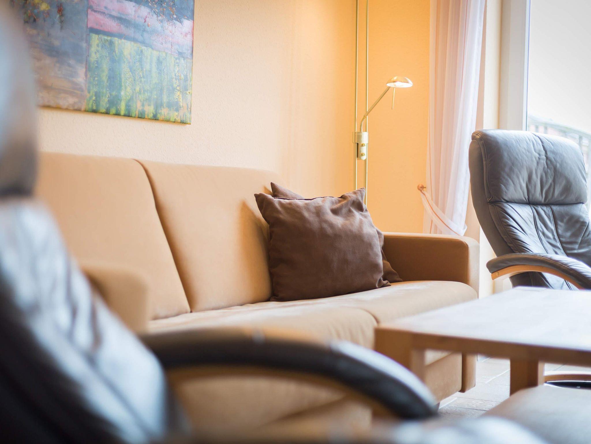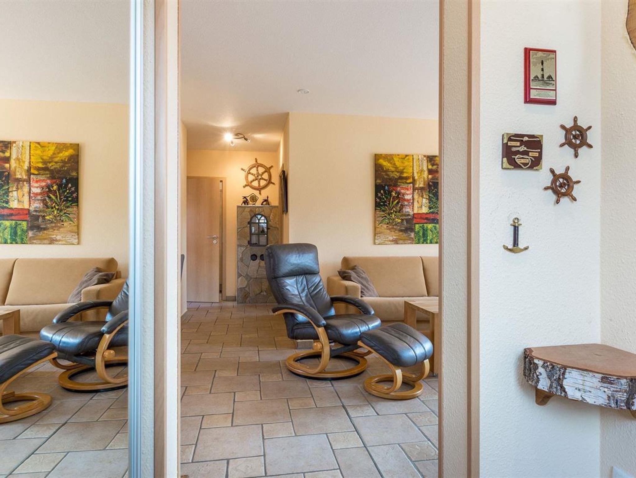 Komfortable 3-Zimmer-Ferienwohnung in St. Peter-Dorf mit gemütlichem Kaminofen.Modern und stilvoll eingerichtet ist die Ferienwohnung Kapitänsstuv, ca. 61 qm im Erdgeschoß für bis zu 3 Personen.