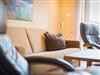 • Wohnzimmer mit Ledersofa, 2 Ruhesesseln, großem TV(Sat), gemütlicher Kaminofen.