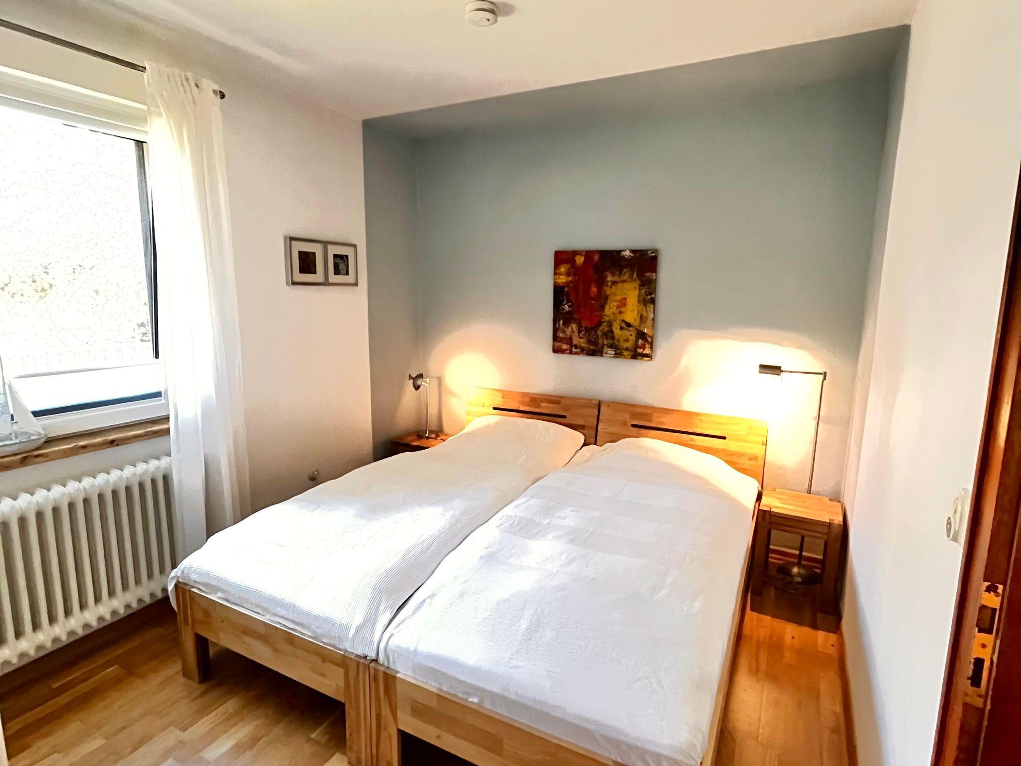 Die Whg. im EG - mit einem großen Wohnzimmer (inklusive Schlafsofa), zwei Schlafzimmern, Küche und Badezimmer - ist über 90 m2 groß. Zur Wohnung gehört eine große Terasse und es kann ein Stück des davor liegenden Gartens genutzt werden. Die Wohnung ist komfortabel ausgestattet: Einbauküche mit Backofen, extra Gefrierschrank, Spülmaschine, Waschmaschine, geräumiges Wannenbad, Föhn und Kosmetikspiegel; Kabel-TV, WLAN-Internetzugang, DVD-Player, Radio mit CD-Player, Terassenmöbel und Strankorb. Kinderbett und Hochstuhl werden auf Wunsch bereit gestellt.