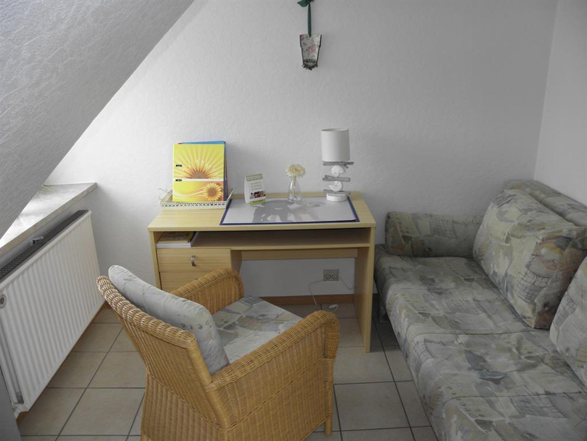 • Wohnraum: Der Wohnbereich ist ausgestattet mit einem Sat-Farb-TV und einem Radio, sodass Sie sich jederzeit entspannen und Ihre Lieblingssendungen genießen können.