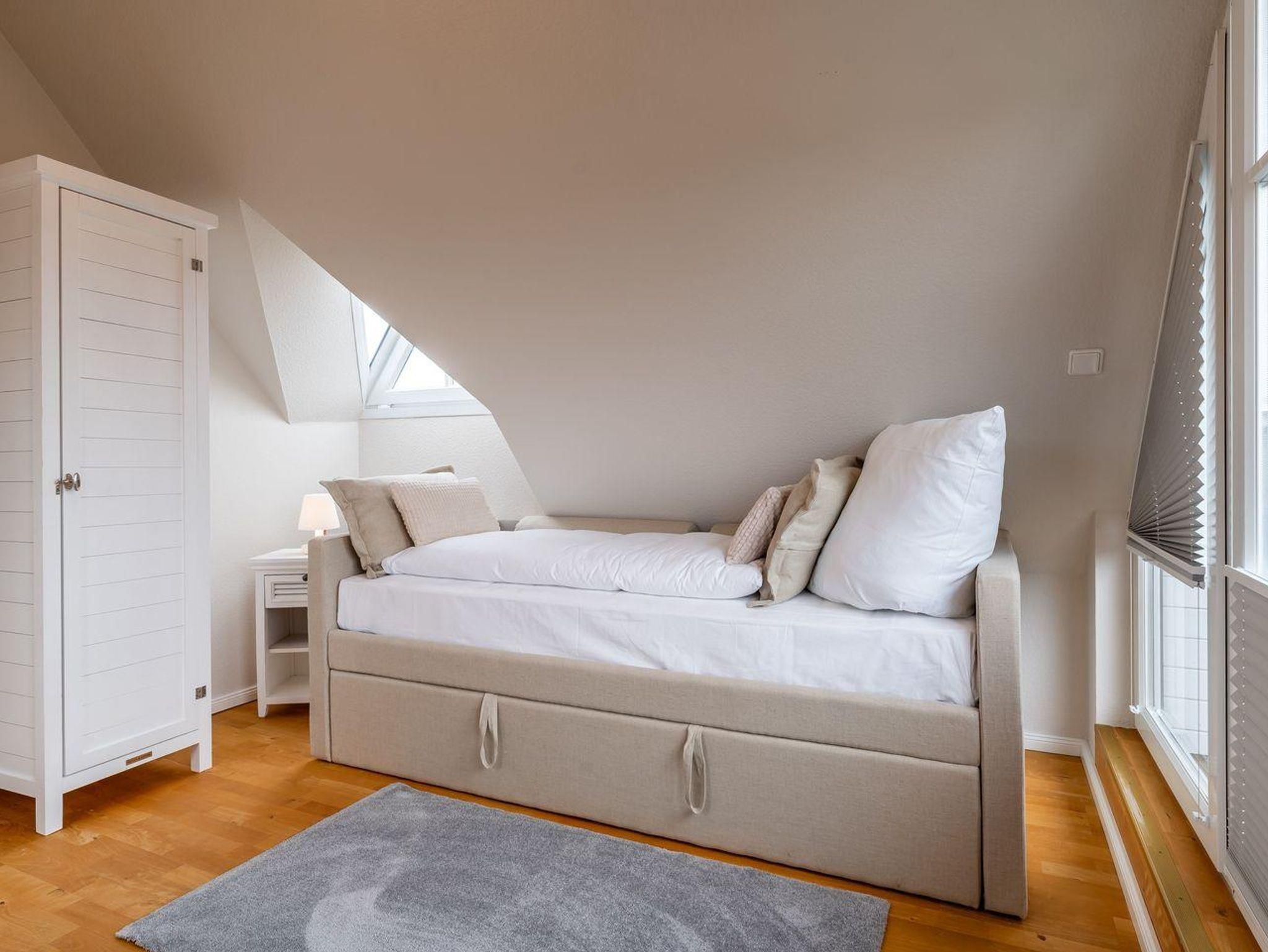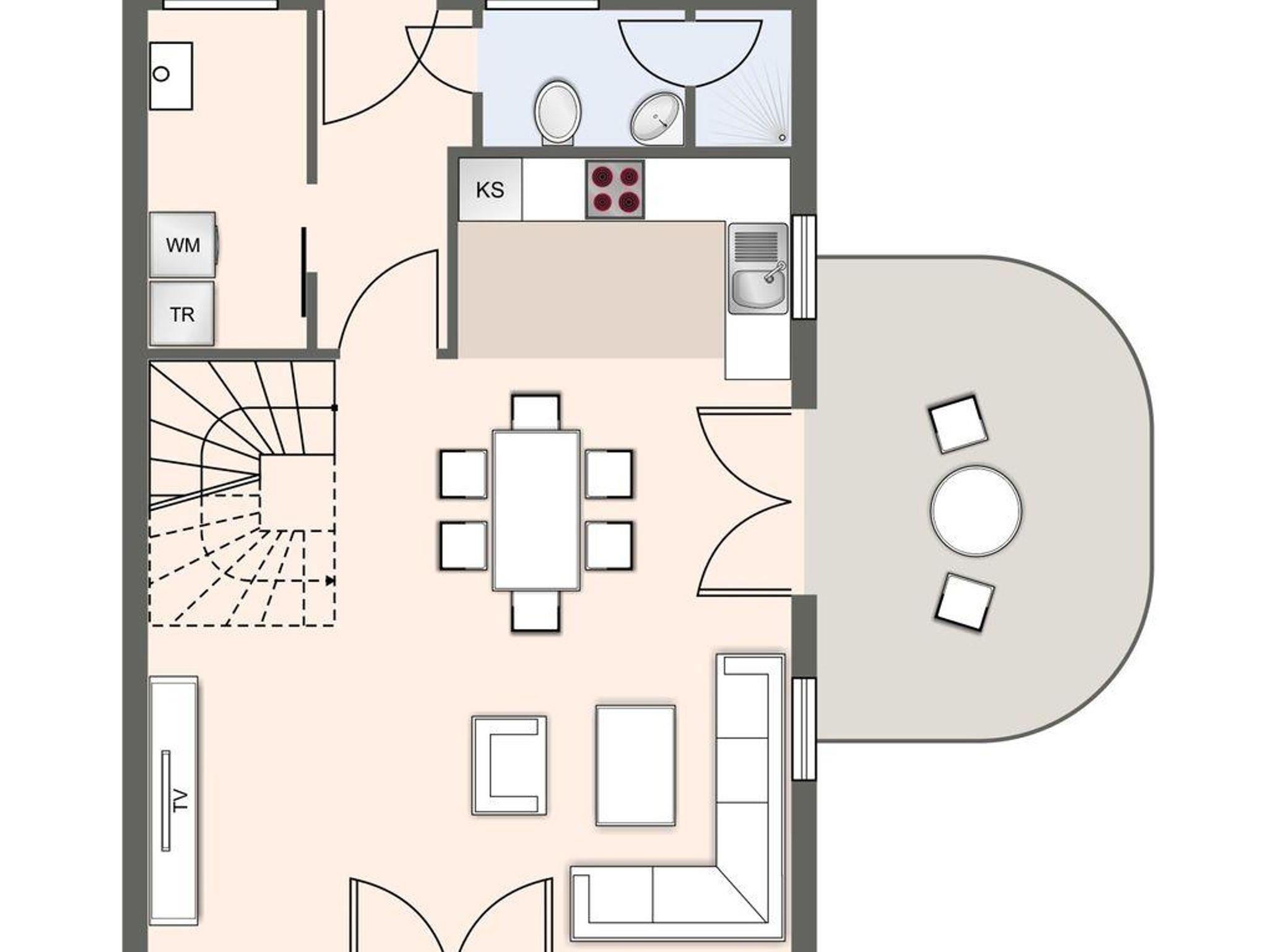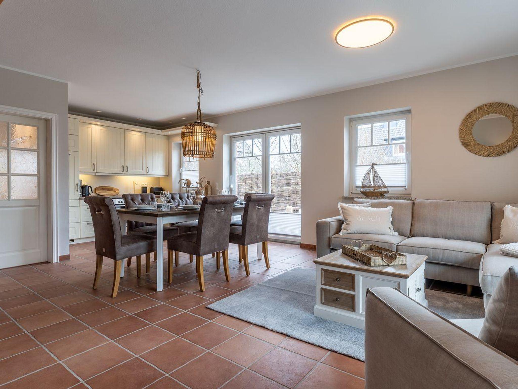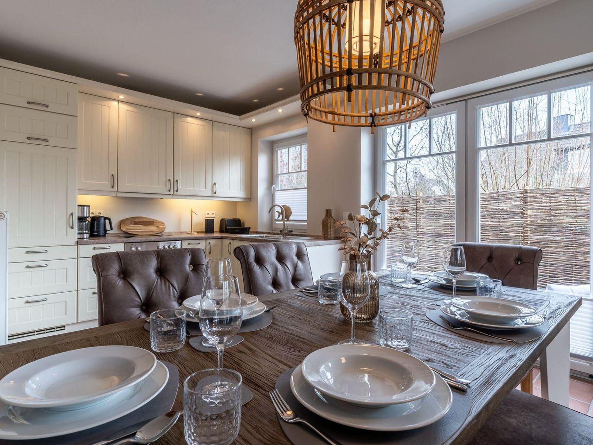 Die Unterkunft verfügt über insgesamt 4 Zimmer, darunter 3 Schlafzimmer, die viel Platz und Privatsphäre bieten. Im Parterre genießen Sie eine offene Küche, die mit modernen Annehmlichkeiten ausgestattet ist, darunter ein Cerankochfeld, Backofen, Kühlschrank mit Gefrierfach und Geschirrspüler. Die Küchenutensilien sind vollständig vorhanden, sodass Sie Ihre Lieblingsgerichte zubereiten können. Ein gemütlicher Essbereich verbindet die Küche mit dem Wohnzimmer.