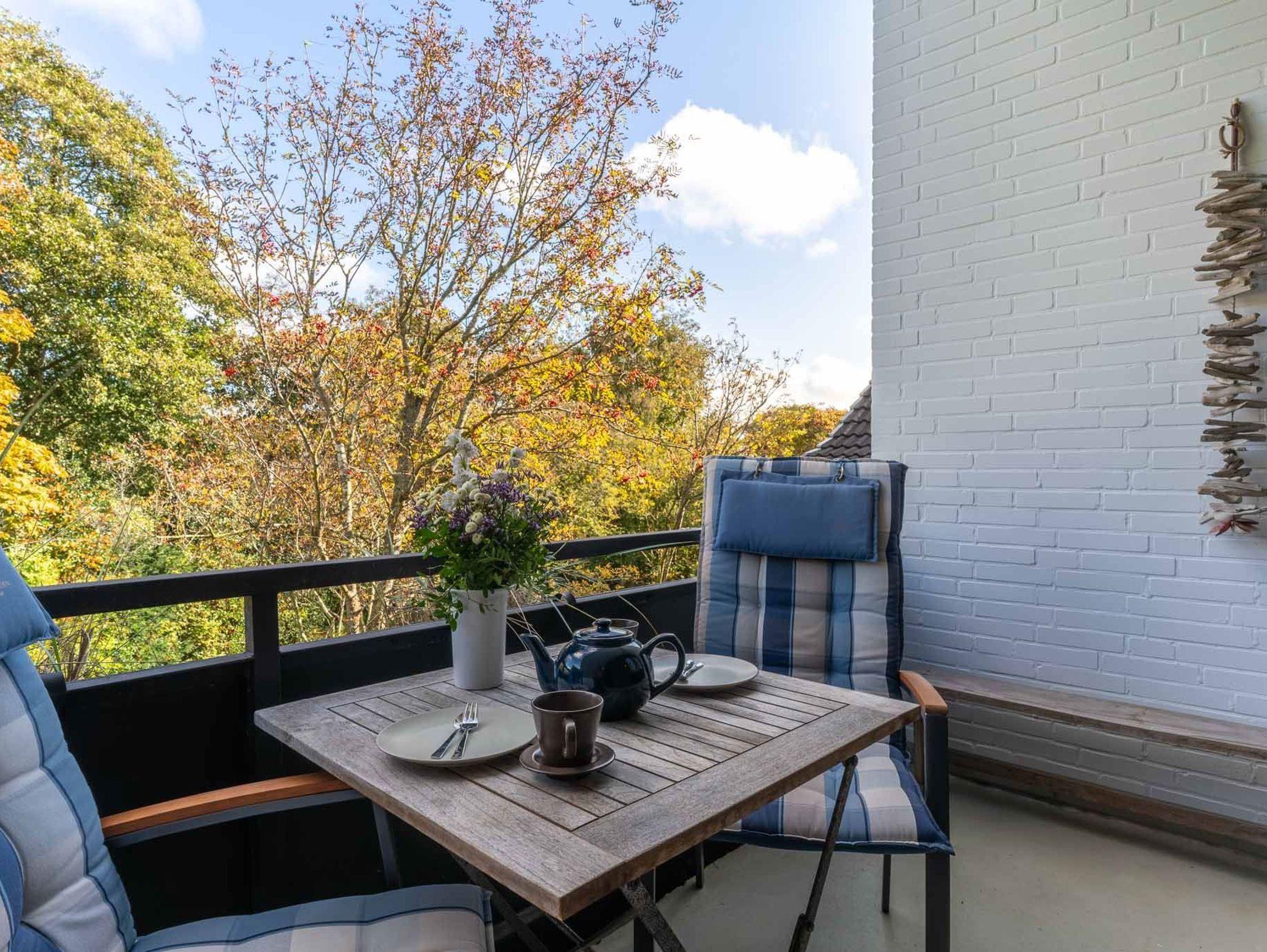 Wohnzimmer mit Ecksofa, TV, Bluetooth-Stereoanlage, Küche mit Senseo-Maschine, Geschirrspüler und Essplatz. Schlafzimmer mit Doppelbett und Zugang zum überdachten Balkon mit Gartenblick. Tageslicht-Duschbad.