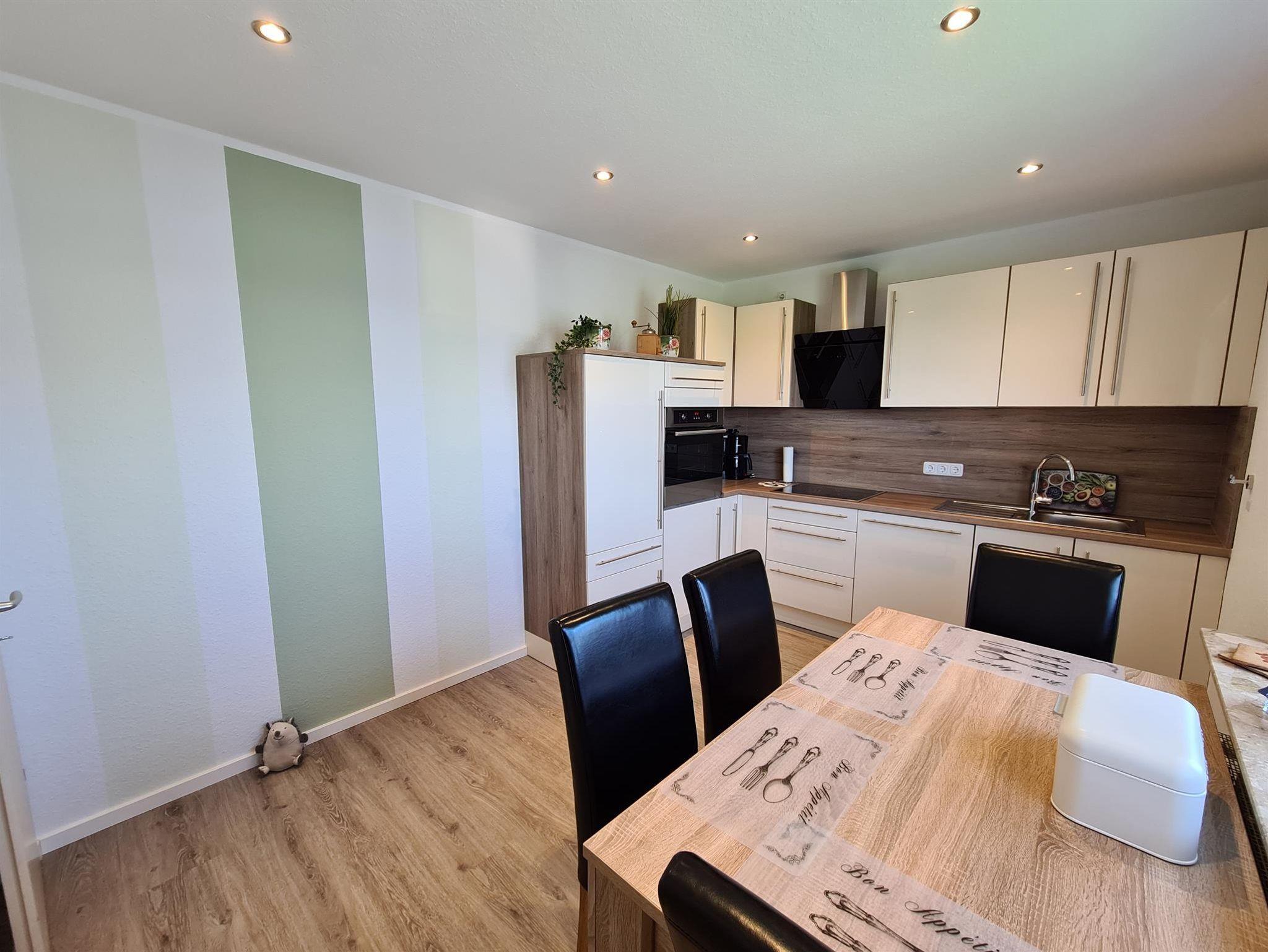 moderne, neue und separate Küche mit Backofen, Geschirrspüler, Ceranfeld und Essbereich