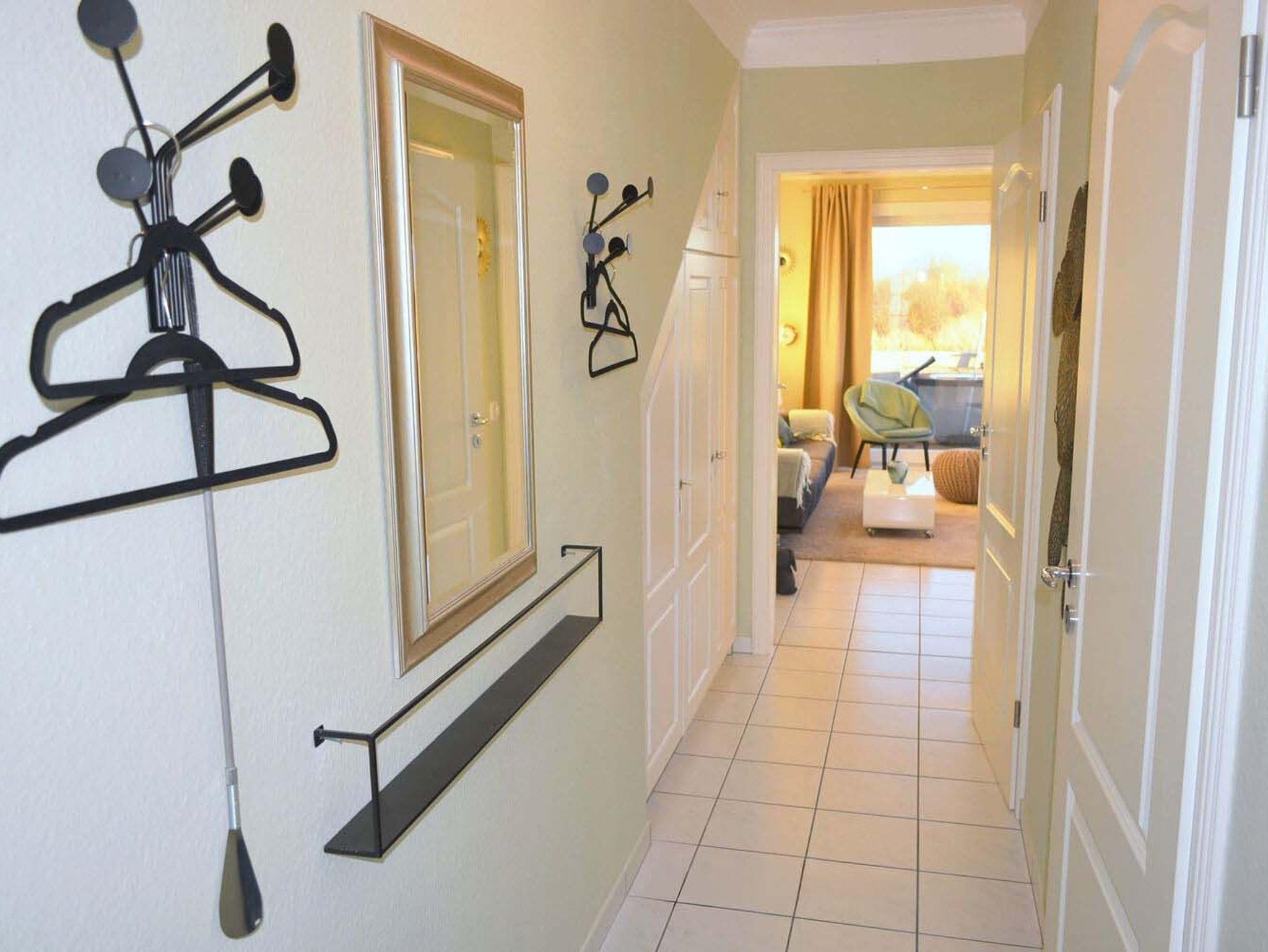 Flur: Einbauschrank, Garderobe, Spiegel, Staubsauger, Wäscheständer