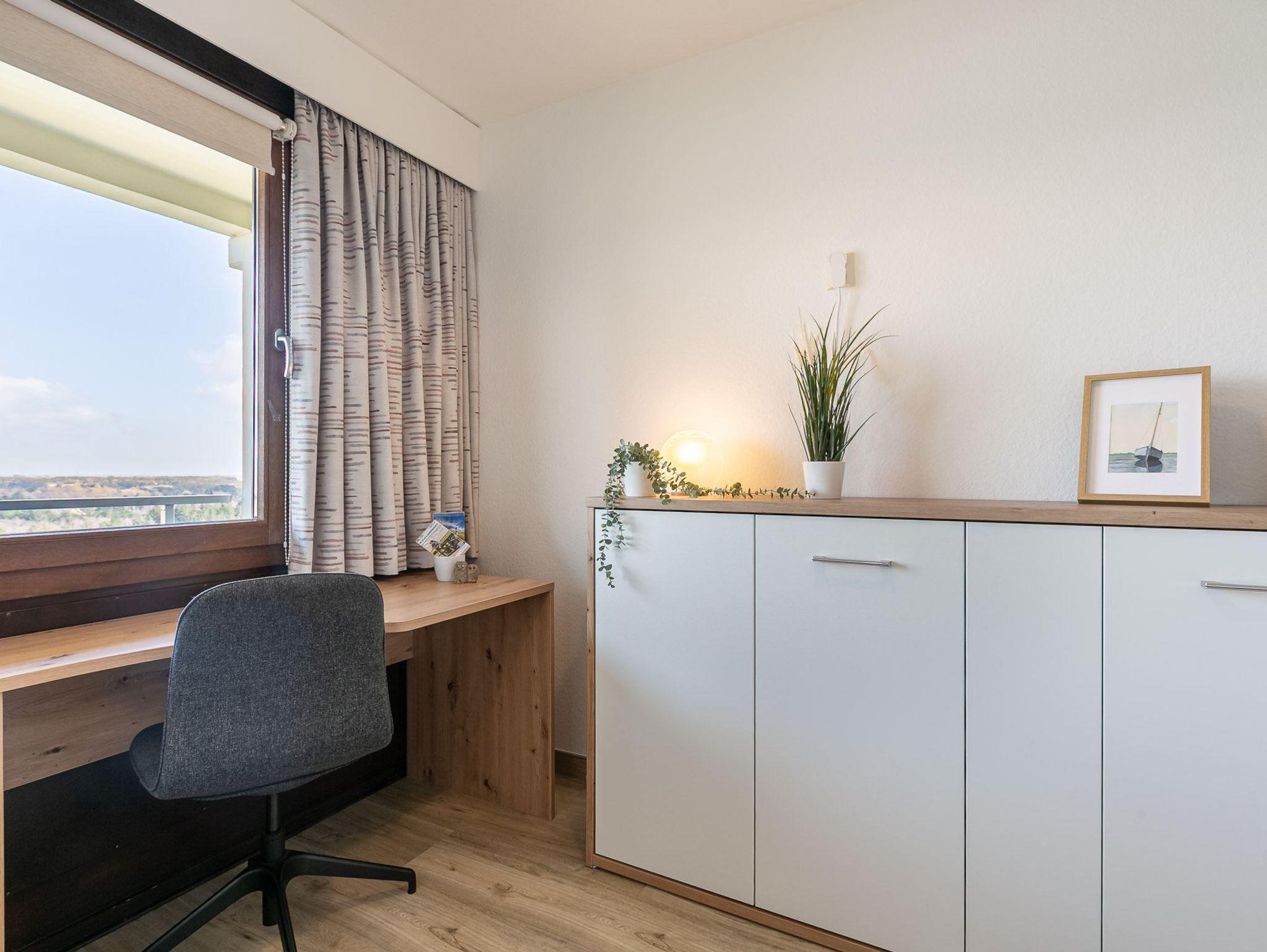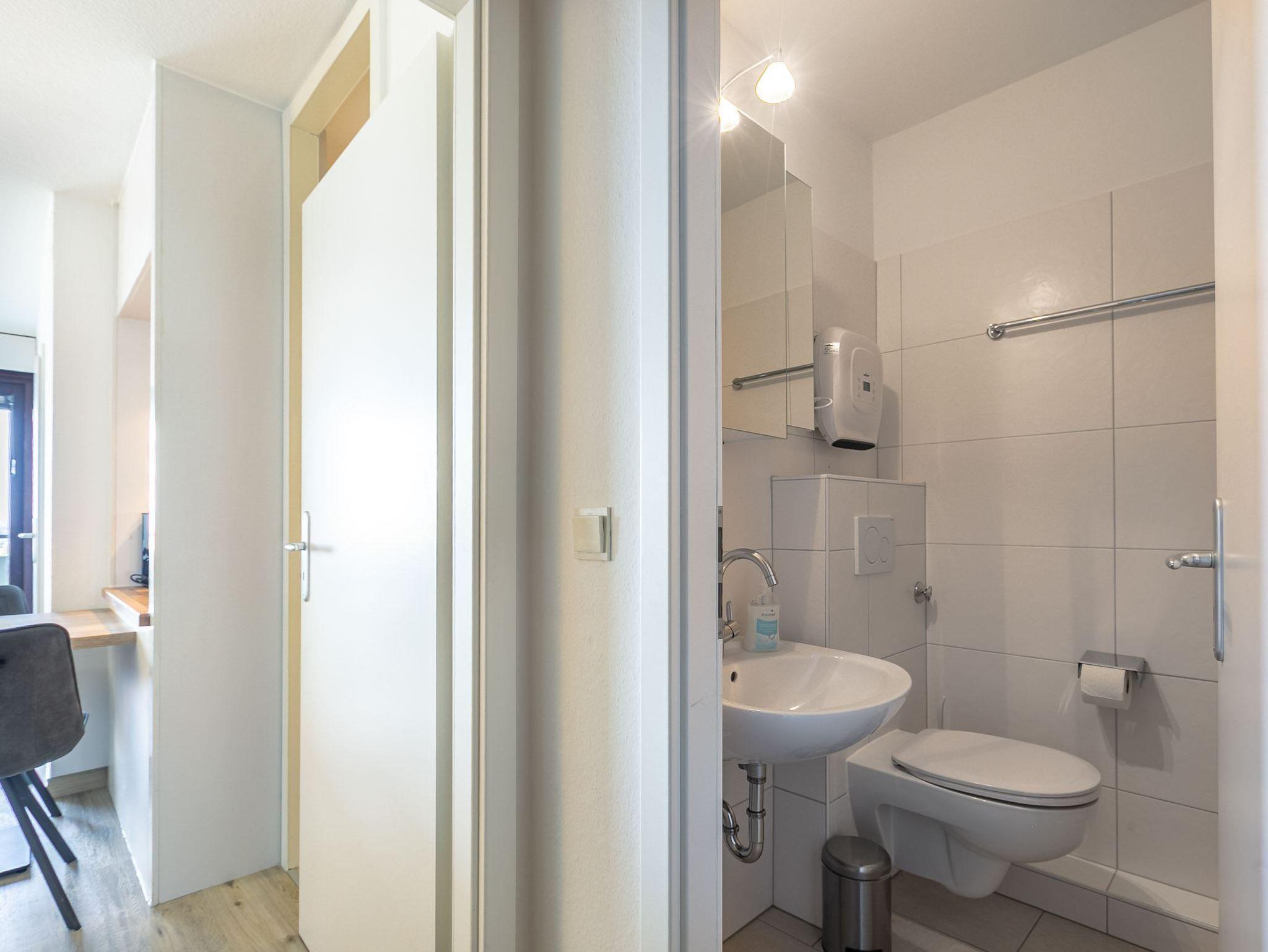 Pkw-Stellplatz vorhanden. Fahrradabstellmöglichkeiten nach Verfügbarkeit am Haus. Kostenloses WLAN. Gemeinschaftliche Waschmaschinen und Trockner (gegen Gebühr, im 4. OG., 8. OG. und 12. OG des Hauses). Die Wohnung ist durch den Kellereingang (auf der rechten Seite vom Haupteingang) ebenerdig erreichbar ohne Treppenstufen und mit Automatiktüren.