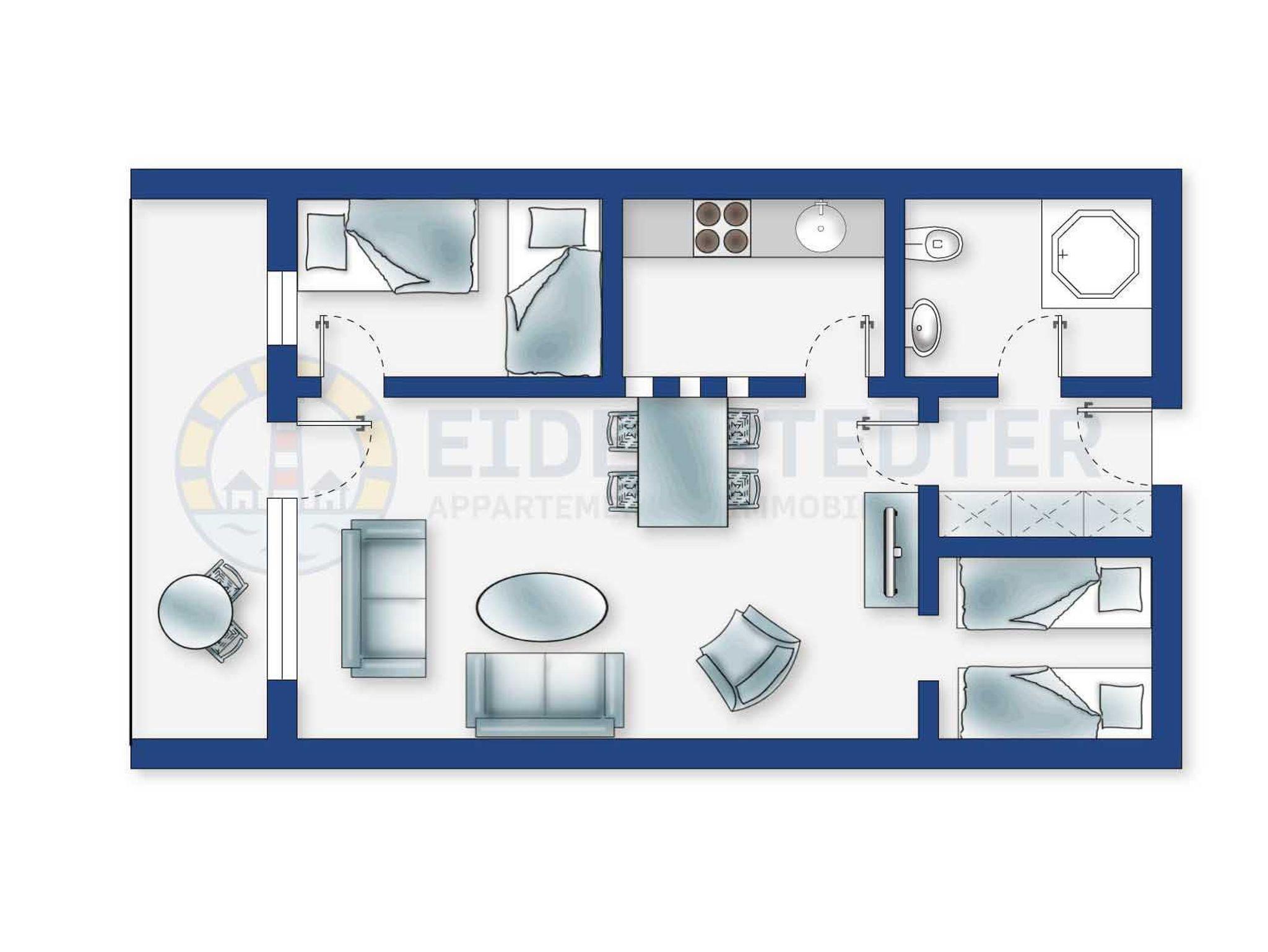 Gemütliche 2 1/2-Zimmer-Ferienwohnung im Haus Atlantic mit ca. 47 m² auf 1 Ebene (12. OG, mit Fahrstuhl) für bis zu 3 Personen. In ruhiger Lage im Ortsteil Bad in St. Peter-Ording. Bei guter Sicht können Sie über die Eidermündung bis nach Büsum sehen. Bis zur Strandpromenade sind es fußläufig nur ca. 400 m.