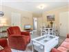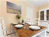 Wohnzimmer mit 2 Sofas (3er und 2er), Sessel, TV (Kabel) und Esstisch mit 5 Stühlen. Direkter Zugang zur schönen möblierten Terrasse nach Westen mit Strandkorb.