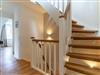 Über eine offene Treppe gelangt man in das mit Parkett ausgelegte Obergeschoss. Die drei Schlafzimmer, jeweils mit einem Doppelbett, sorgen für ruhevolle Erholung. Darüber hinaus befindet sich im Obergeschoss ein weiteres großzügiges Vollbad.