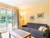 Wohnzimmer mit ausziehbarem Schlafsofa (160x190cm), 2 Sesseln, Hocker, TV (Sat), Radio und Esstisch mit 3 Stühlen. Direkter Zugang zur möblierten Garterrasse nach Süden mit Strandkorb. Offene Küche mit Mikrowellen-Kombigerät mit Backfunktion, Kühlschrank mit Gefrierfach und Geschirrspüler.