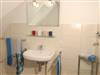 Bad: Dusche, Waschbecken, WC, Duschkabine, Spiegel, Regal, Hocker, Fön