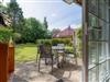 Elegant eingerichtetes Wohnzimmer mit ausziehbarem Schlafsofa (130x190cm), TV (Kabel), Radio und Esstisch mit 5 Stühlen. Direkter Zugang zum möblierten Gartenterrasse nach Süden mit Strandkorb. Offene Küche mit Backofen, Kühlschrank (ohne Gefrierfach) und Geschirrspüler.