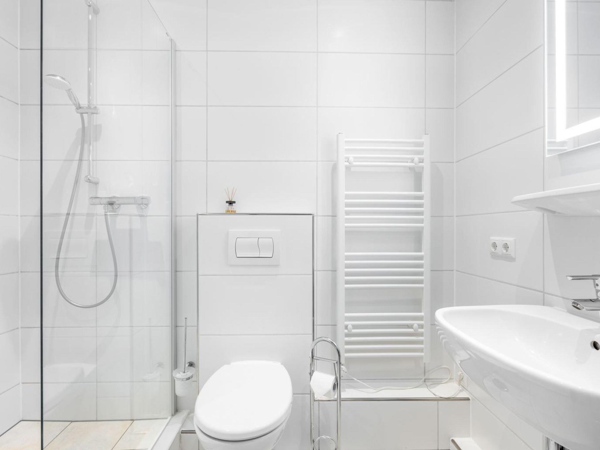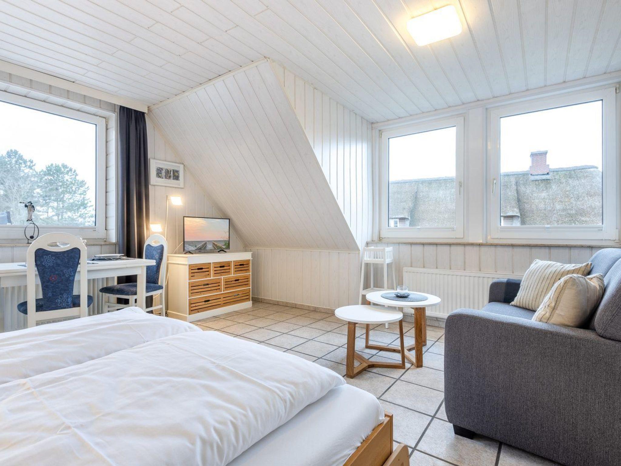 Die beiden Studio-Appartements (IDs 463 & 465, je ca. 25 m²) verfügen über Doppelbetten (2x 80x200 cm bzw. Schrankbett 2x 80x200 cm), das größere 2-Zimmer-Appartement (ID 464, ca. 50 m²) über ein separates Schlafzimmer mit Doppelbett (2x 90x200 cm). Alle Einheiten bieten Duschbäder, gut ausgestattete Küchenzeilen und möblierte Balkone nach Süden oder Osten. Kostenloses WLAN (Glasfaser), Pkw-Stellplätze sowie ein Fahrradabstellplatz sind vorhanden.