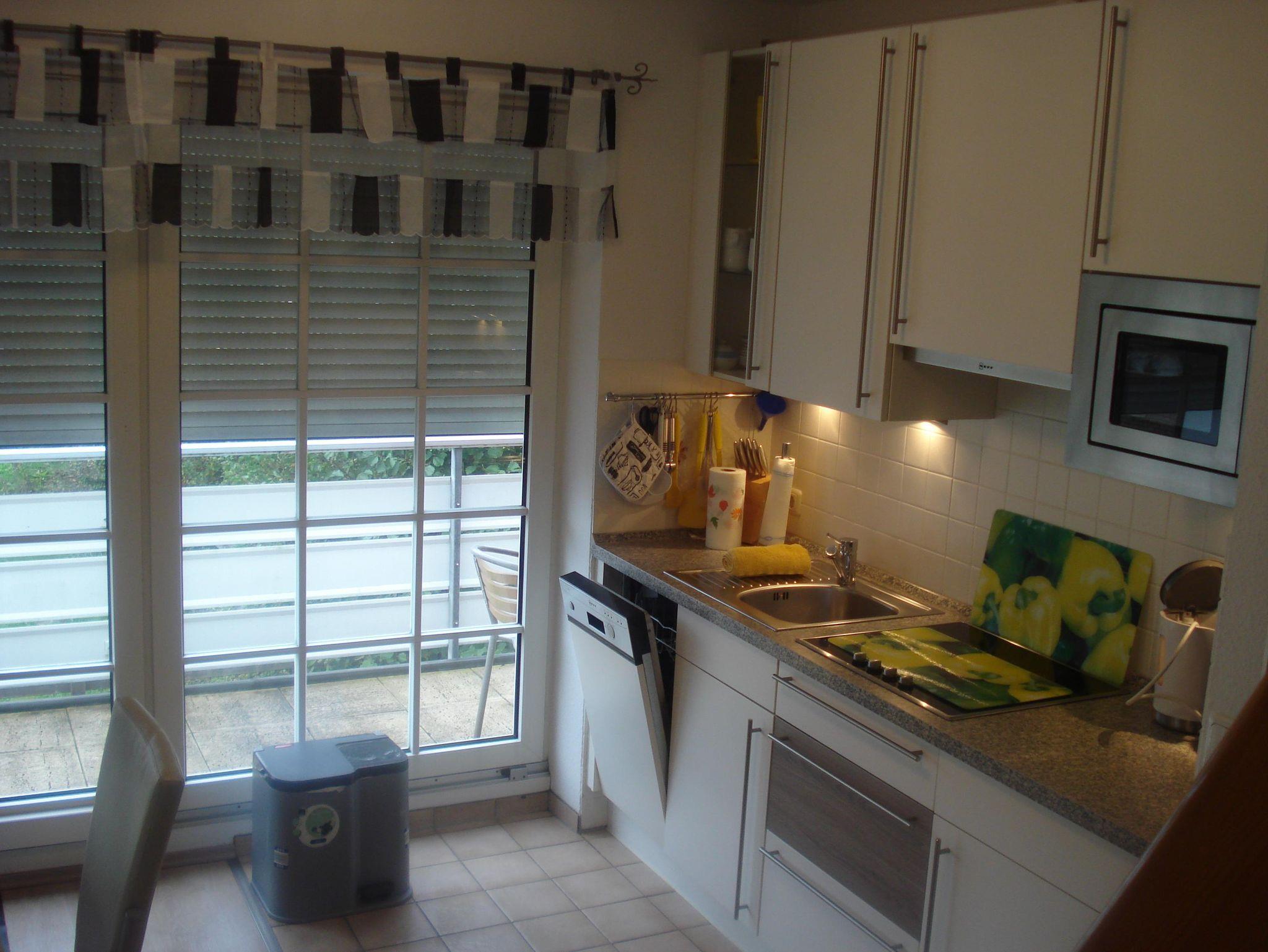 Für Selbstversorger sehr gut ausgestattete Einbauküche, Spülmaschine, Cerankochfeld, Mikrowelle.