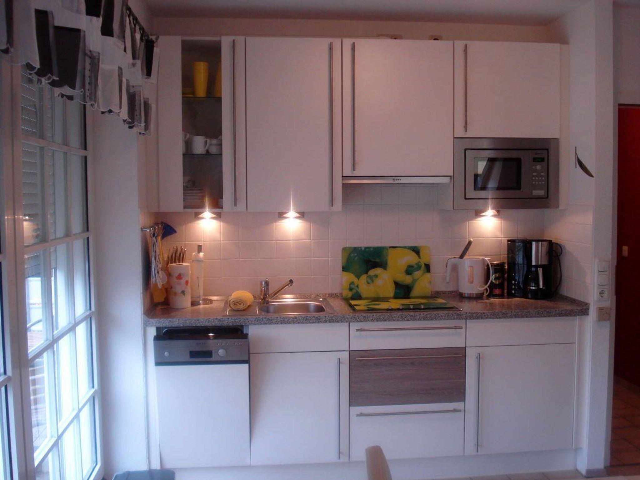 In der sehr gut ausgestatteten Küche mit Ceranfeld, Geschirrspüler und Mikrowelle können kreative Urlaubsgerichte gekocht werden.