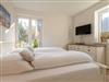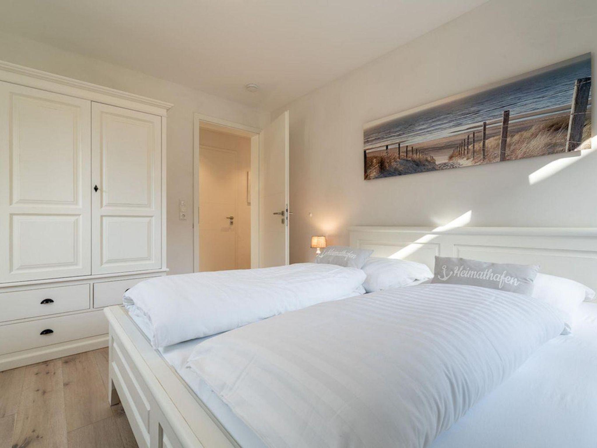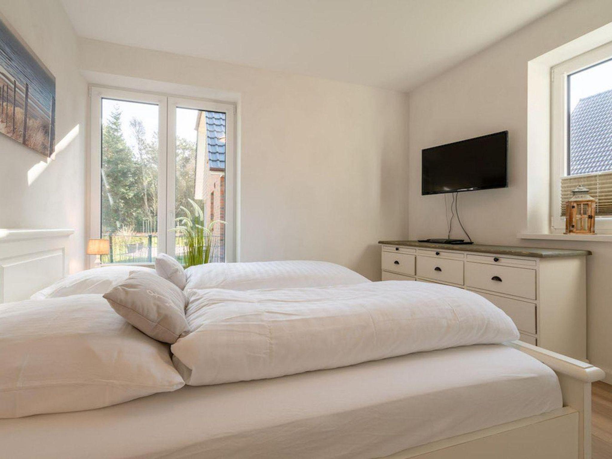 Im Erdgeschoss ist ebenso ein Doppelschlafzimmer mit Kommode und TV sowie ein Duschbad mit WC.