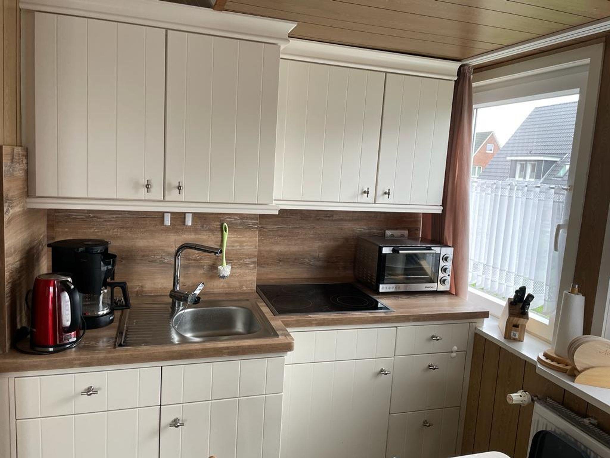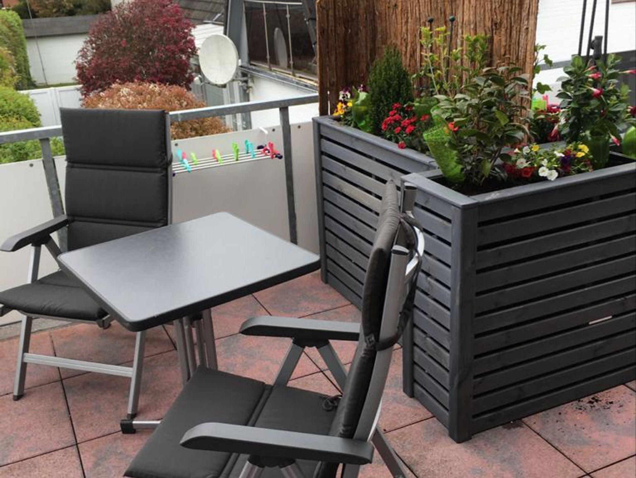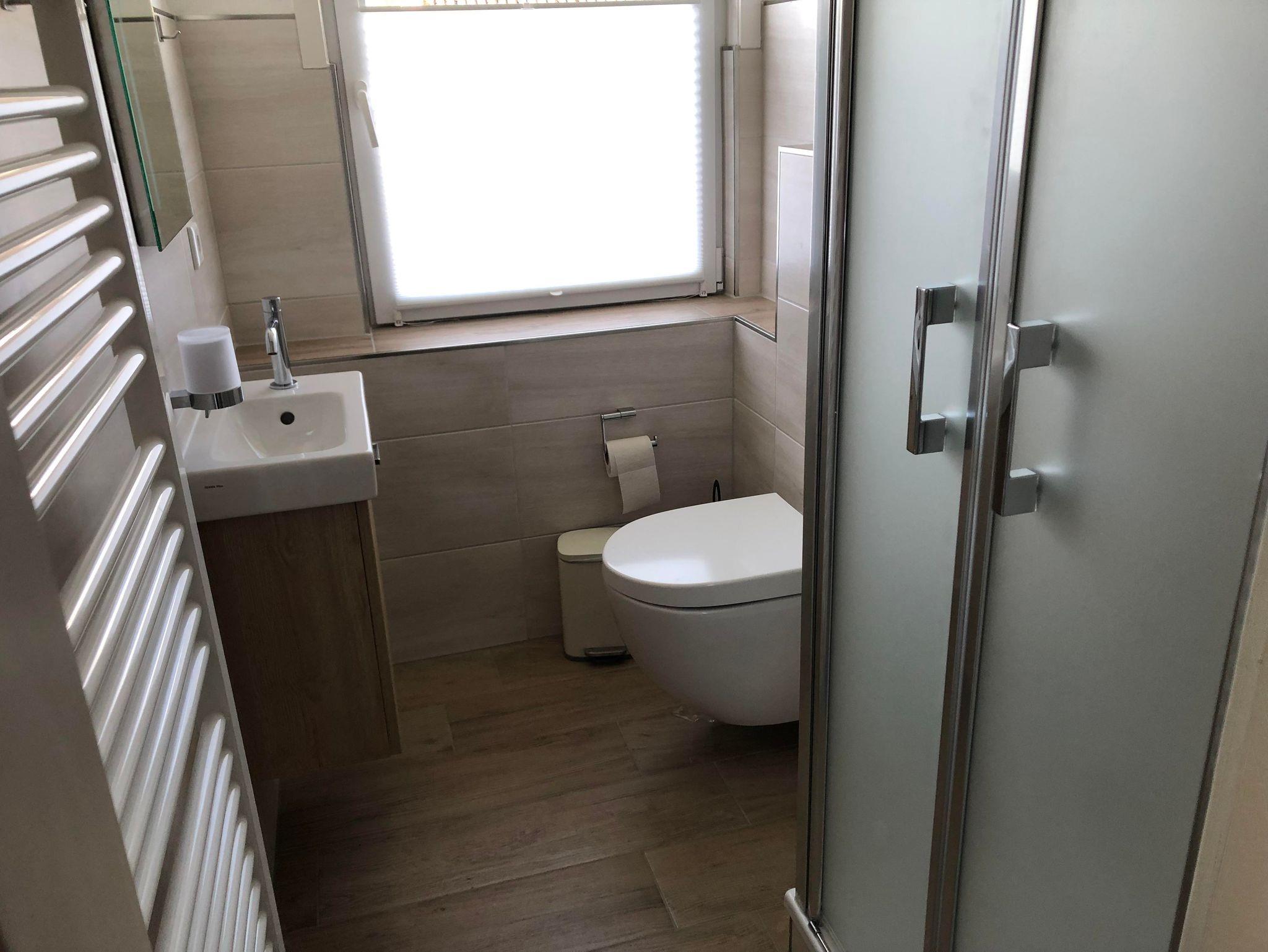 Die Küchenzeile ist u.a. mit Geschirrspüler, Backofen, Kühlschrank, Toaster, Eierkocher, Kaffeemaschine und Wasserkocher ausgestattet. Das Bad ist Anfang 2022 komplett erneuert worden. Am Schlafzimmerfenster sind Außenrollläden angebracht. Auf dem Süd-Balkon stehen Ihnen Sitzmöbel mit Auflagen zur Verfügung. Es ist eine Nichtraucherwohnung und geraucht werden darf auf dem Balkon.