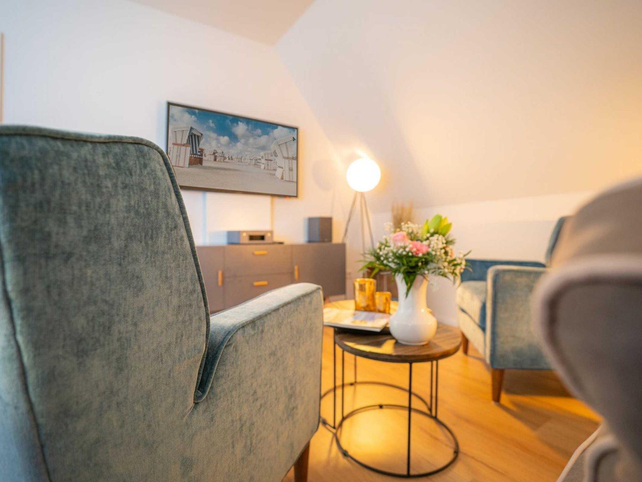 Moderne 3-Zimmer-Ferienwohnung mit ca. 66 m² auf 2 Ebenen (OG, DG) für bis zu 4 Personen. In ruhiger Lage im Ortsteil Dorf in St. Peter-Ording. Mit sonnigem Südbalkon. Viel Komfort und Entspannung erwarten Sie hier. Hunde sind herzlich willkommen.