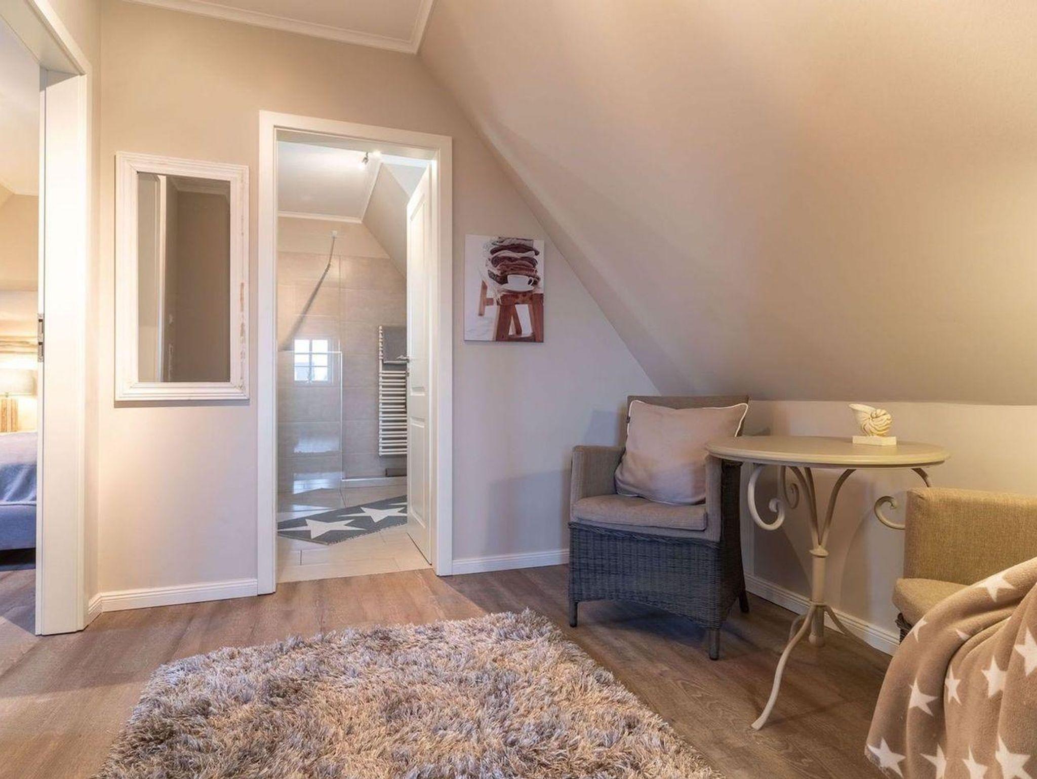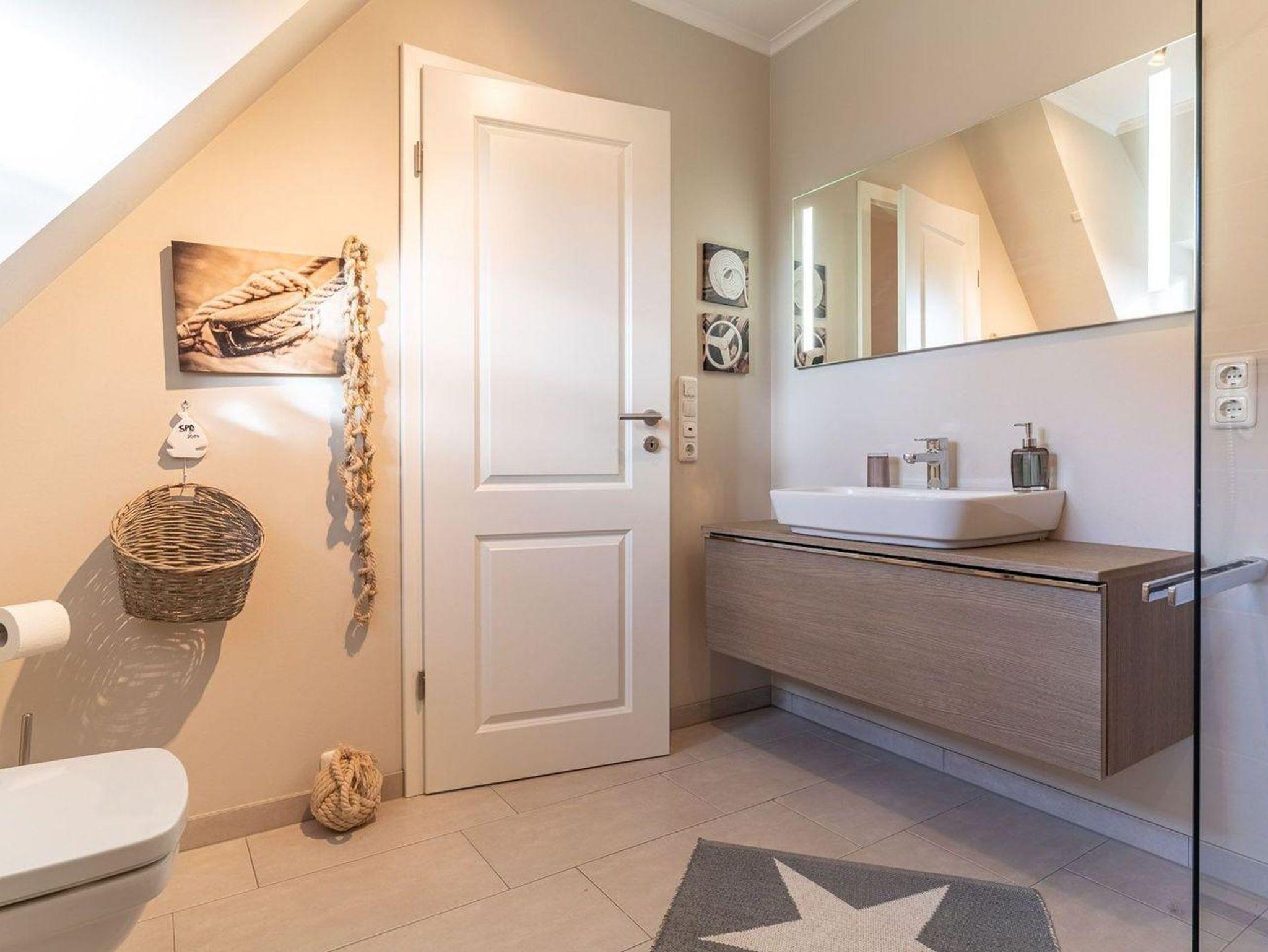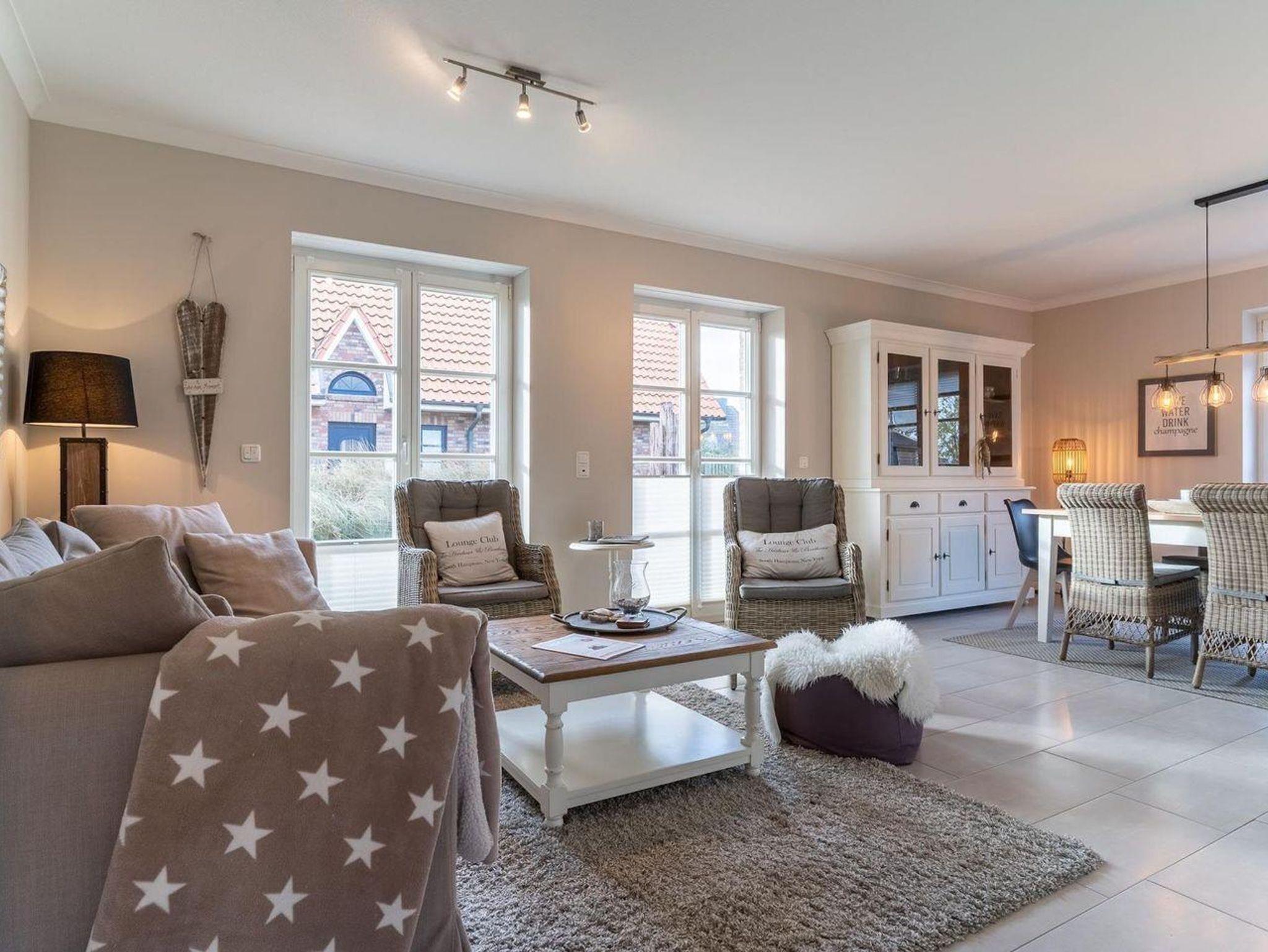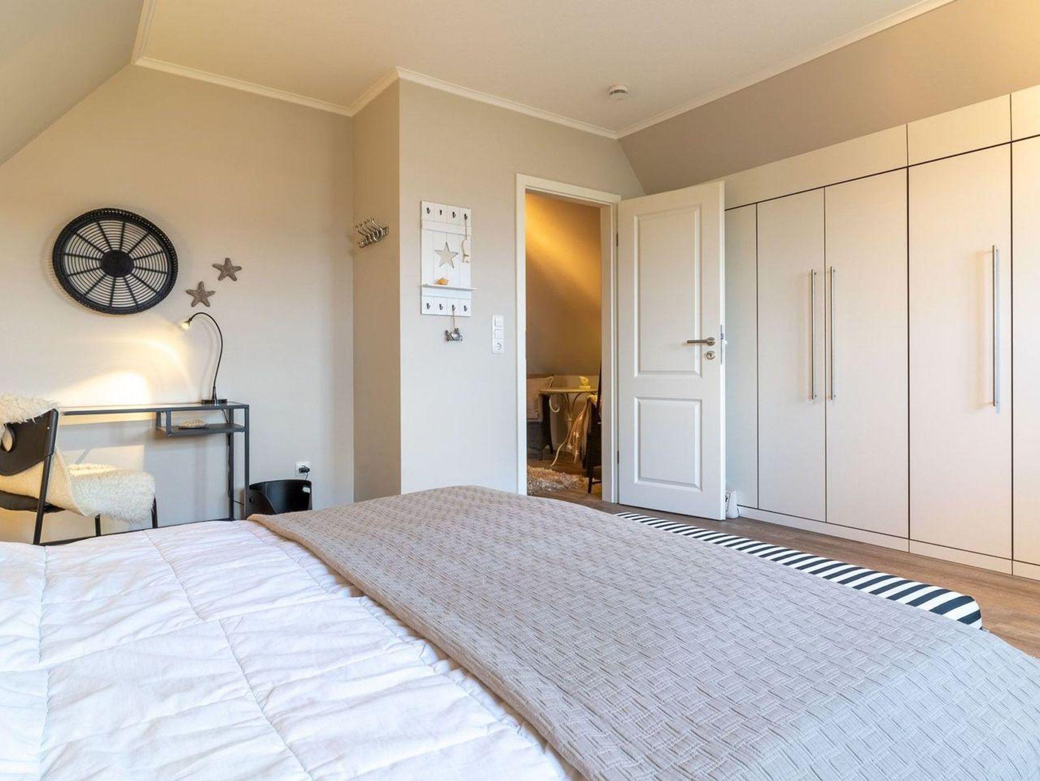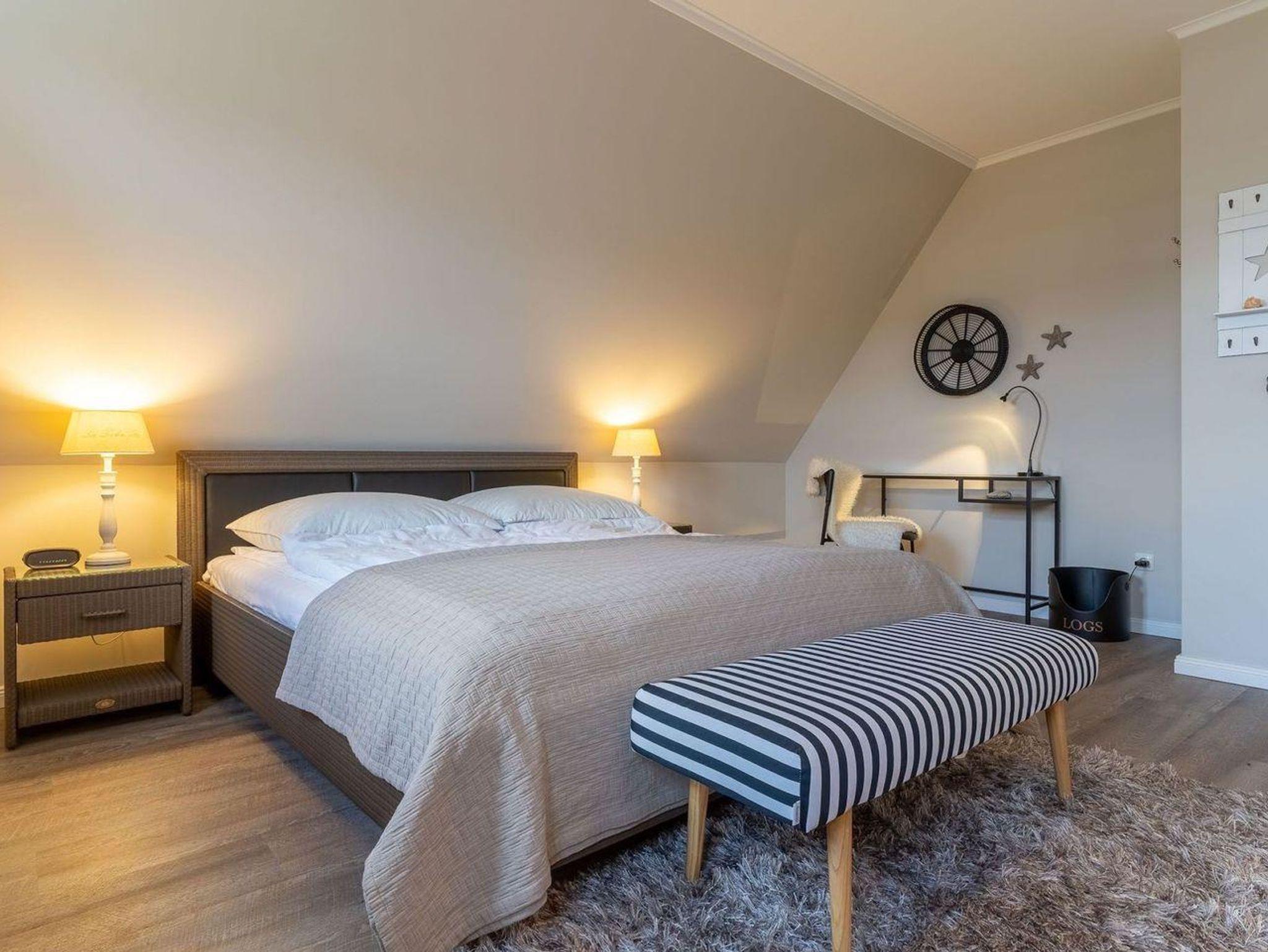Dieses wunderschöne Doppelhaus unter Reet verfügt über ca. 113 m² Wohnfläche und bietet großzügigen Platz für 6 Personen. Im Erdgeschoss befindet sich der lichtdurchflutete Wohnraum mit TV, Kamin, einer großzügigen Sitzecke. Die offene Wohnküche verfügt über hochwertige Geräte und ist voll ausgestattet für gemeinsames Kochen. Die Wohnräume sind mit exklusiven Möbeln eingerichtet. An den Wohnbereich schließen sich ein Flur, sowie ein Hauswirtschaftsraum. Ebenso ist im Erdgeschoss ein Doppelschlafzimmer mit Gästebad und Dusche. Das gesamte Erdgeschoss verfügt über geschmackvolle Fußbodenfliesen.
