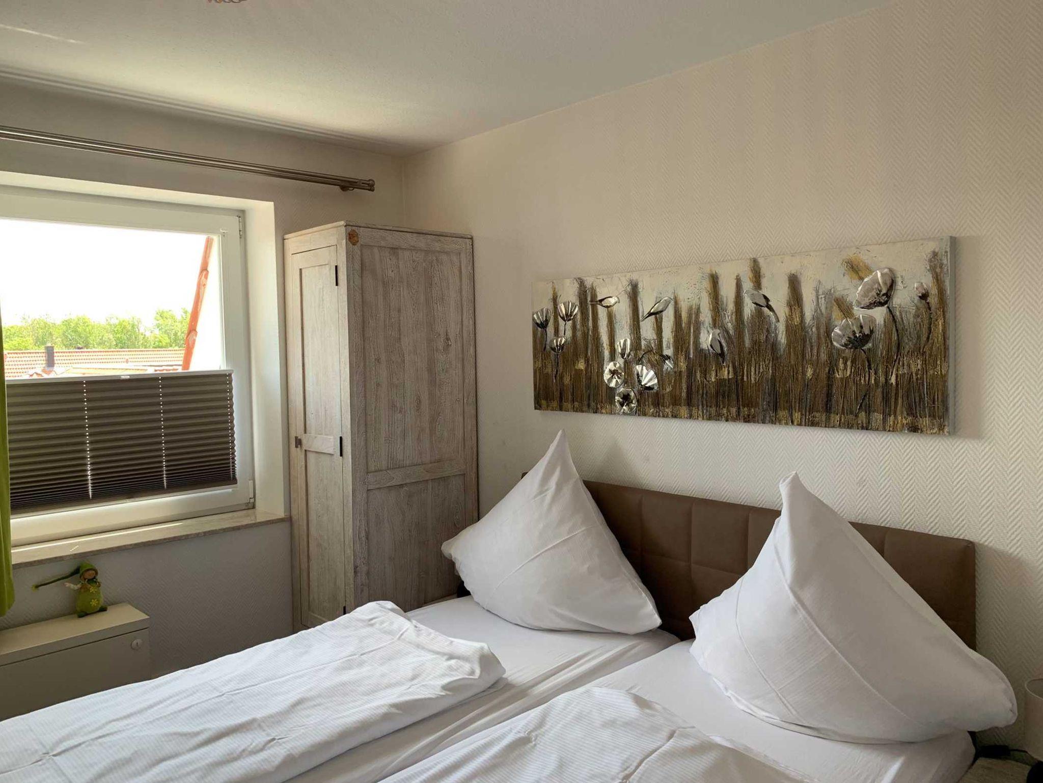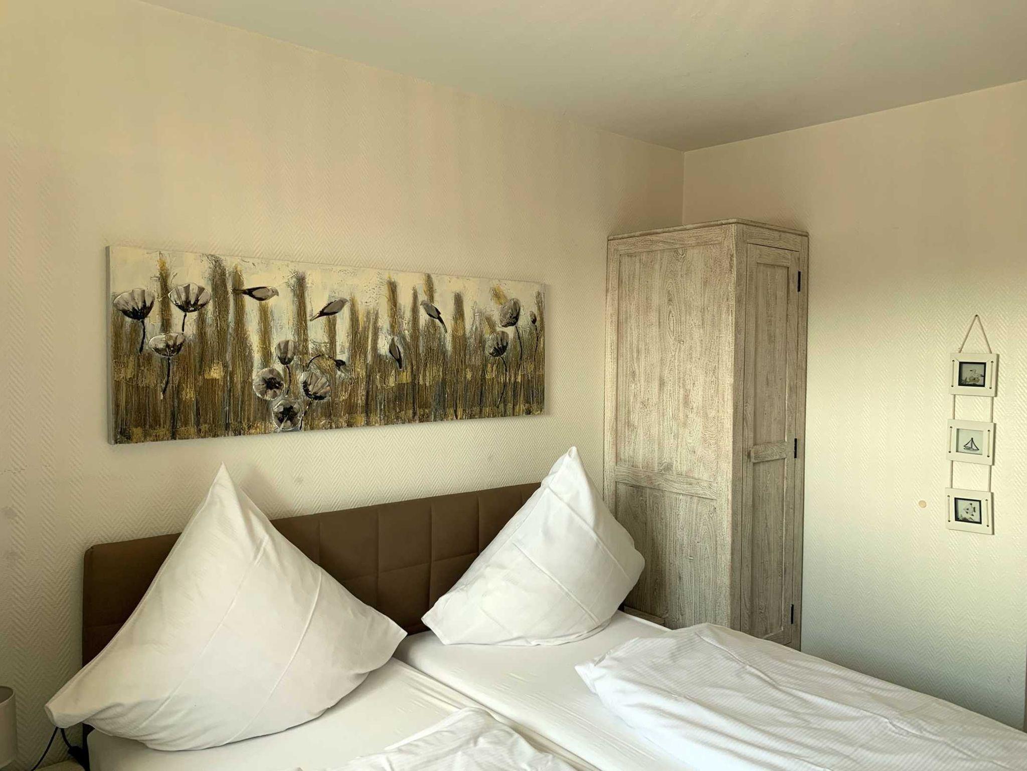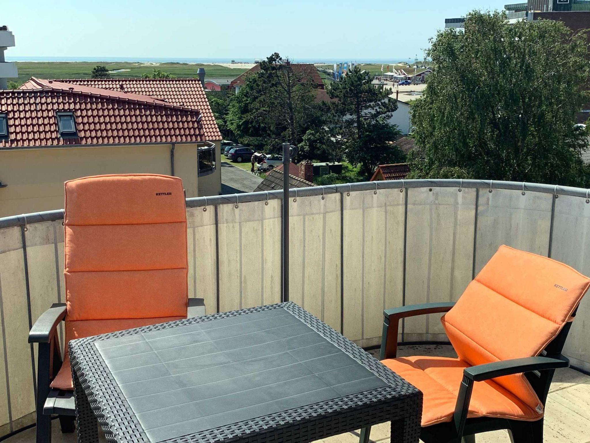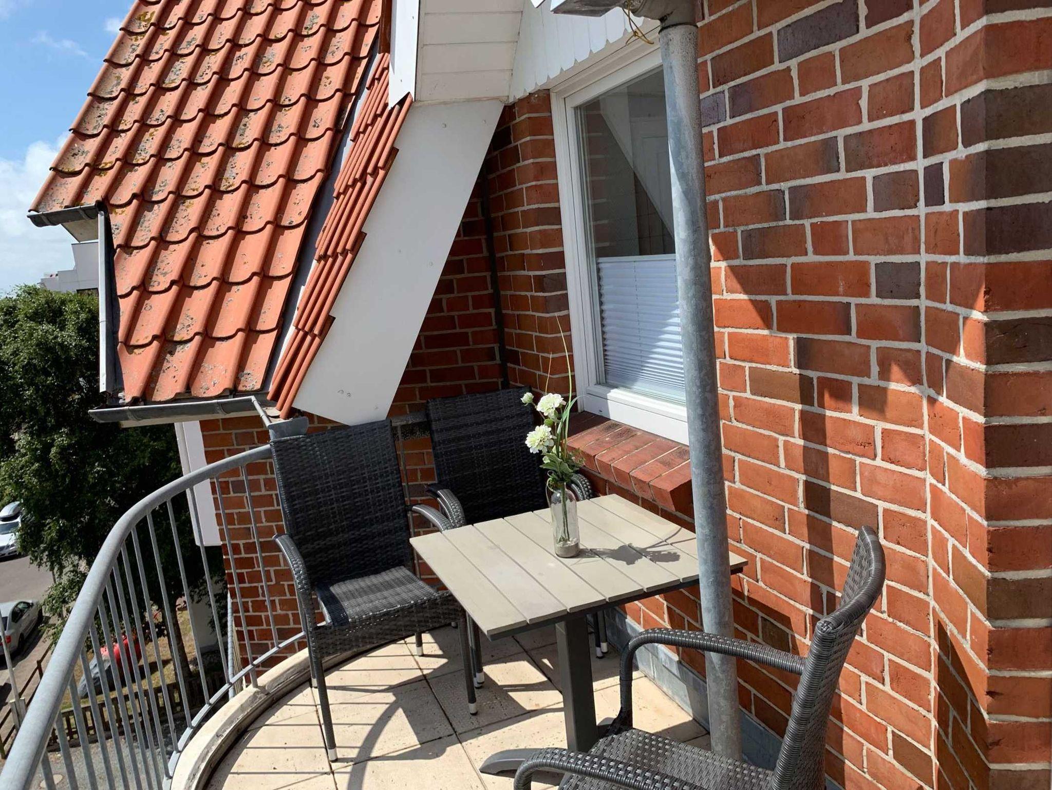 Genießen Sie Ihren Aufenthalt in unserer 2-Zimmer-Ferienwohnung im 4. Obergeschoss mit leichtem Meerblick. Diese helle und freundlich gestaltete Unterkunft bietet einen einladenden Wohnbereich, der nahtlos in die offene Küche übergeht. Die Küche ist mit einem modernen 4-Plattenherd und einer Spülmaschine ausgestattet, um Ihren Aufenthalt so angenehm wie möglich zu gestalten.