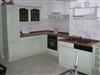 sowie integrierter Landhausküche mit Ceranfeldherd, Backofen, Spülmaschine, Kühlschrank und lindgrün lasierter Eichenholzfront.