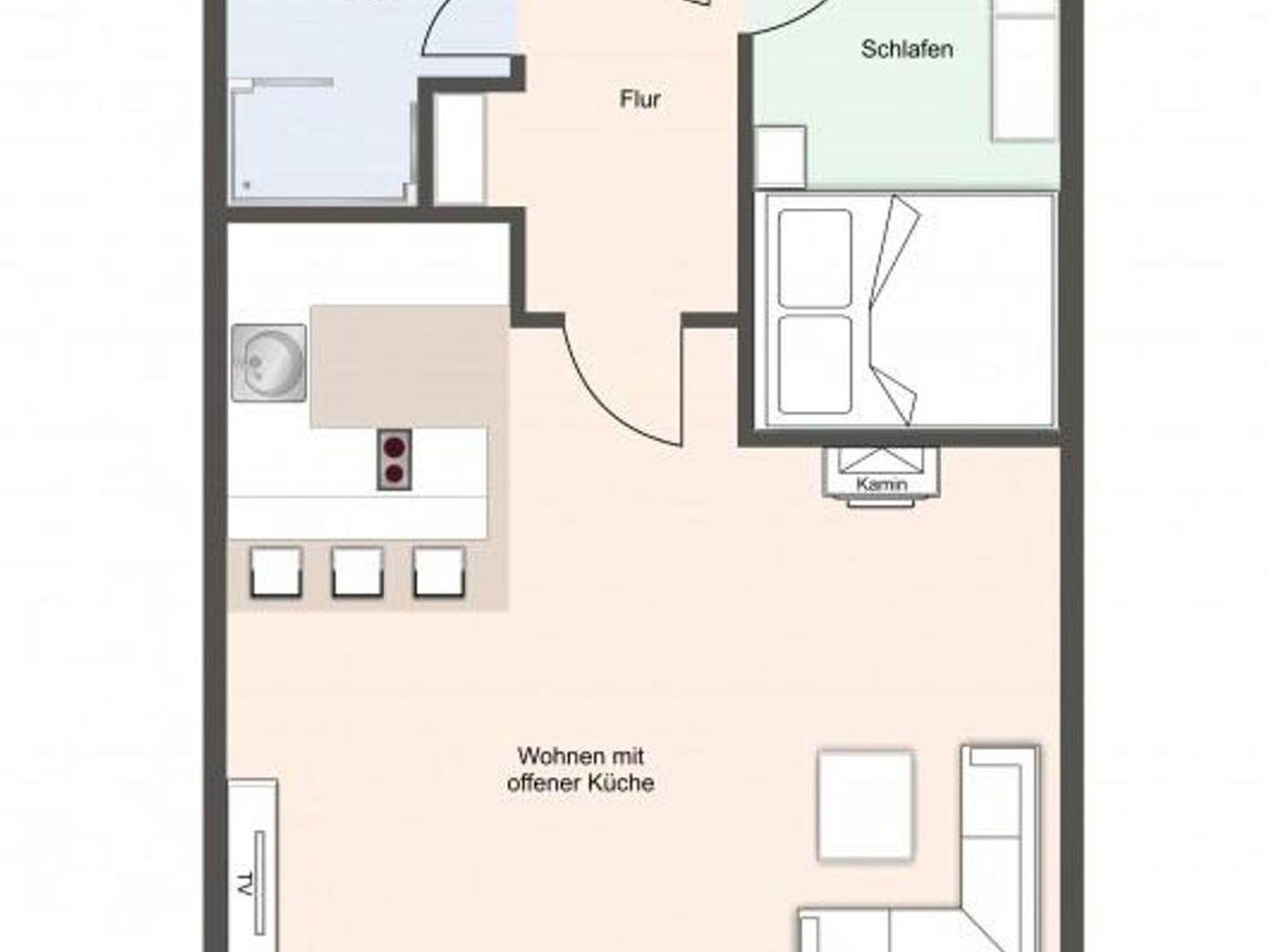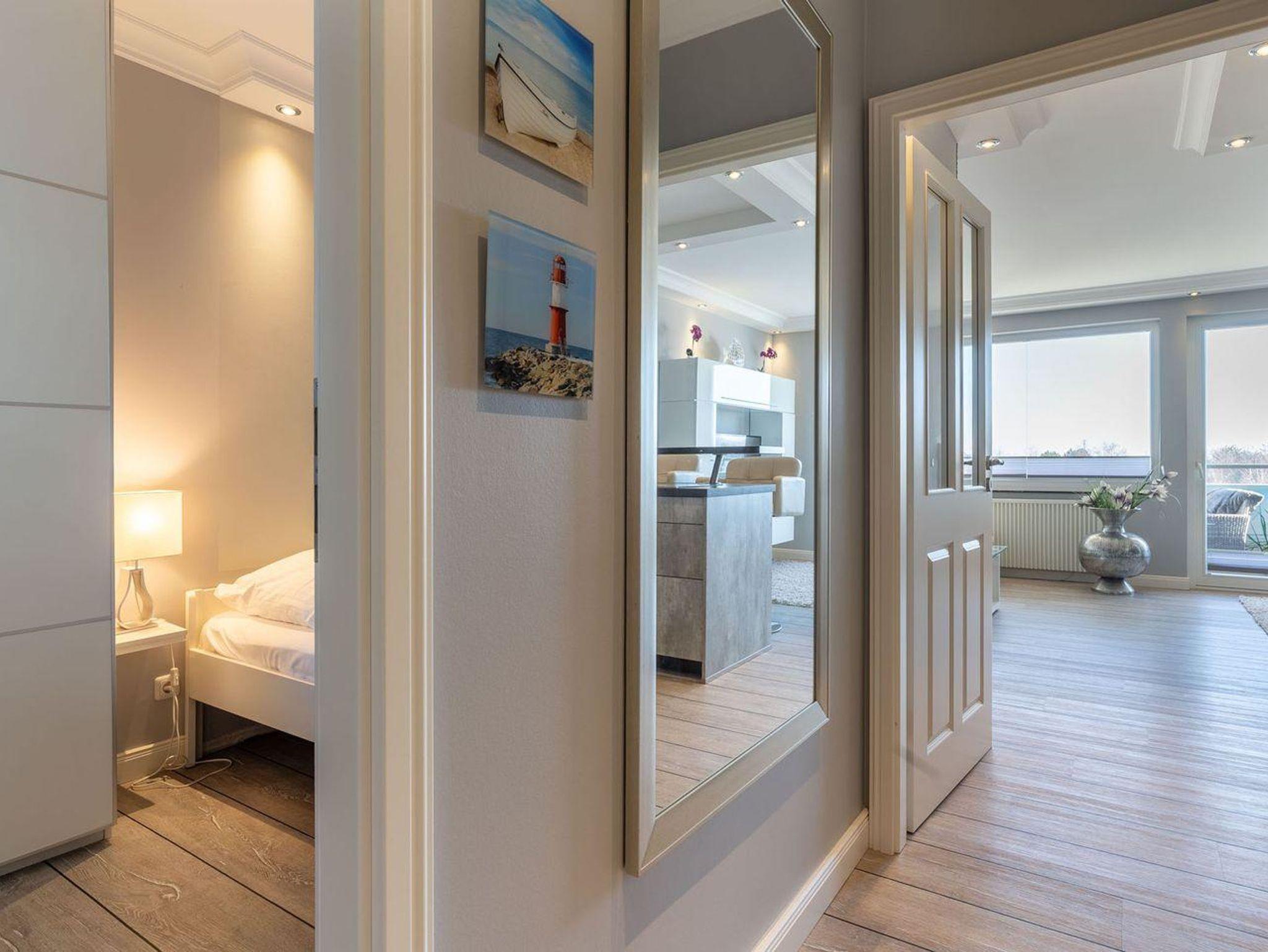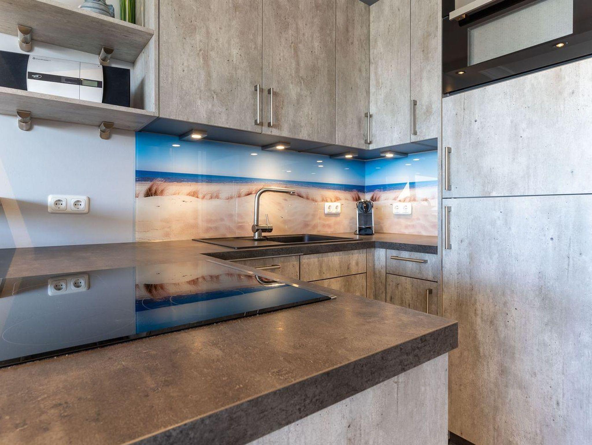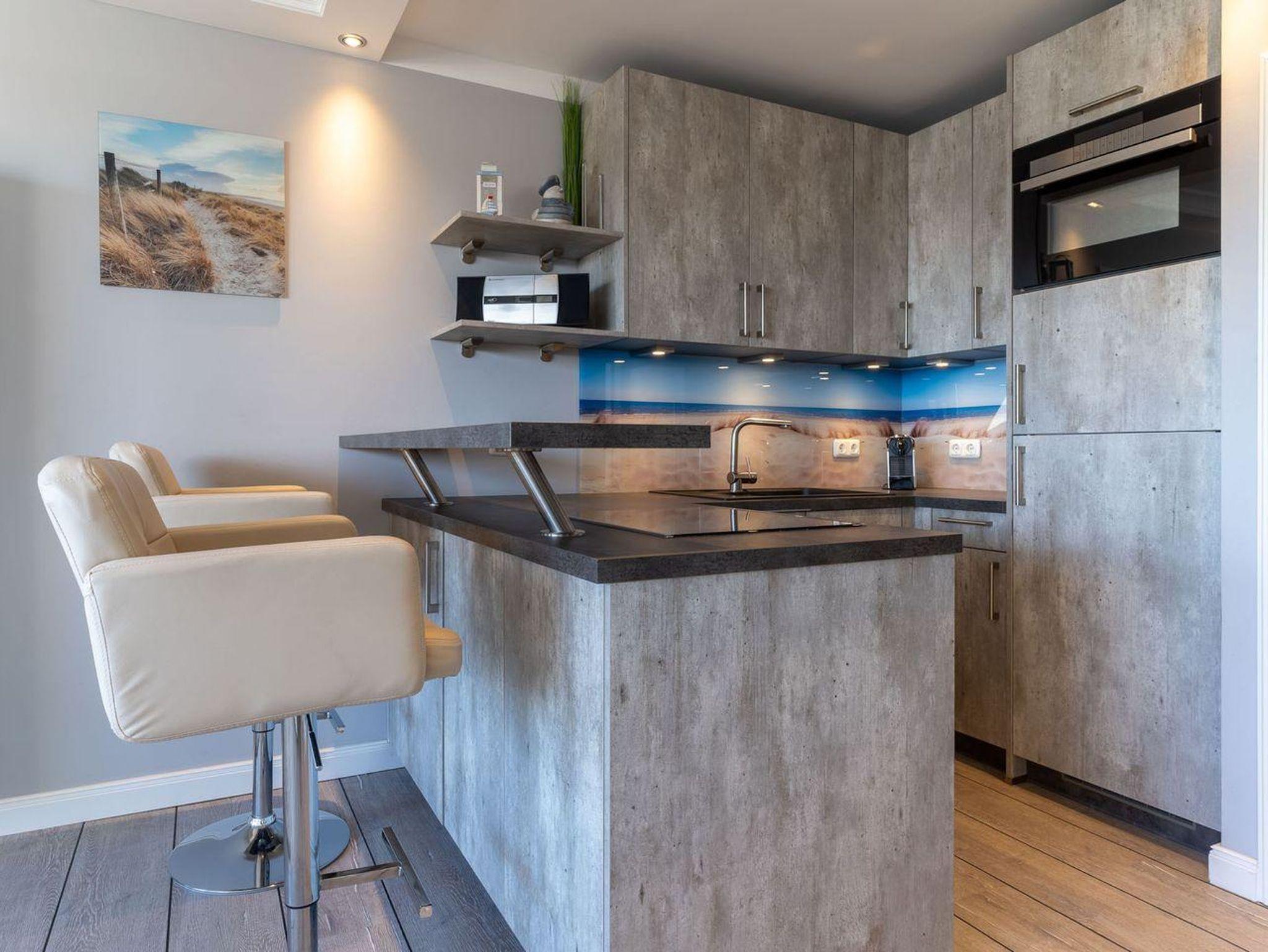 Die gesamte Wohnung ist mit exklusiven Möbeln eingerichtet. Ein gemütliches Wohnzimmer mit offener Wohnküche, elektronischer Kamin und großzügigen Tresen laden zum Chillen ein. Das Schlafzimmer mit 180er Doppelbett und Flatscreen TV sorgen für ruhevolle Erholung. Ein sehr modernes Duschbad und der separate Flur bieten genügend Platz für Utensilien. Im Wohnzimmer befindet sich ein hochwertiges Schlafsofa, hier kann sich eine 3. Person ruhevoll erholen. Die Wohnung ist mit sehr viel Liebe zum Detail ausgestattet und ist traumhaft lichtdurchflutet. Mit einem Blick der Träume öffnen lässt.
