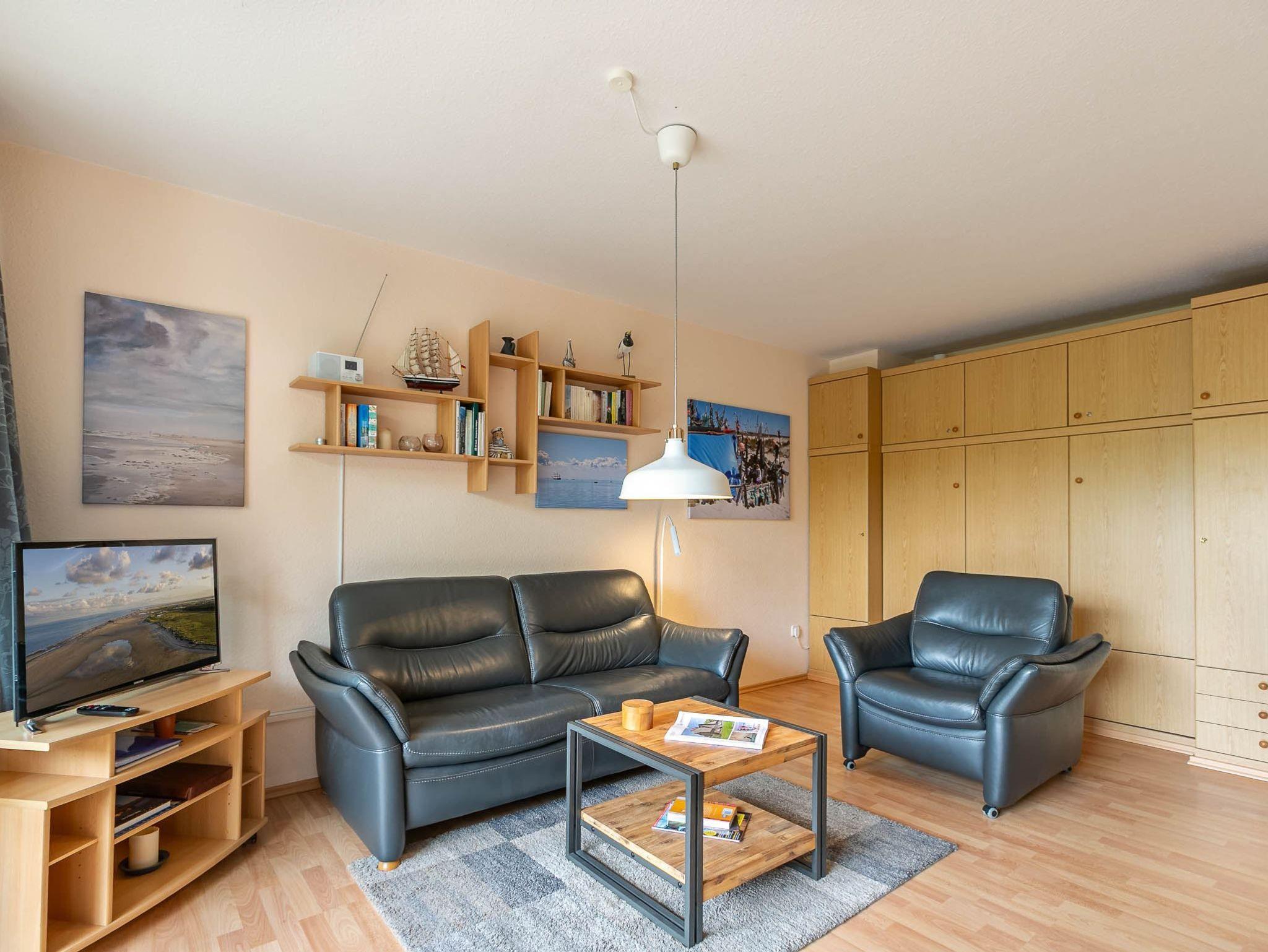 Gemütliche 2-Zimmer-Ferienwohnung mit ca. 45 m² auf 1 Ebene (2. OG, kein Fahrstuhl) in zentraler und strandnaher Lage im Herzen des Ortsteils Bad in St.Peter-Ording. Genießen Sie den schönen Ausblick vom Balkon auf das Wäldchen am Haus und ein kleines bißchen vom Strand. Gleich um die Ecke vom Haus befinden sich alle Geschäfte und Restaurants des pulsierenden Kurzentrums. Auch die Dünentherme ist nur 5 Gehminuten entfernt. Allergikerfreundliches Domizil ohne Teppichböden.